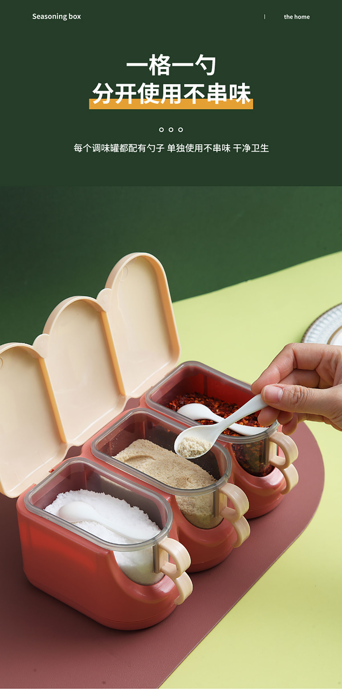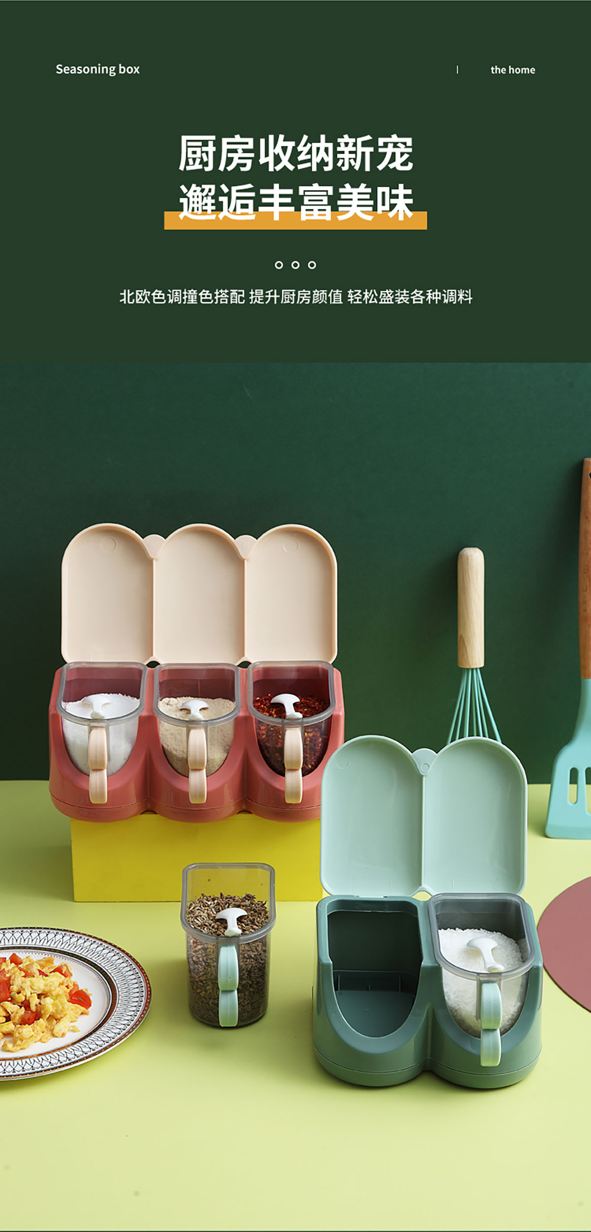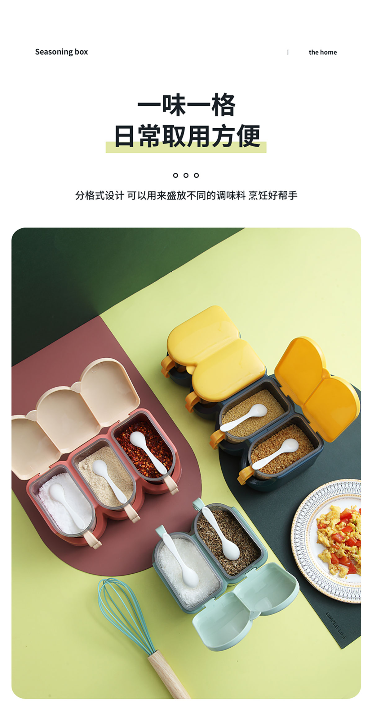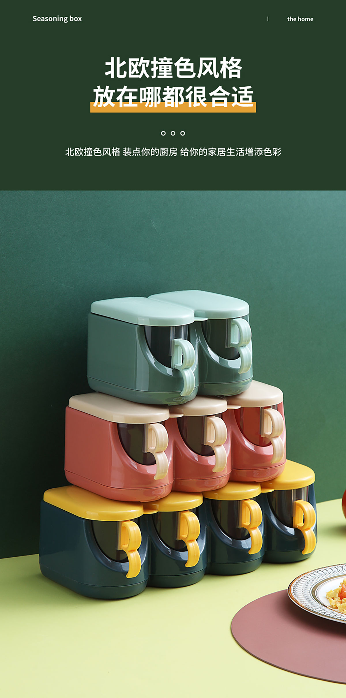 北歐翻蓋調(diào)味盒(兩格/三格/四格) 新色