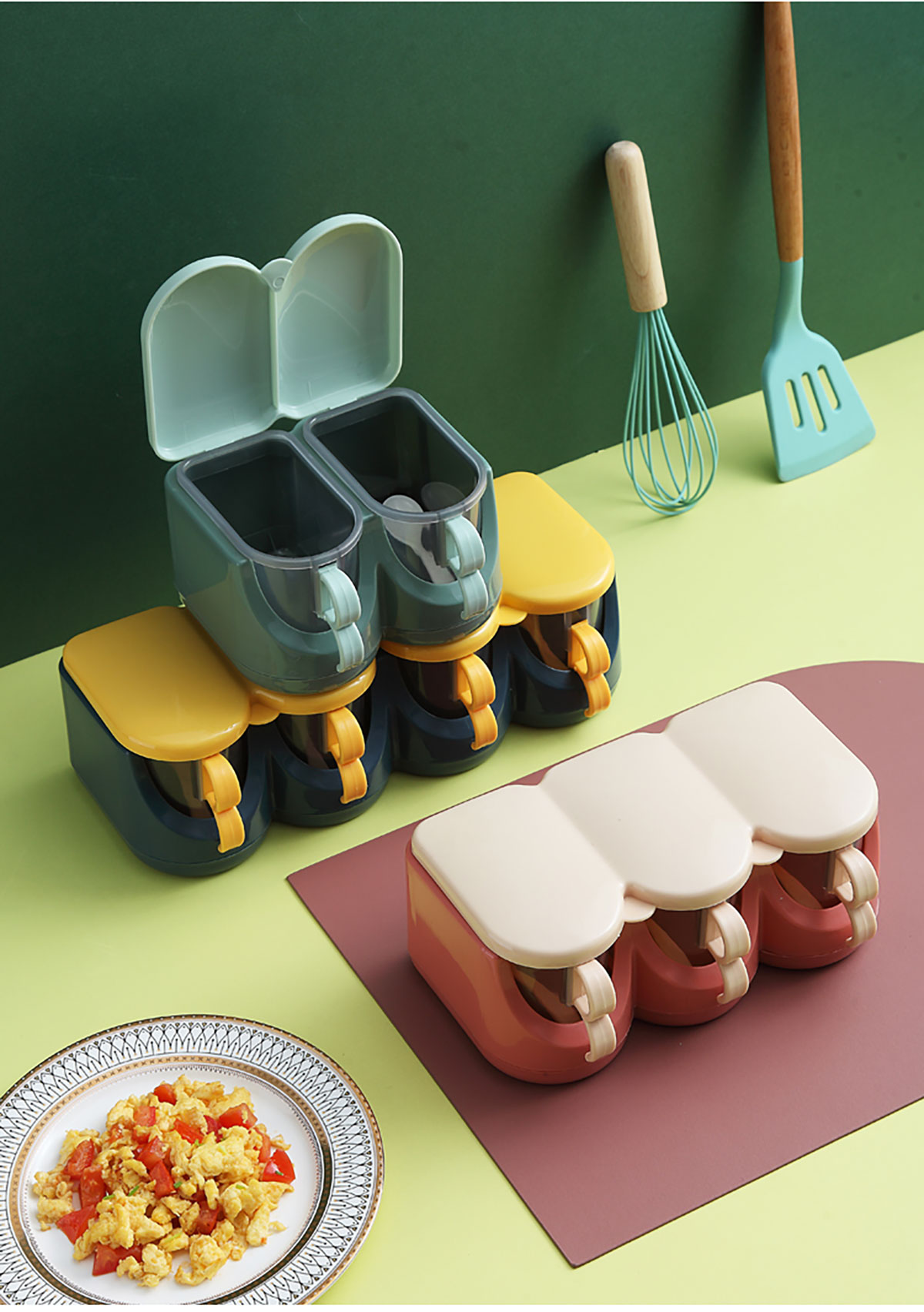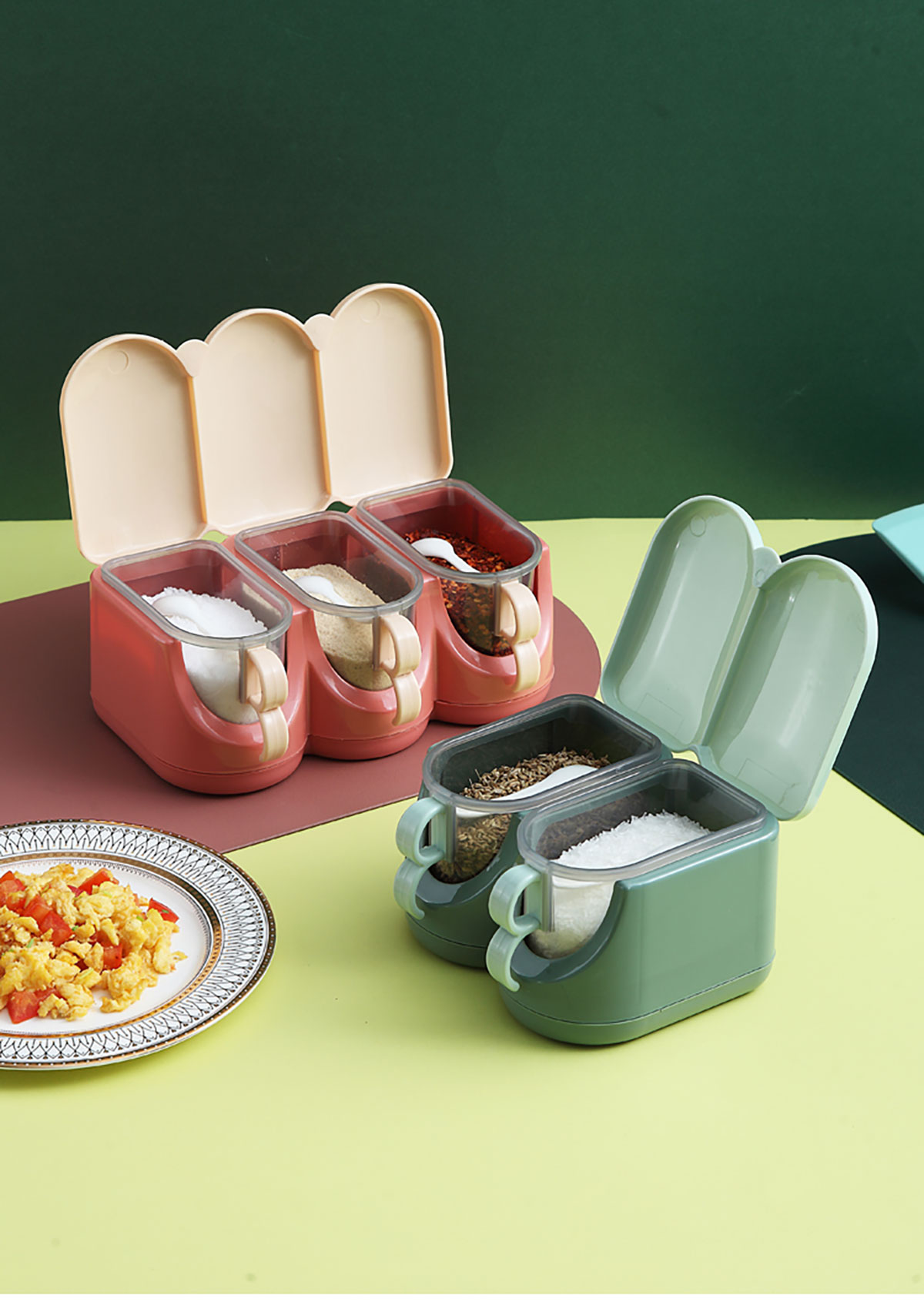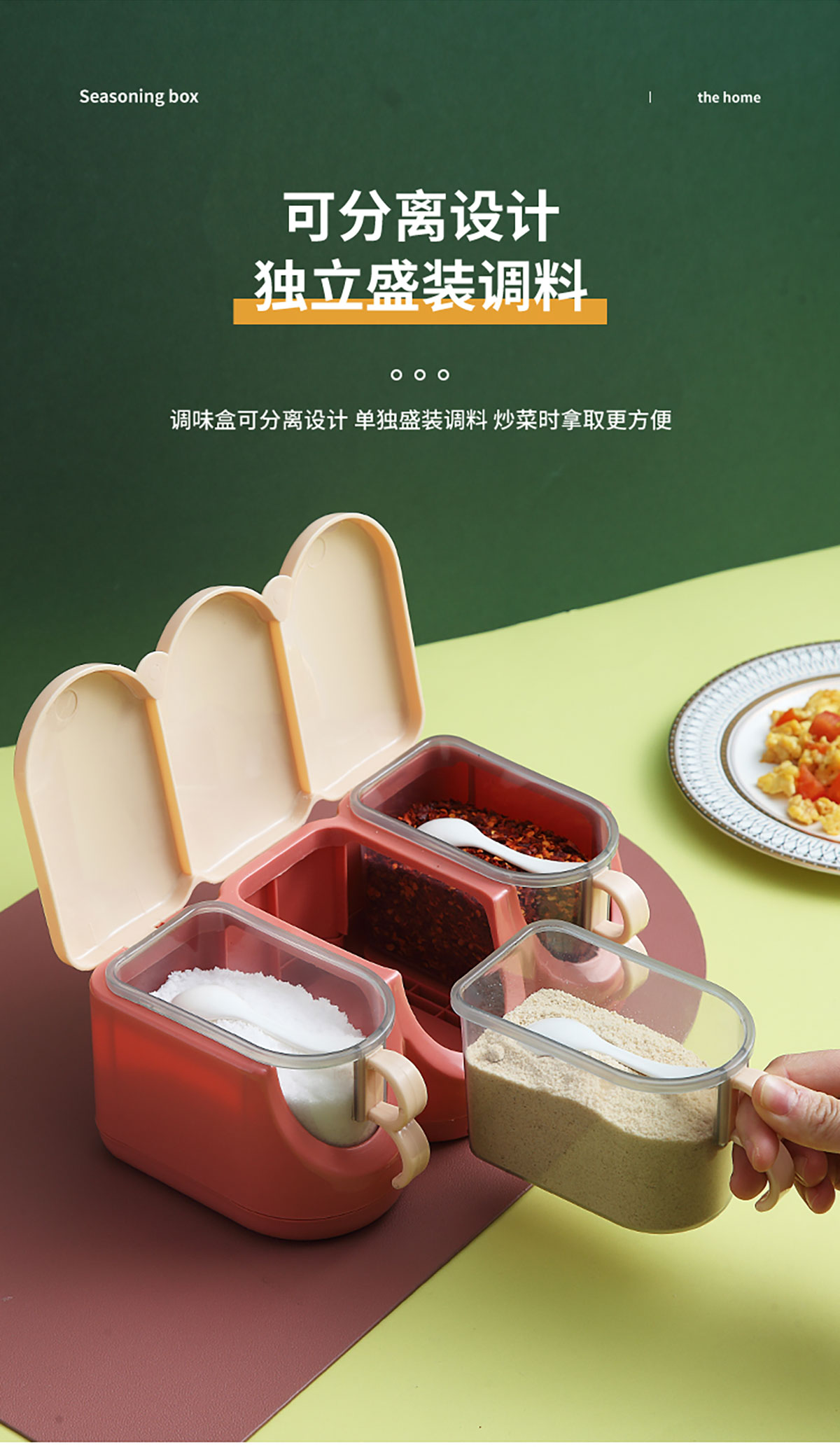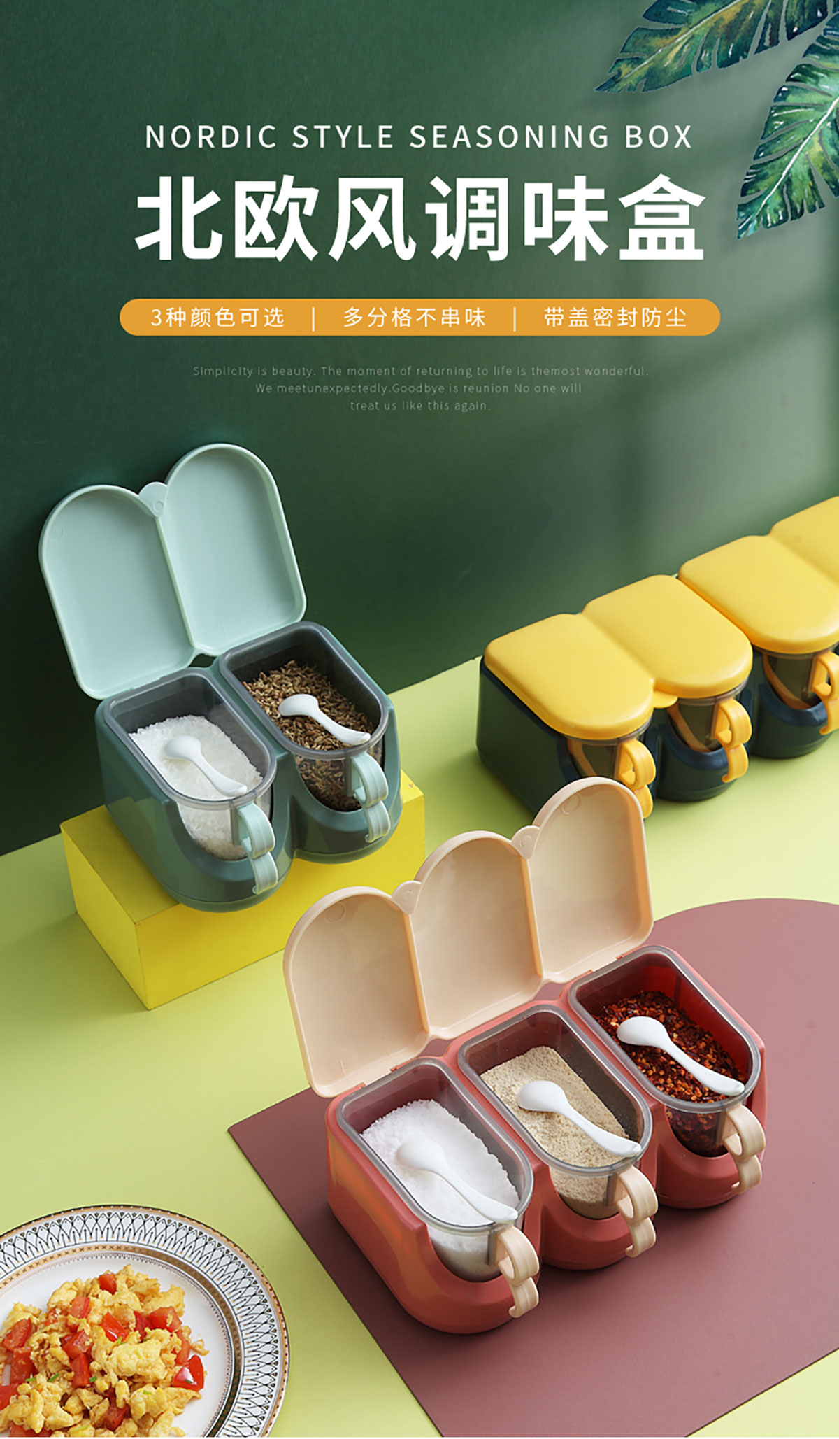 北歐翻蓋調(diào)味盒(兩格/三格/四格) 新色