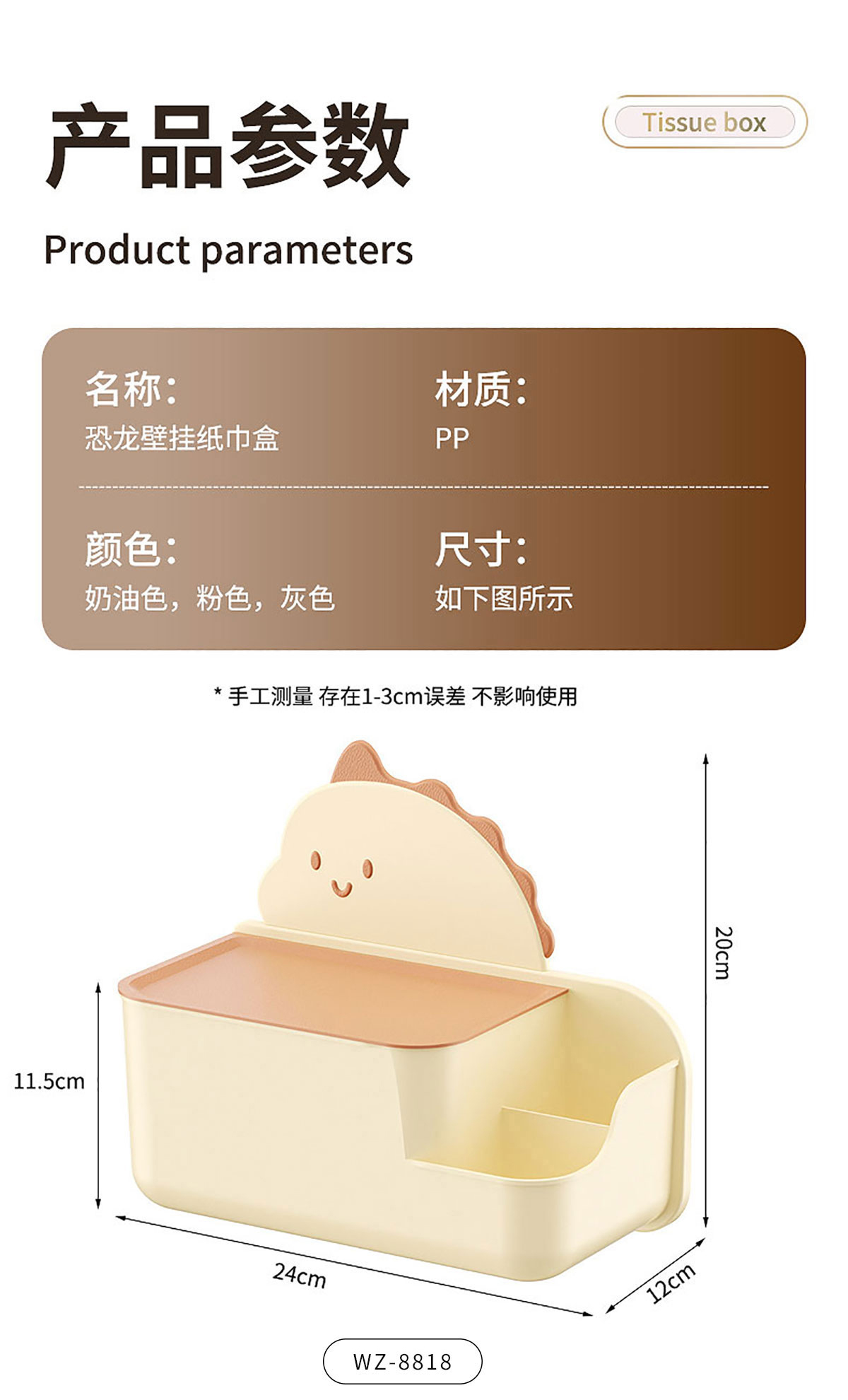 恐龍壁掛紙巾盒小號(hào)/大號(hào)