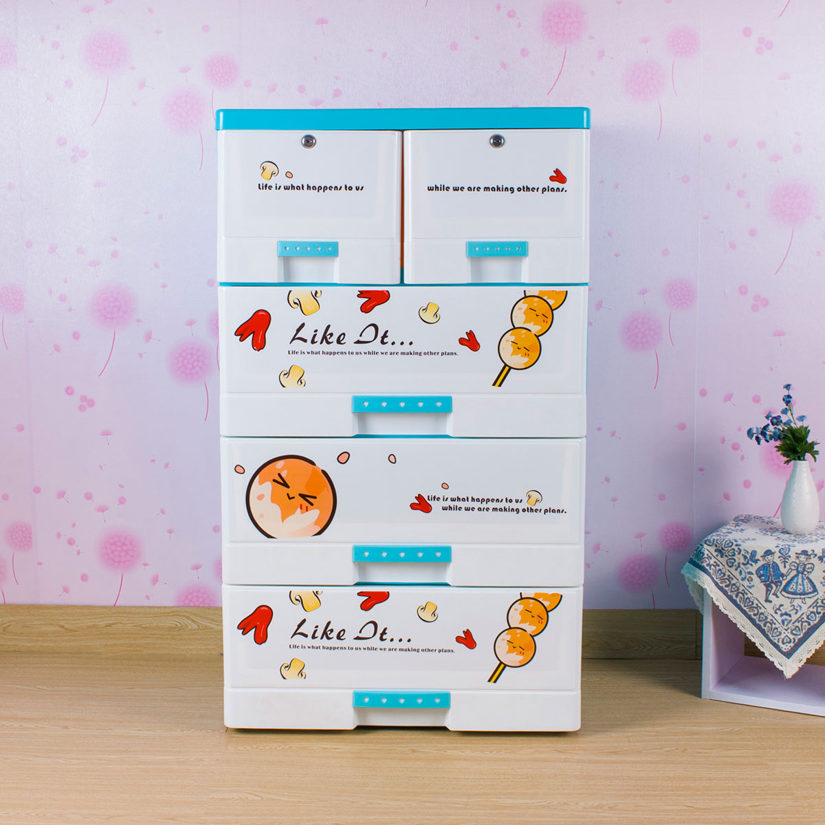 單層格面印花帶鎖整理柜(四層/五層)