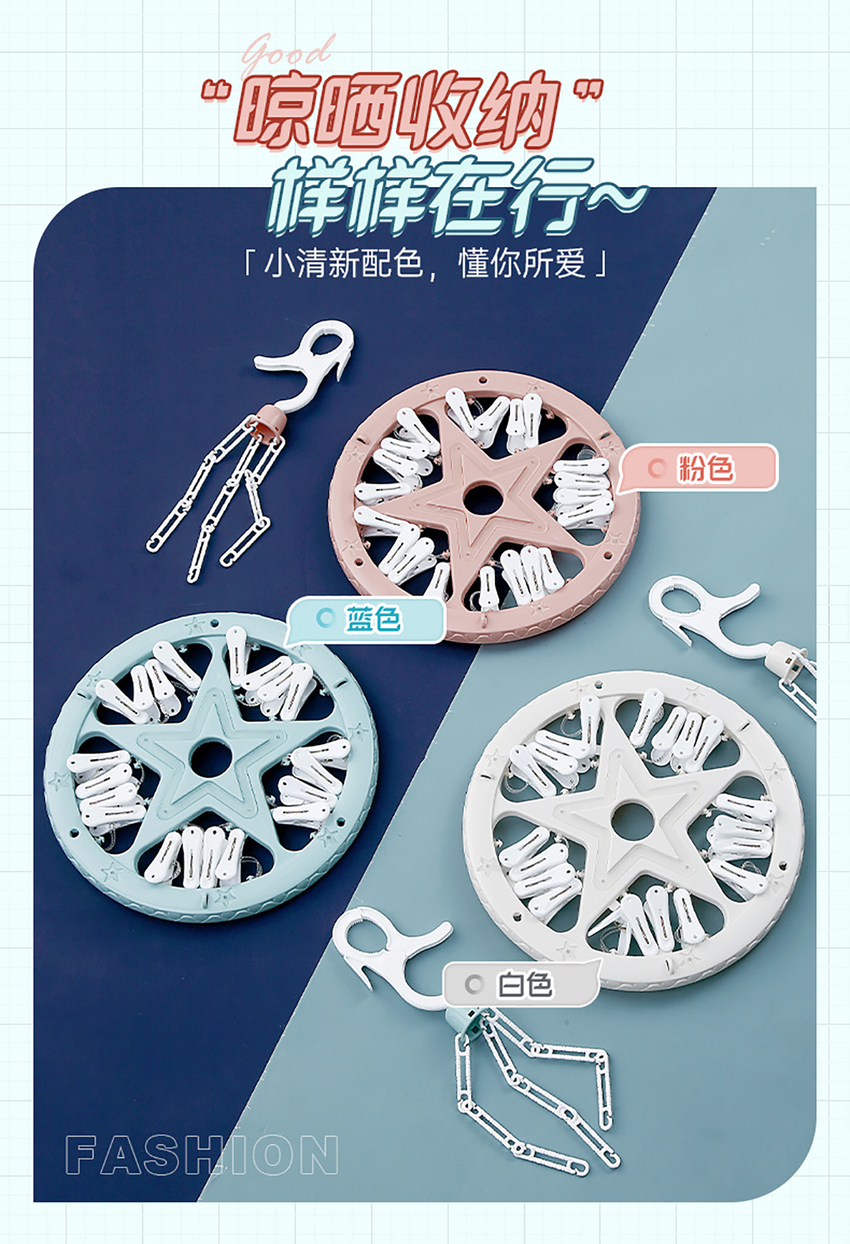雙色星形20夾曬架 2023年新色
