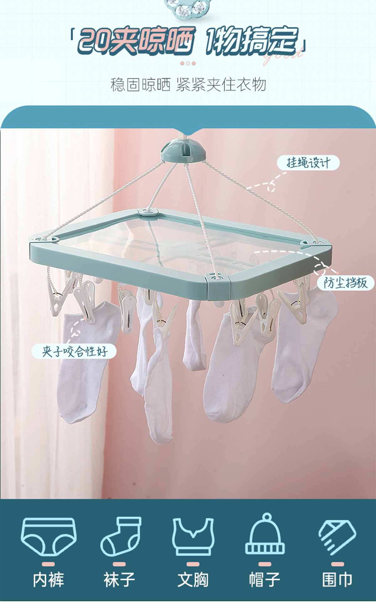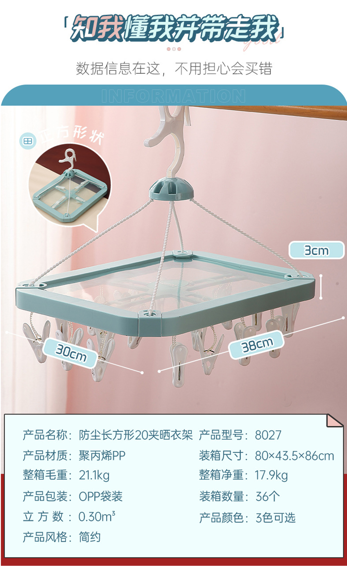 防塵長(zhǎng)方形20夾晾衣架 2023年新色