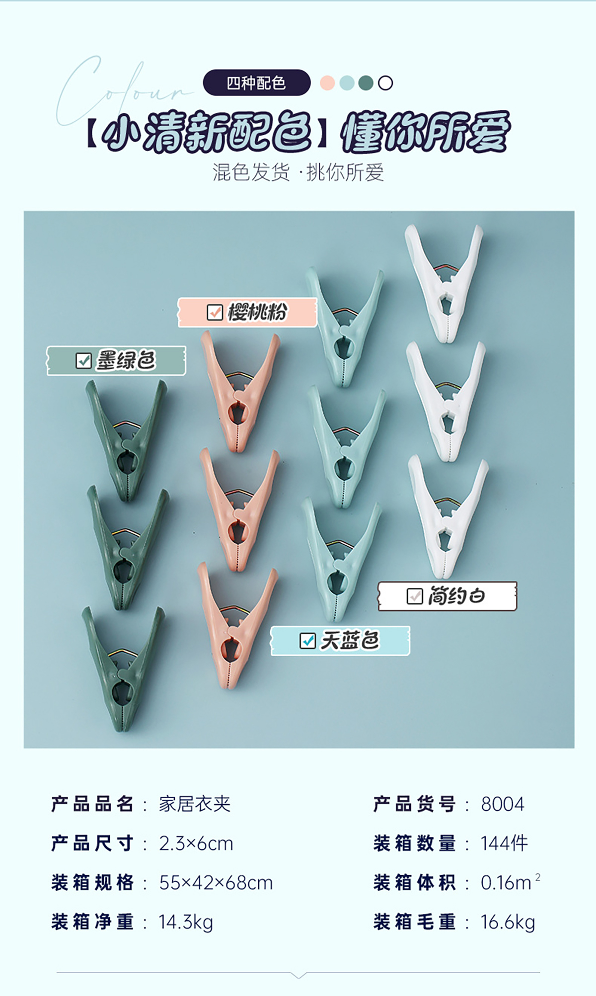 強力衣夾(72個/內盒) 2023新色