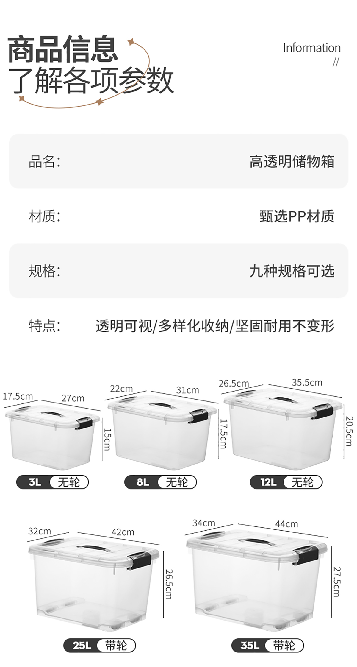 高透明儲物箱3L/8L/12L/25L/35L/45L/55L75L/100L