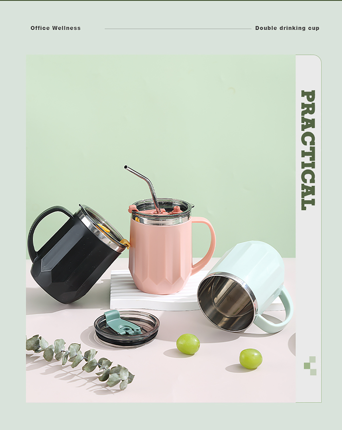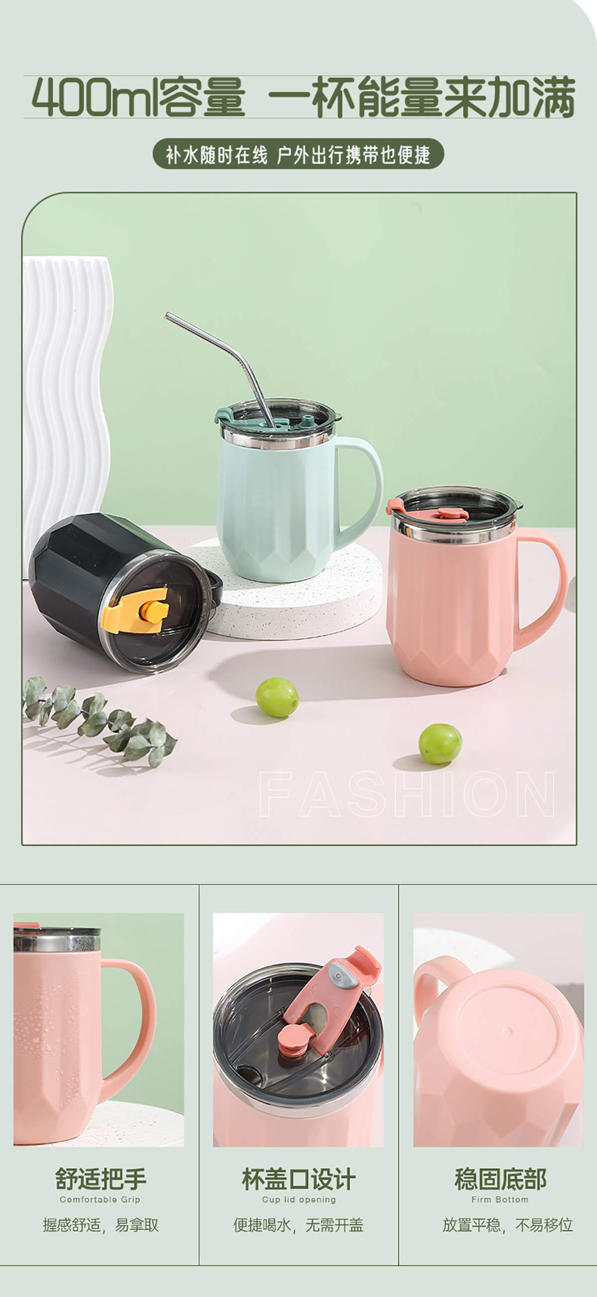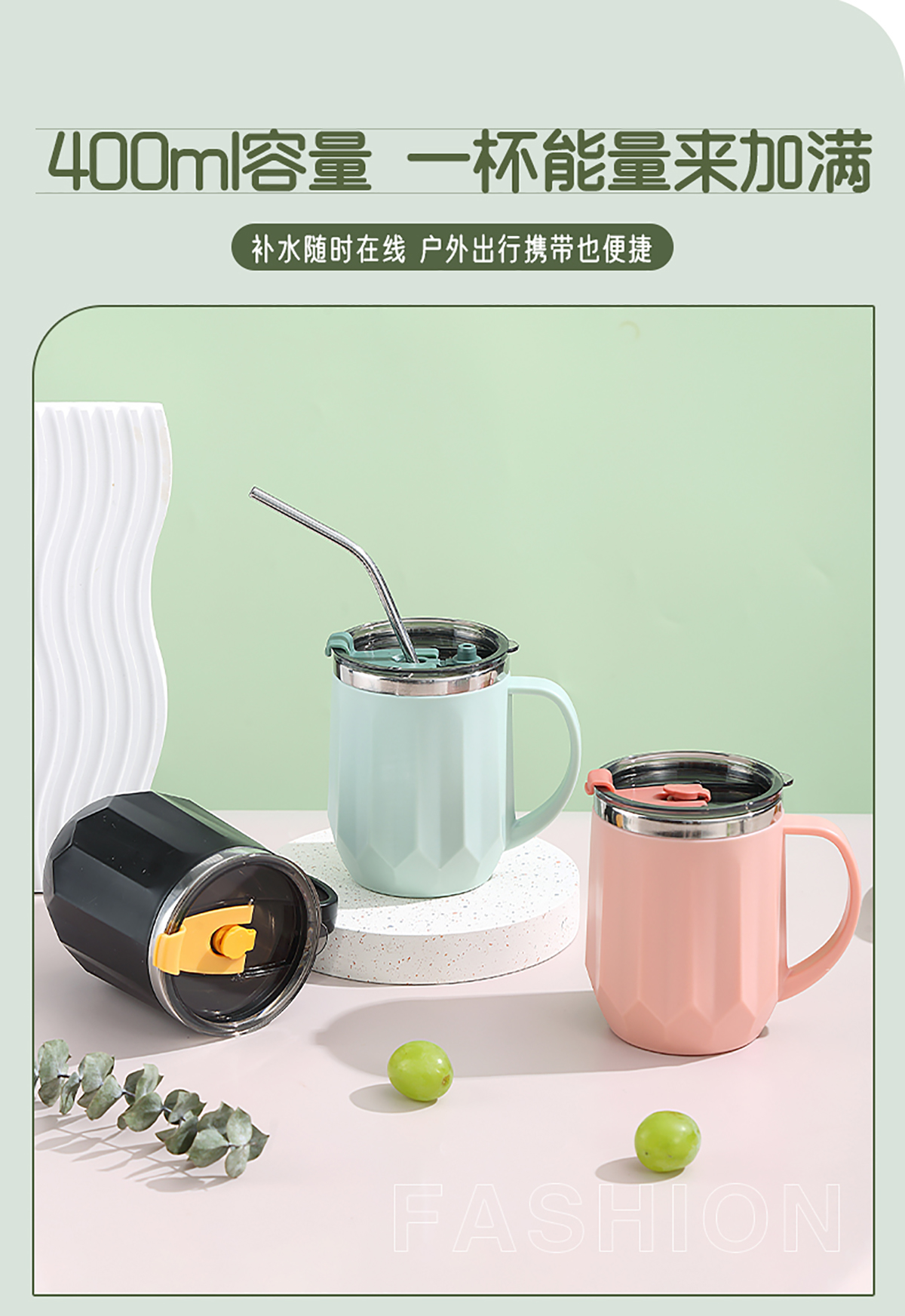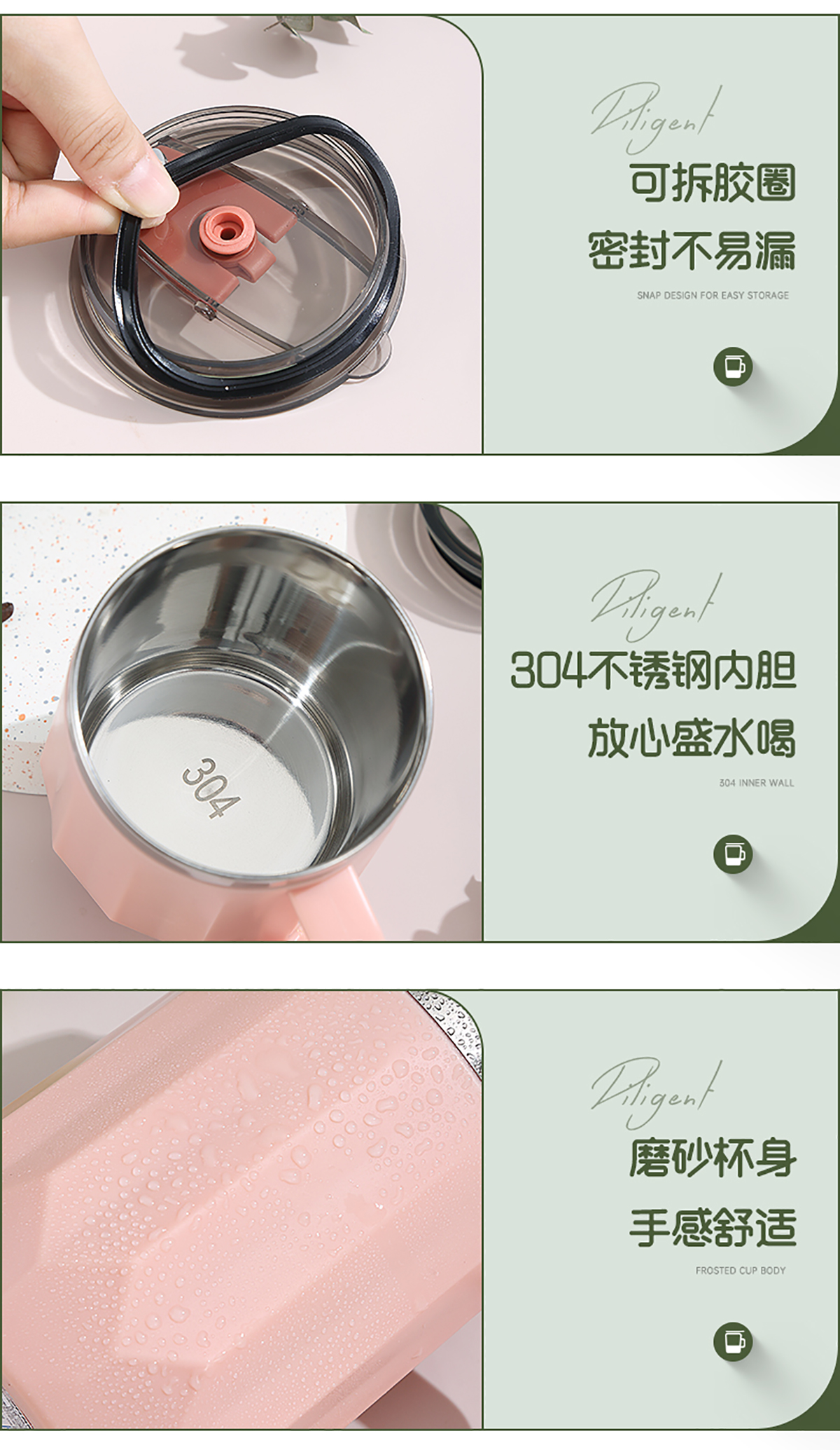 Stuff:304不銹鋼+外杯PP+蓋AS+硅膠圈/彩盒
