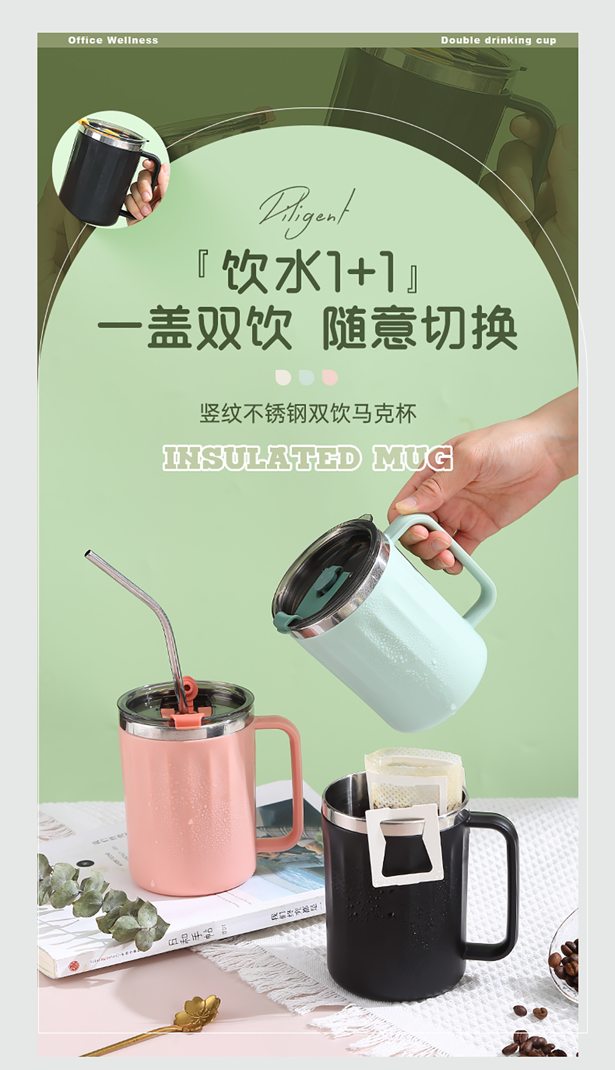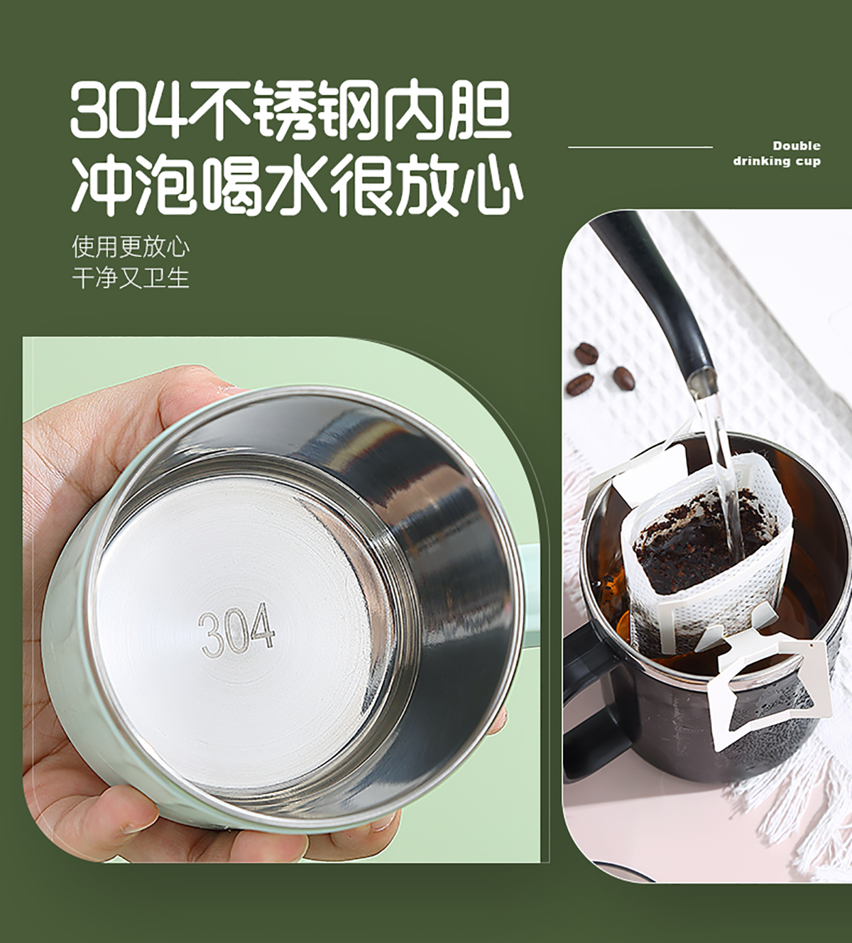 豎紋不銹鋼雙飲杯400ml