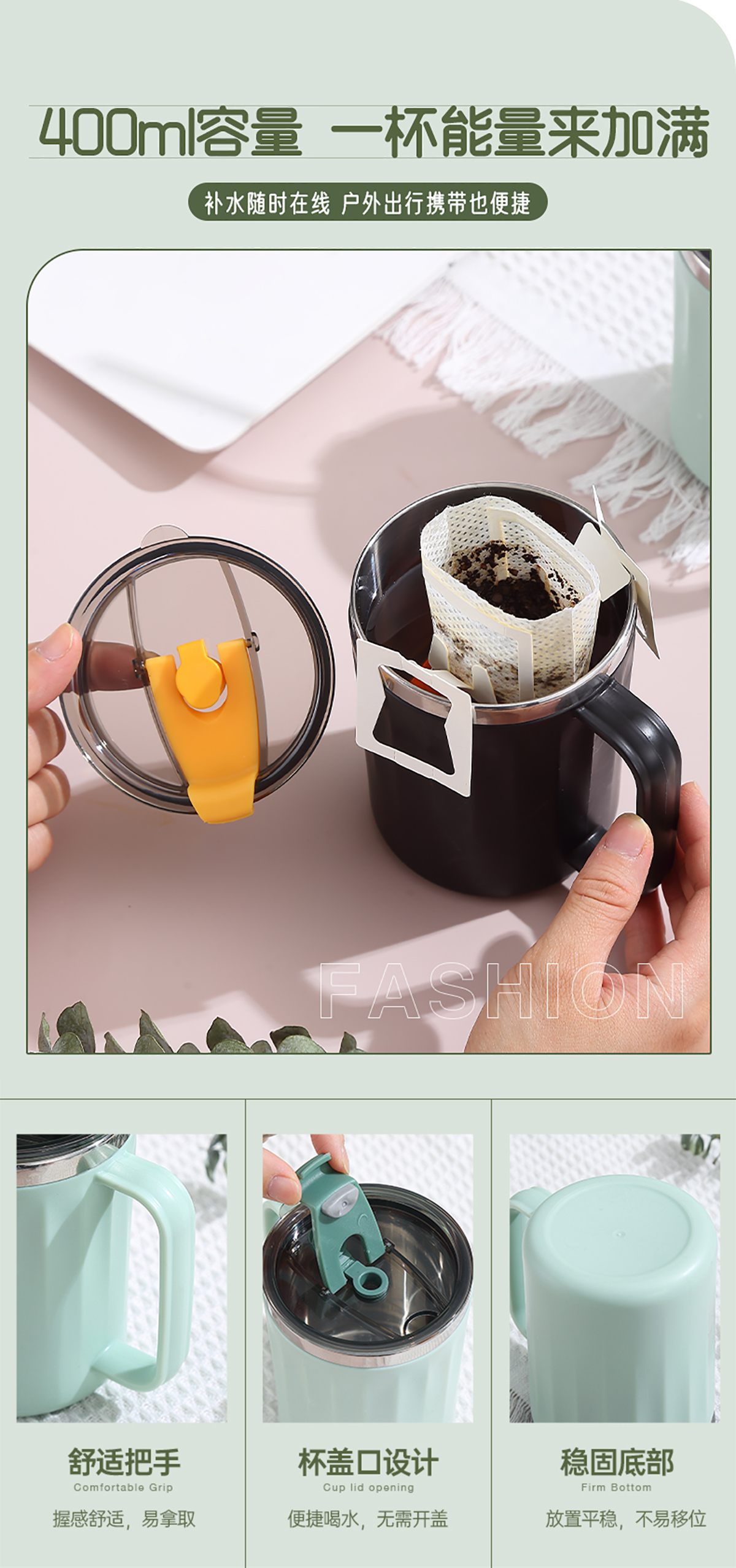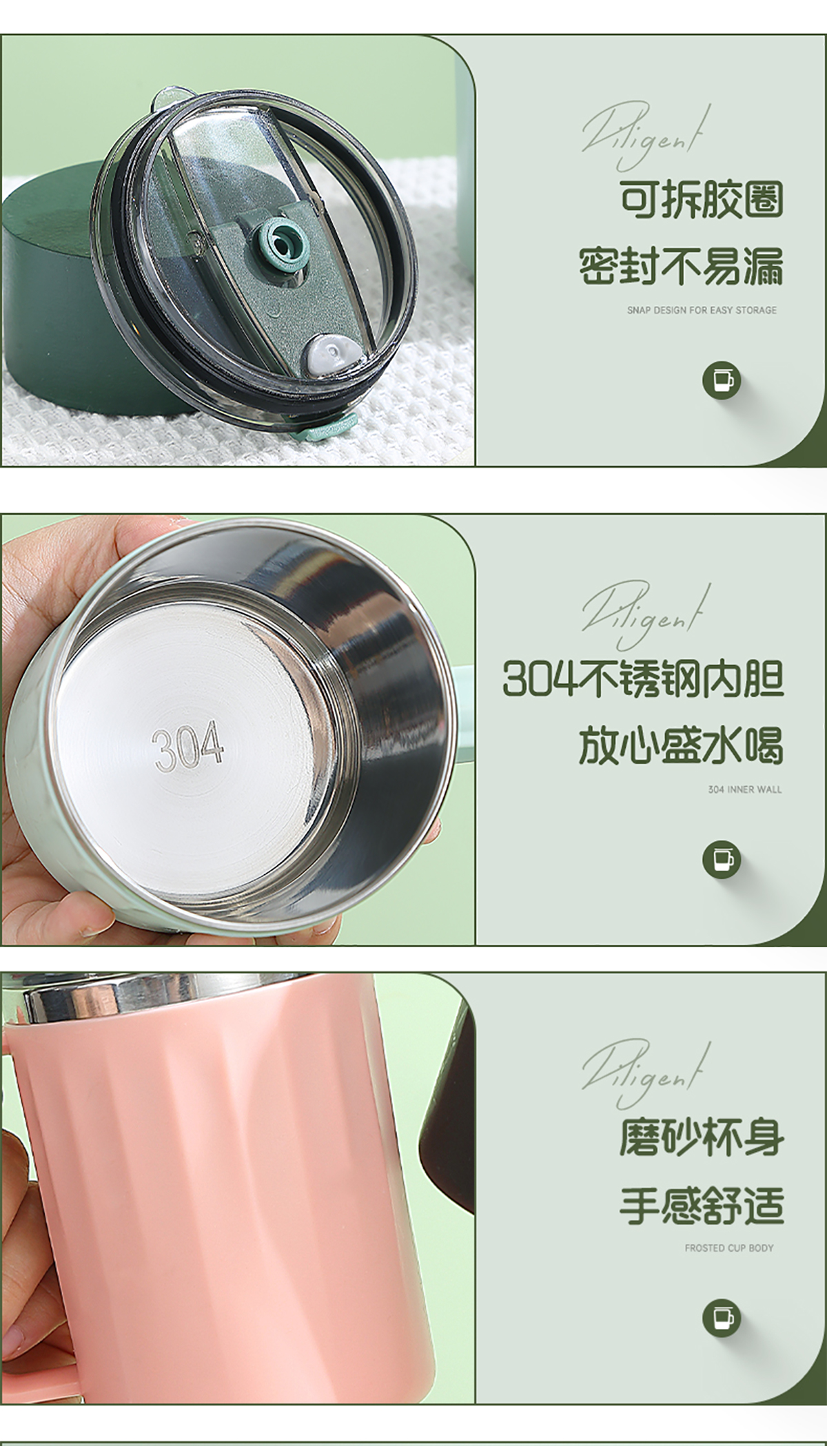 Stuff:304不銹鋼+外杯PP+蓋AS+硅膠圈/彩盒