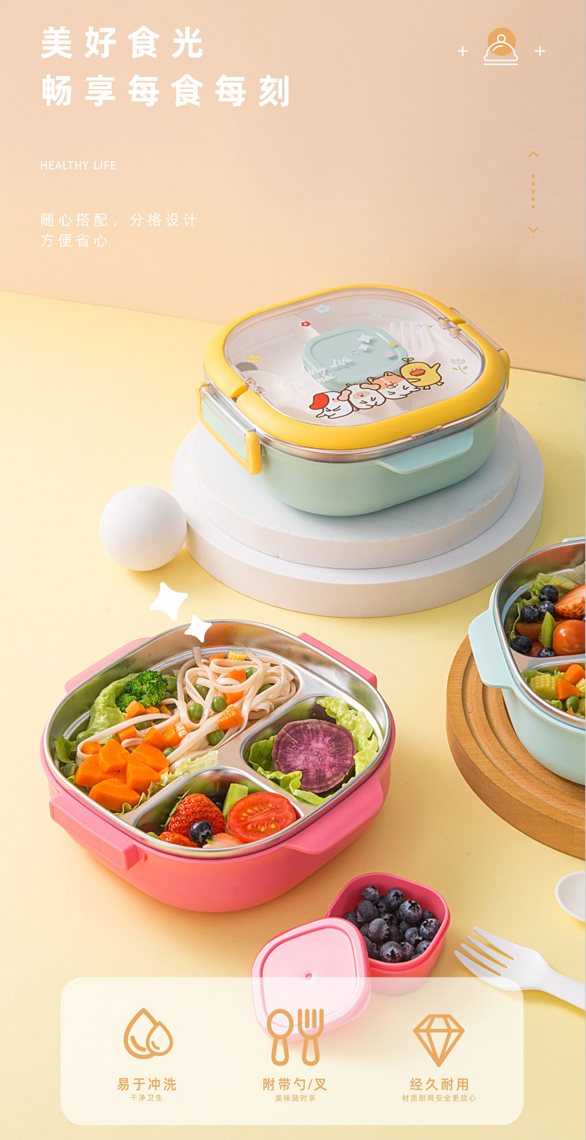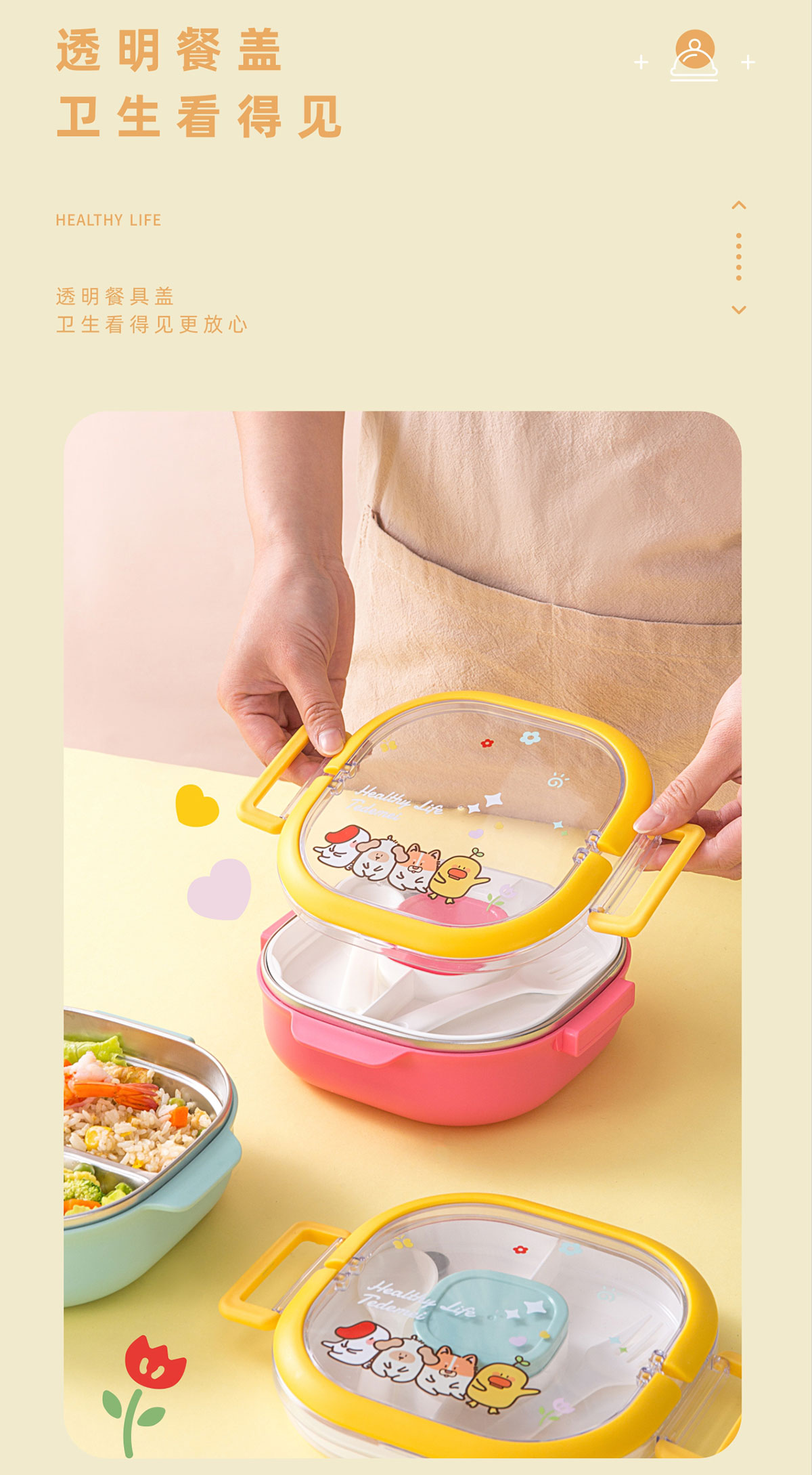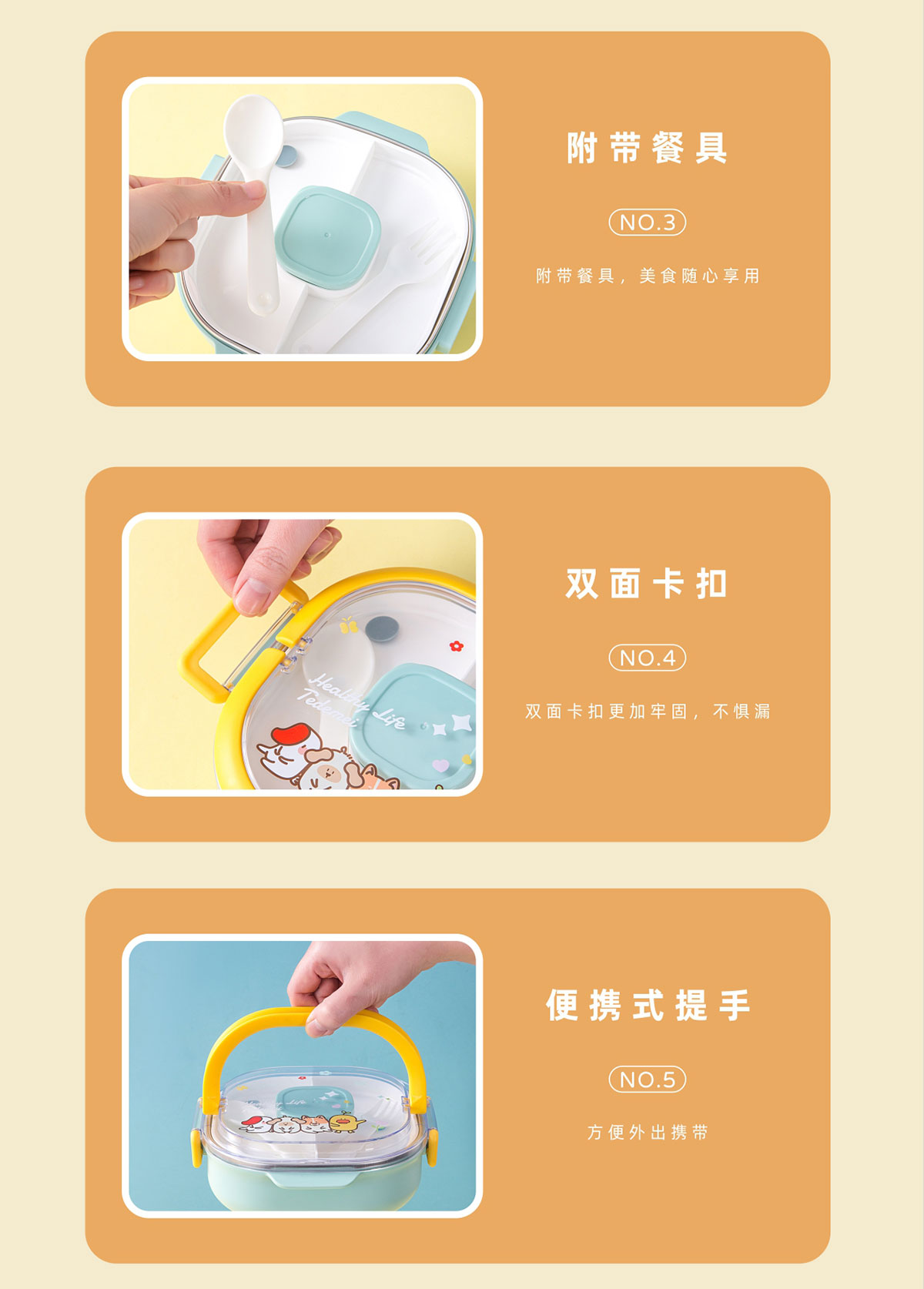 兒童不銹鋼三格餐盒(內(nèi)盒50ml/中格250ml/不銹鋼700ml)