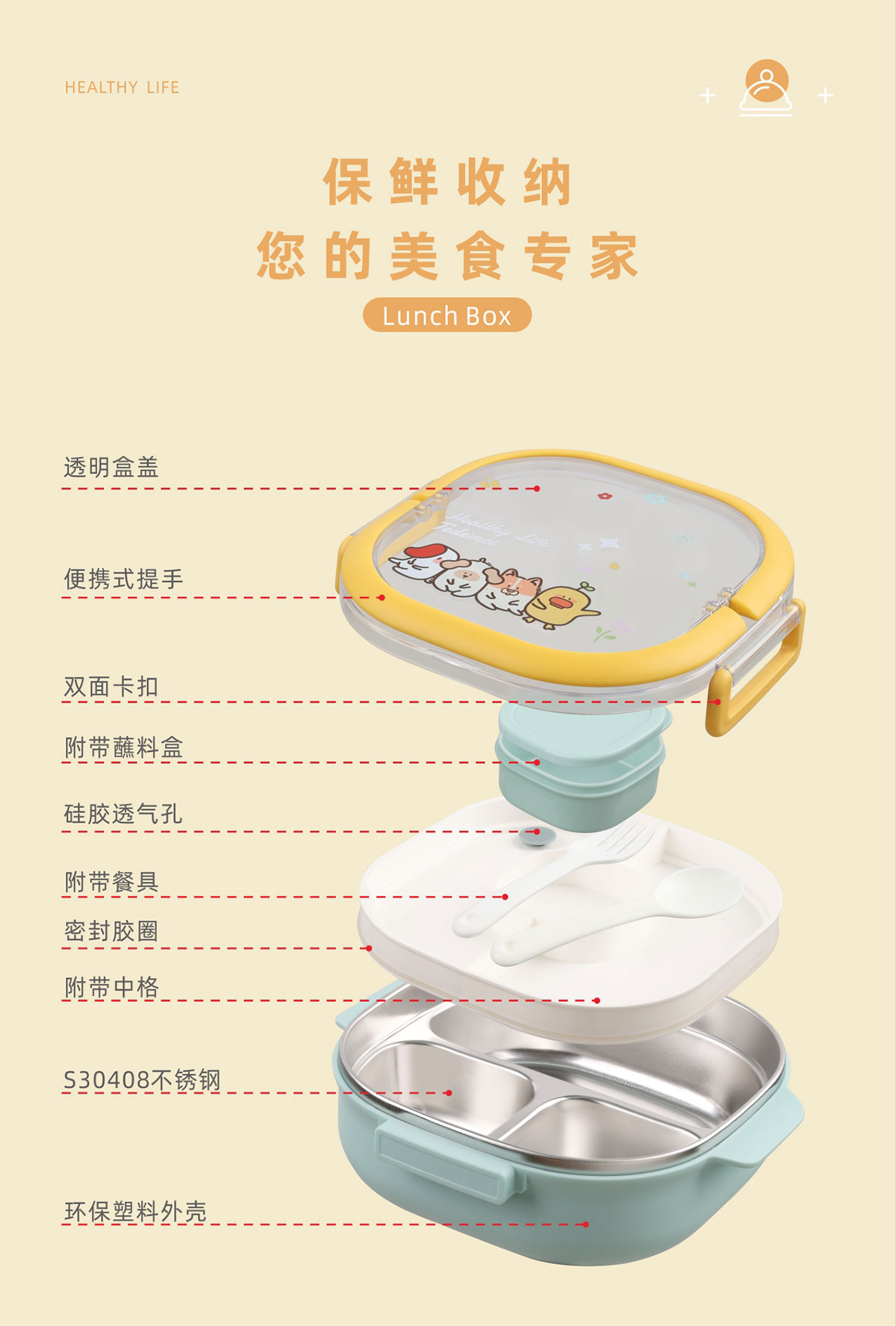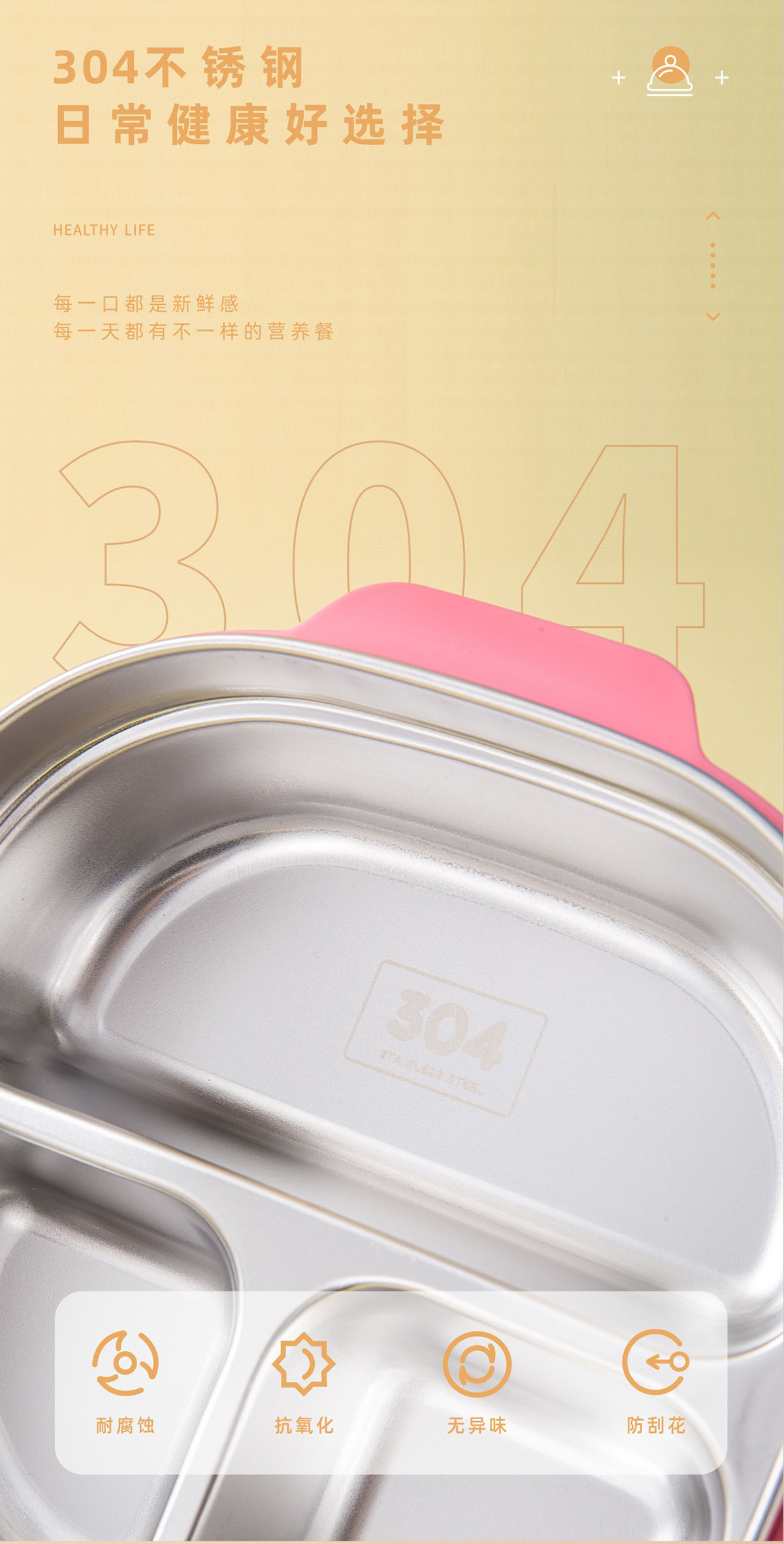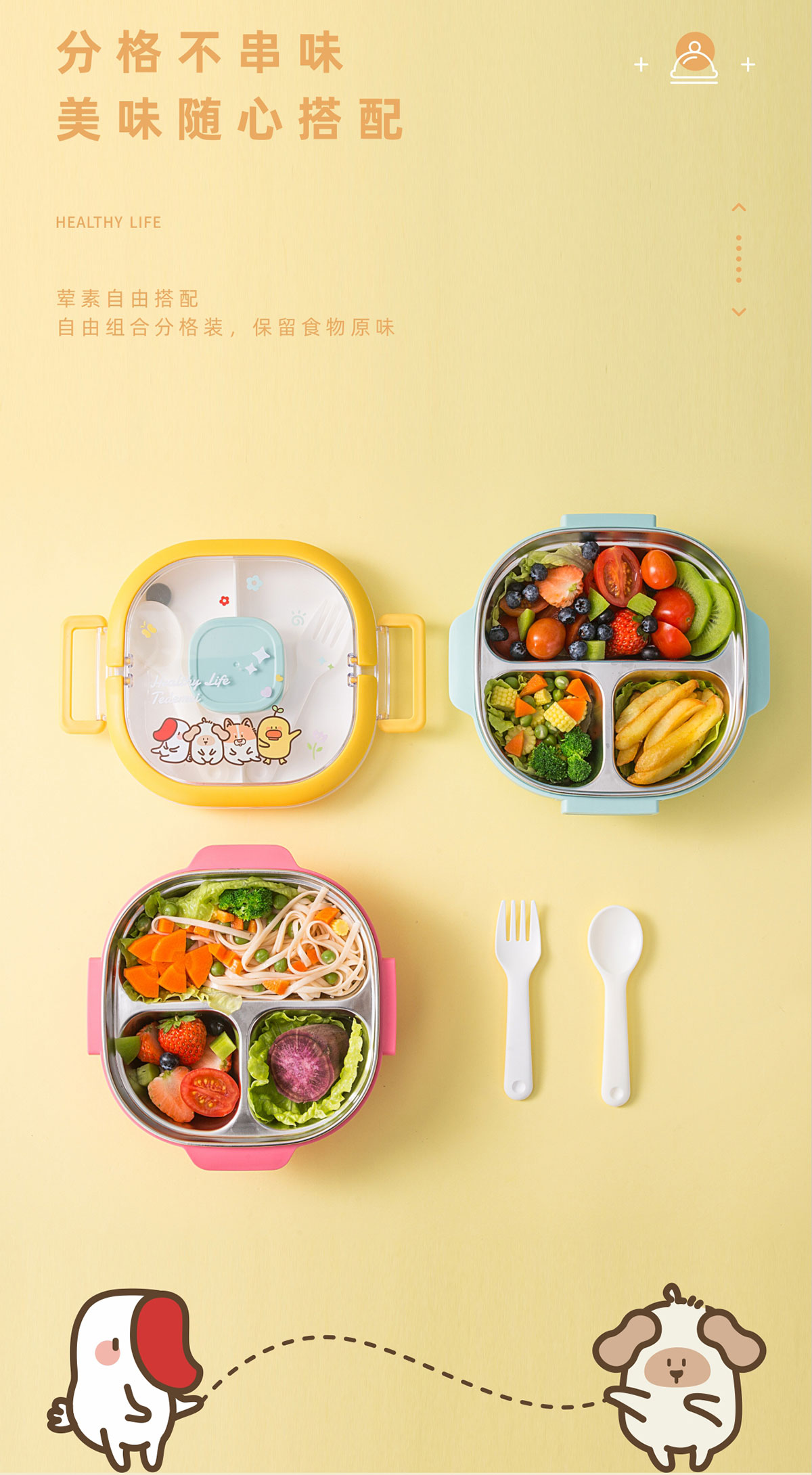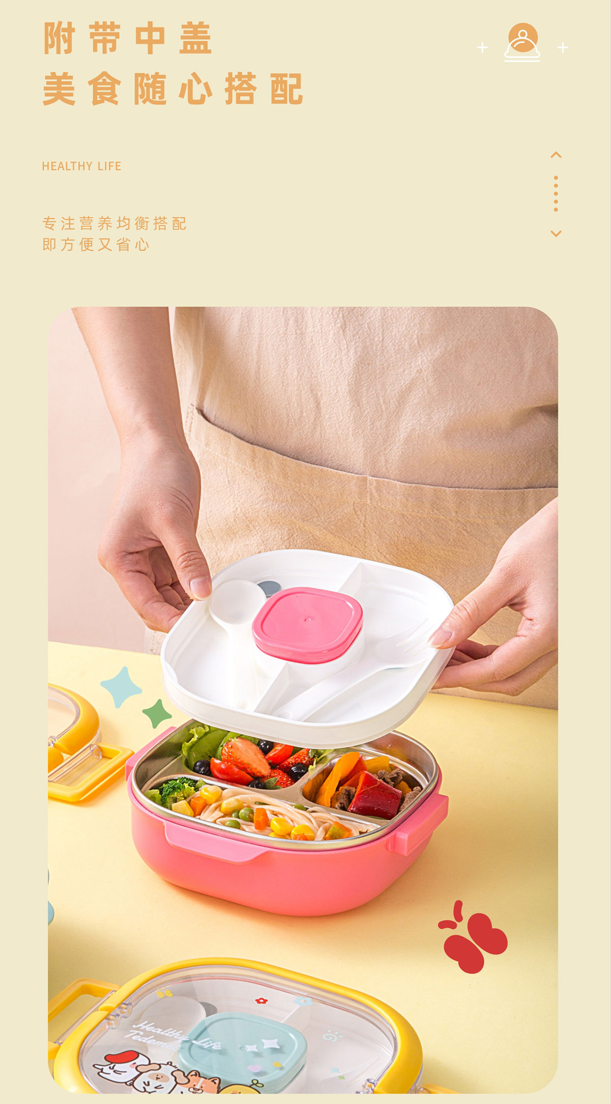 兒童不銹鋼三格餐盒(內(nèi)盒50ml/中格250ml/不銹鋼700ml)