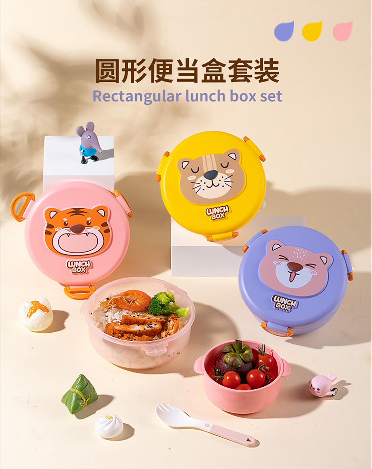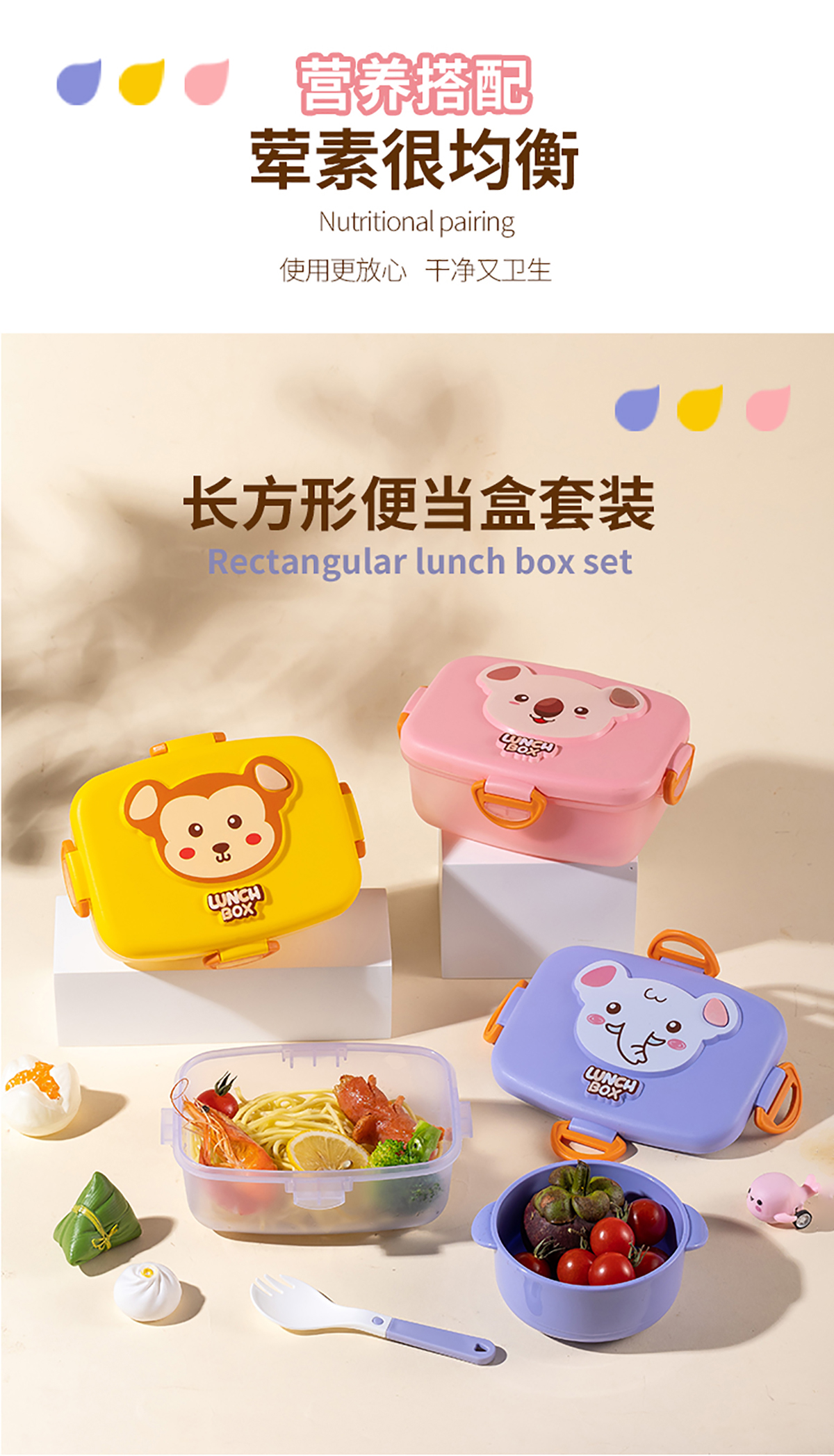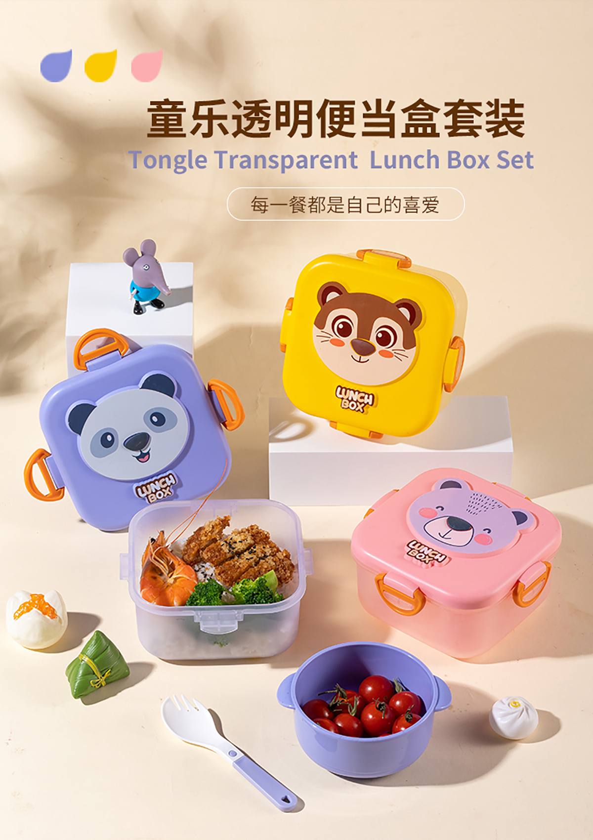 童樂透明長方形/圓形/正方形便當(dāng)盒套裝