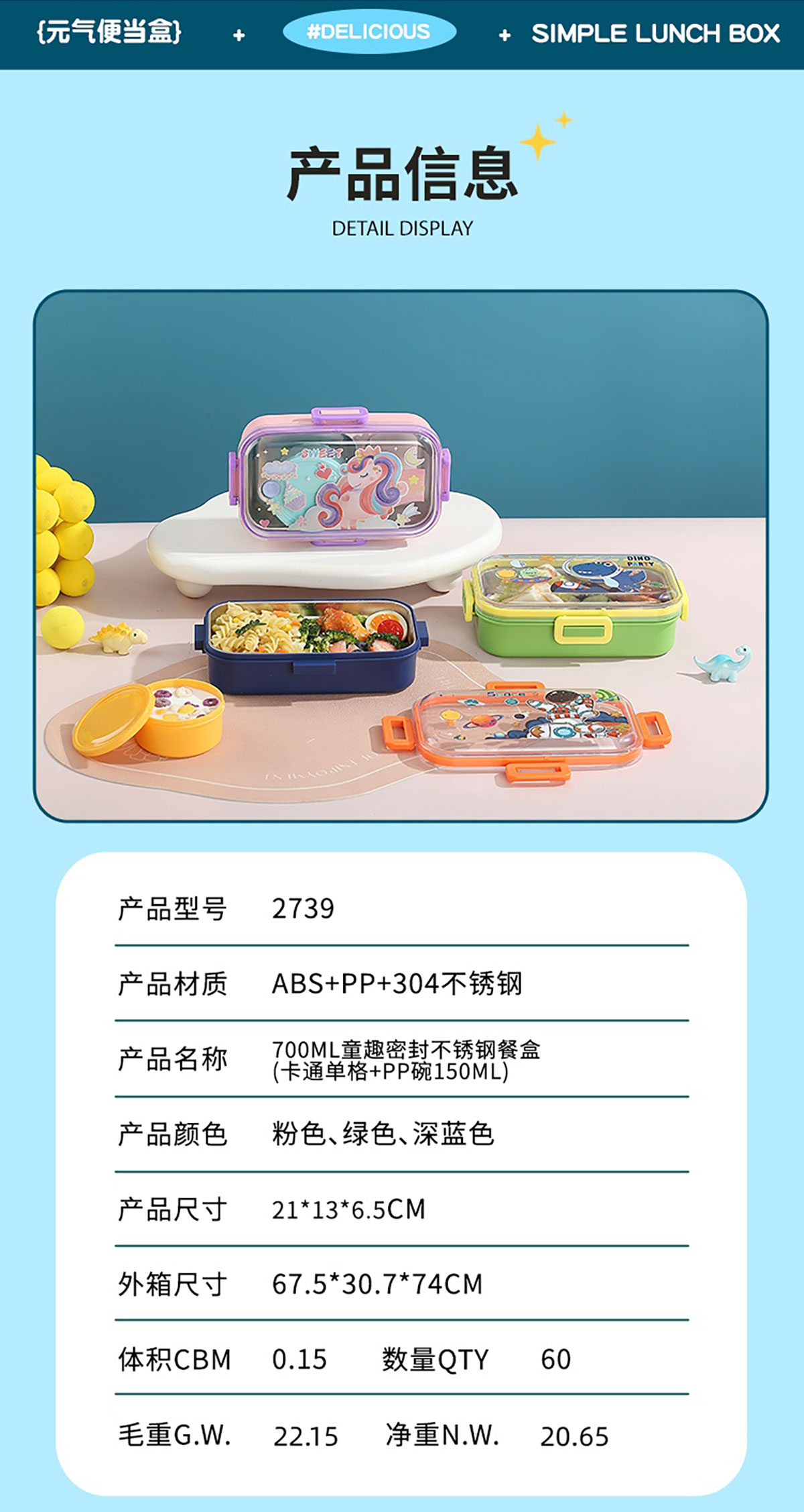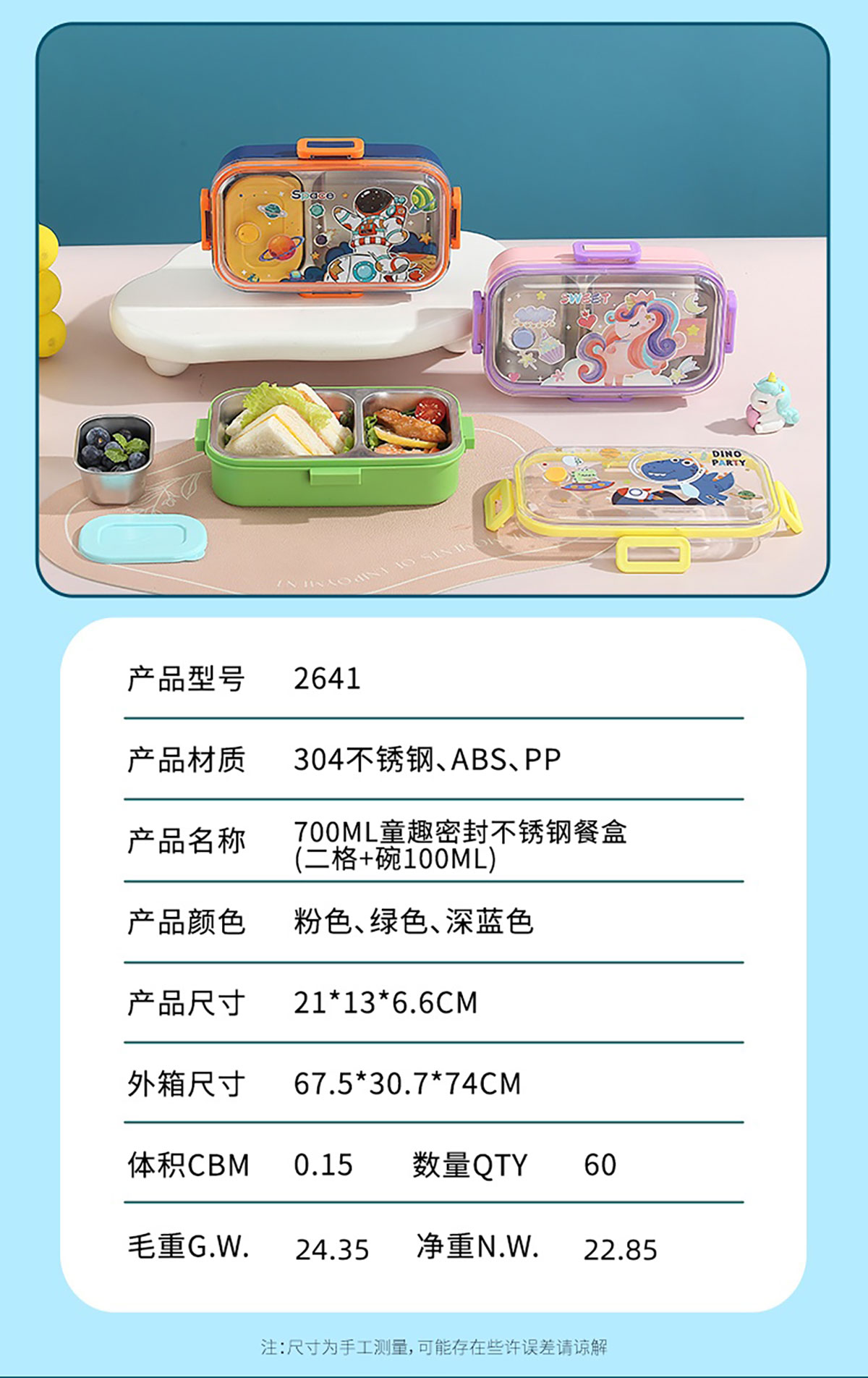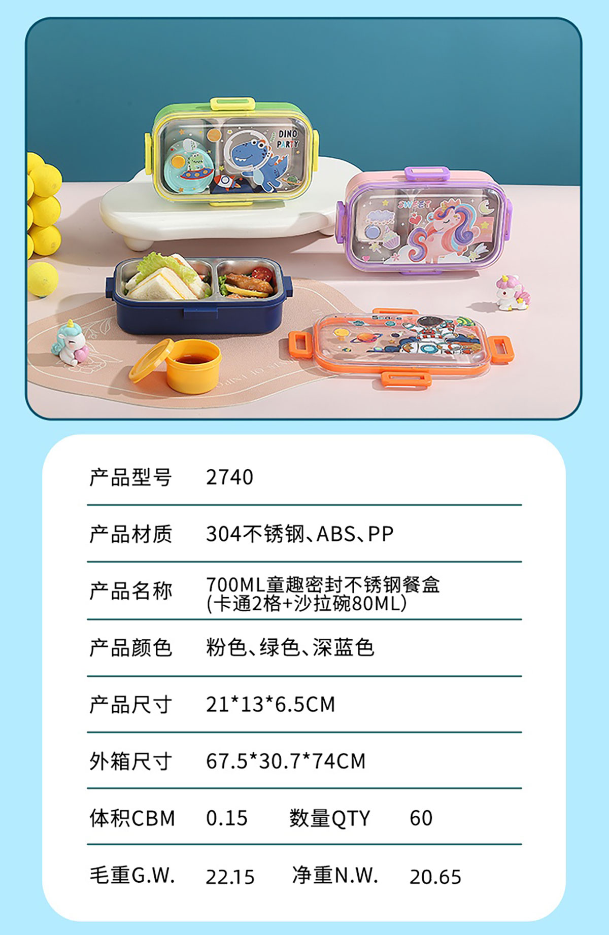Size: AQX-2739:210*130*65mm/單格+PP碗150ml