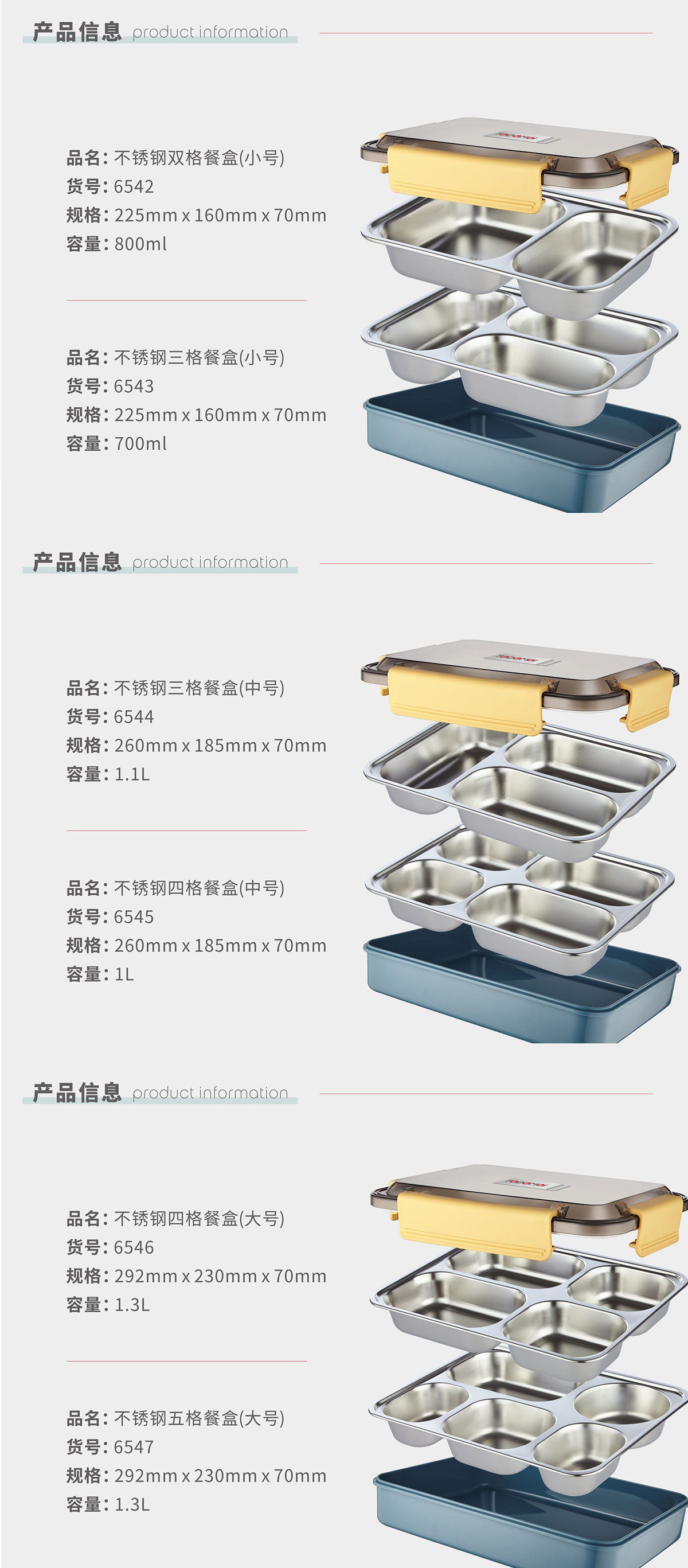 不銹鋼雙格/三格(小號)三格/四格(中號)四格/五格(大號)餐盒(20年色款)