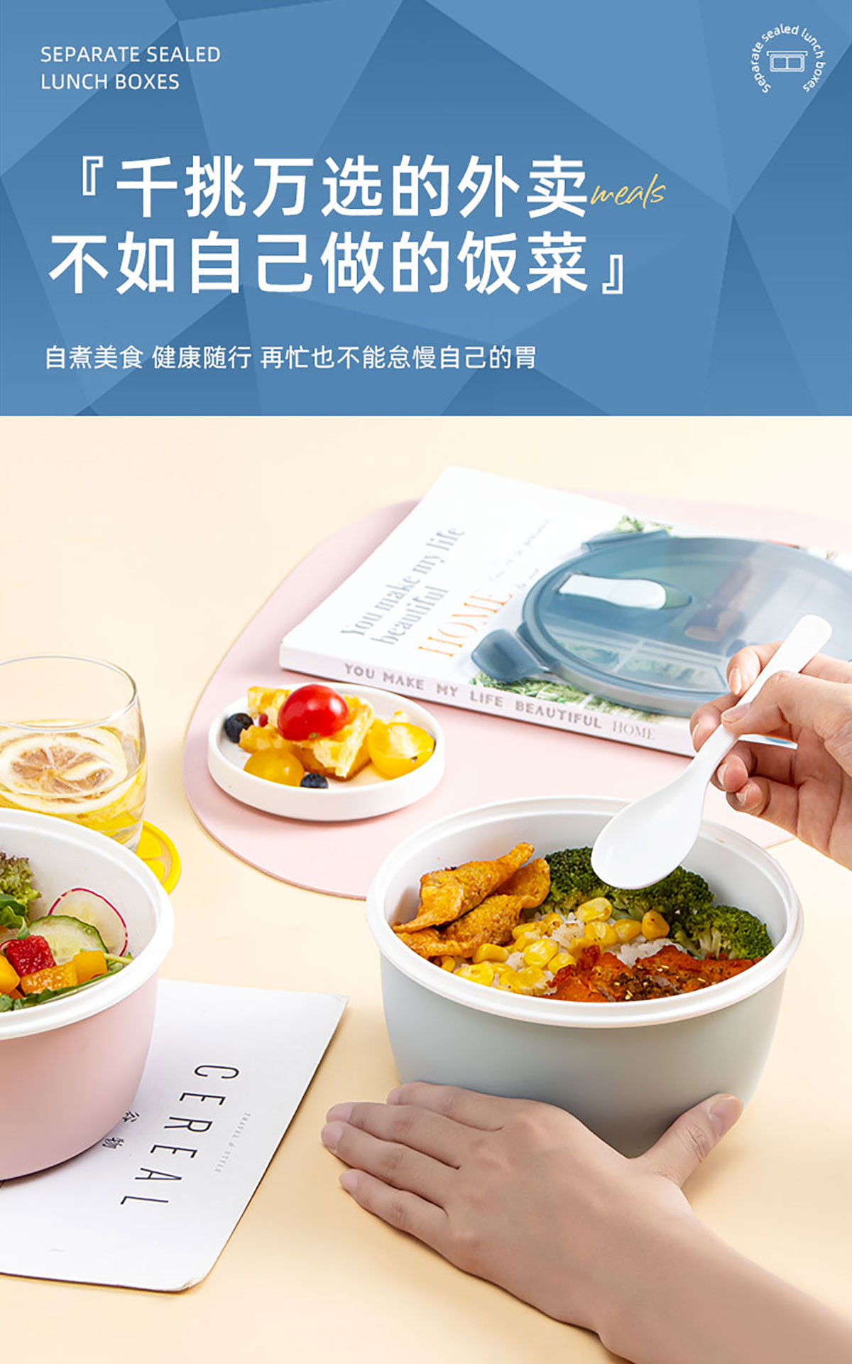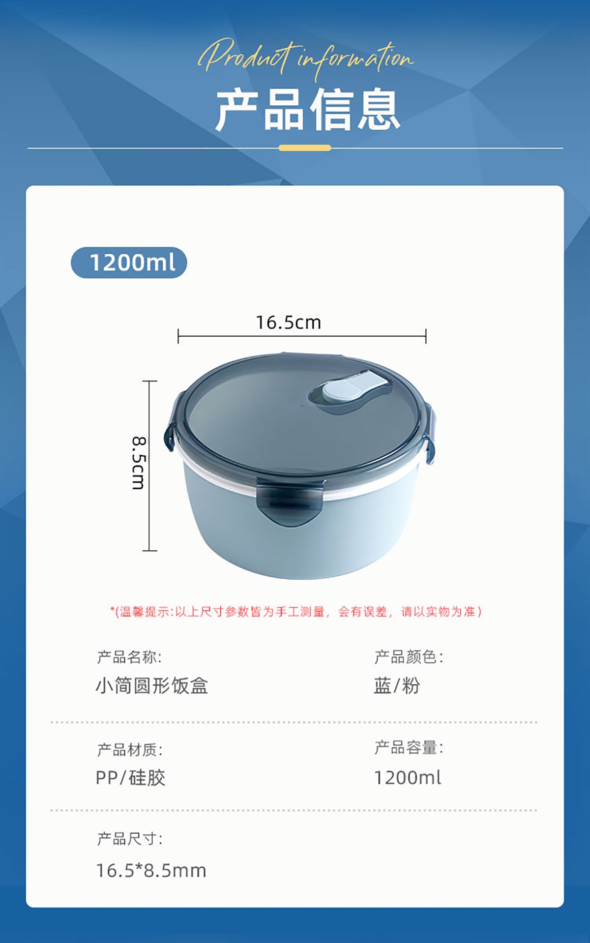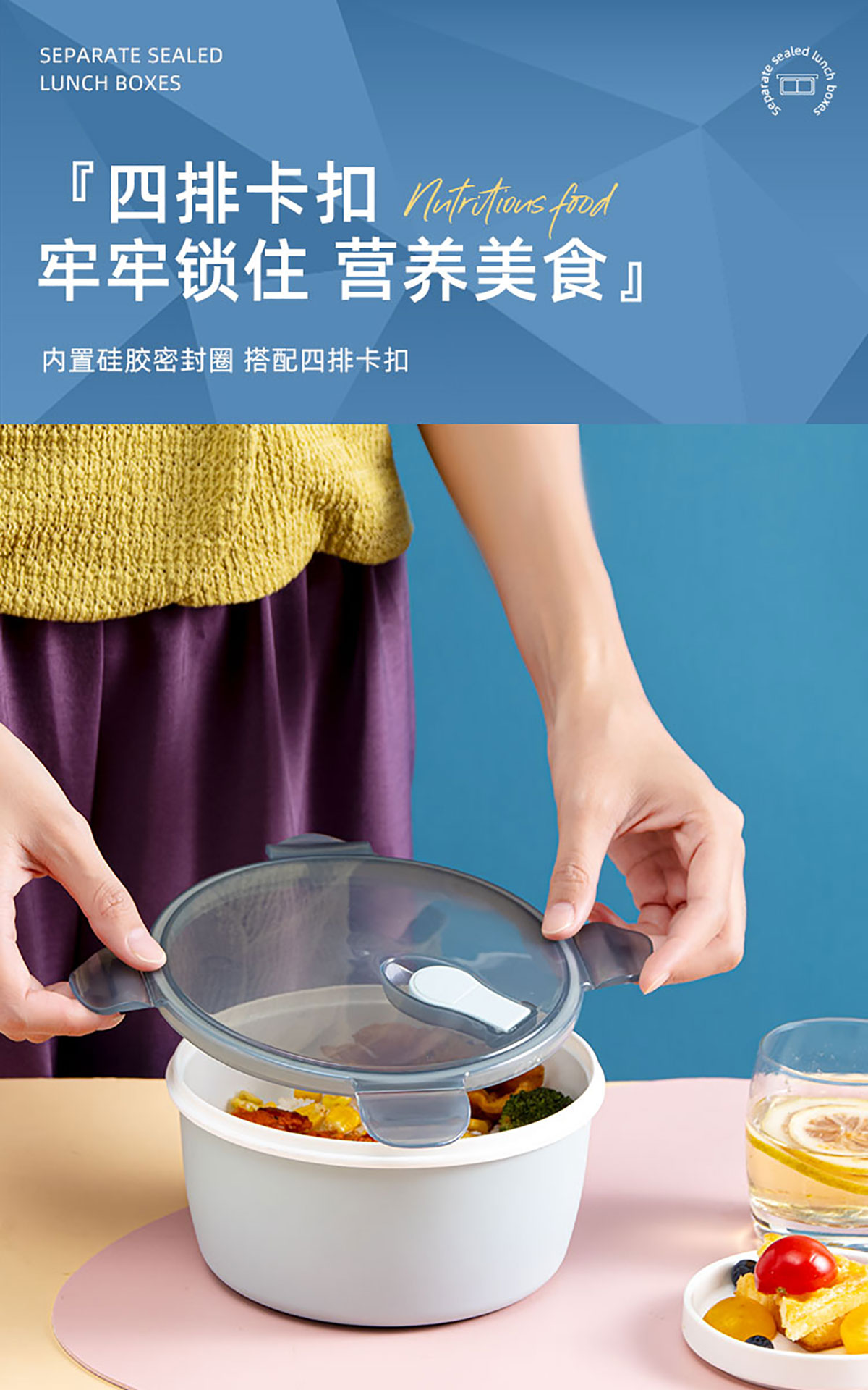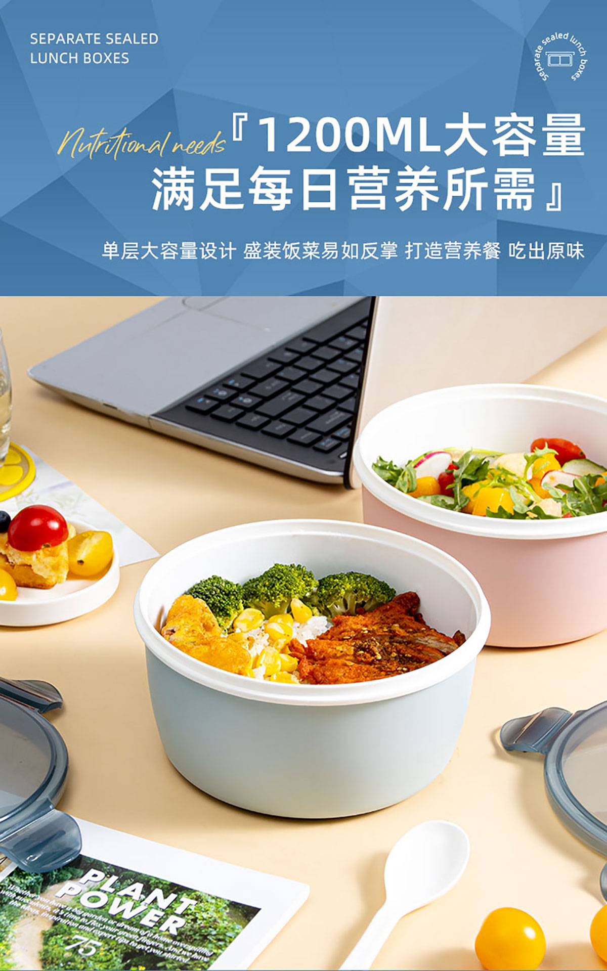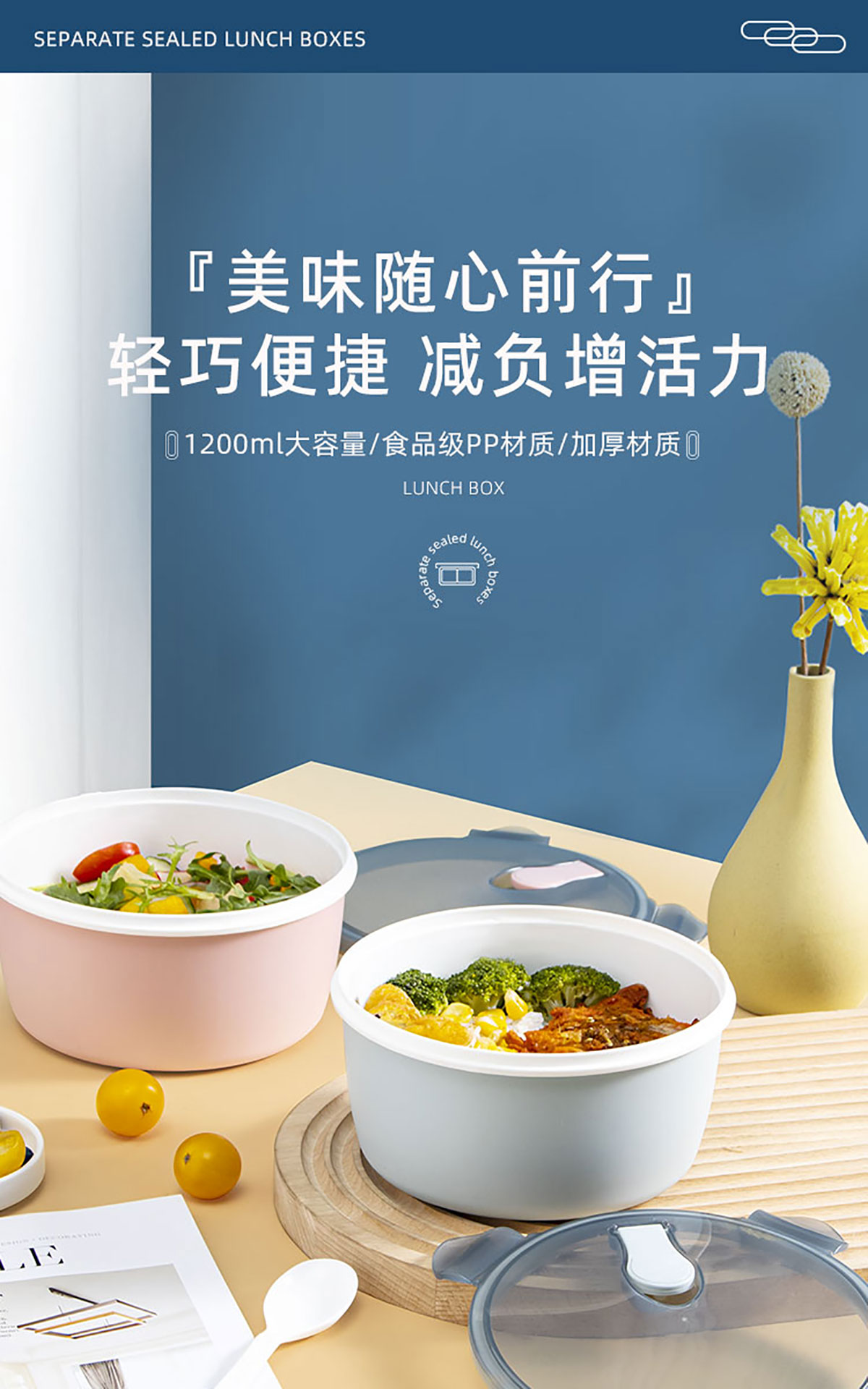 小簡(jiǎn)圓形抗菌飯盒1200ml