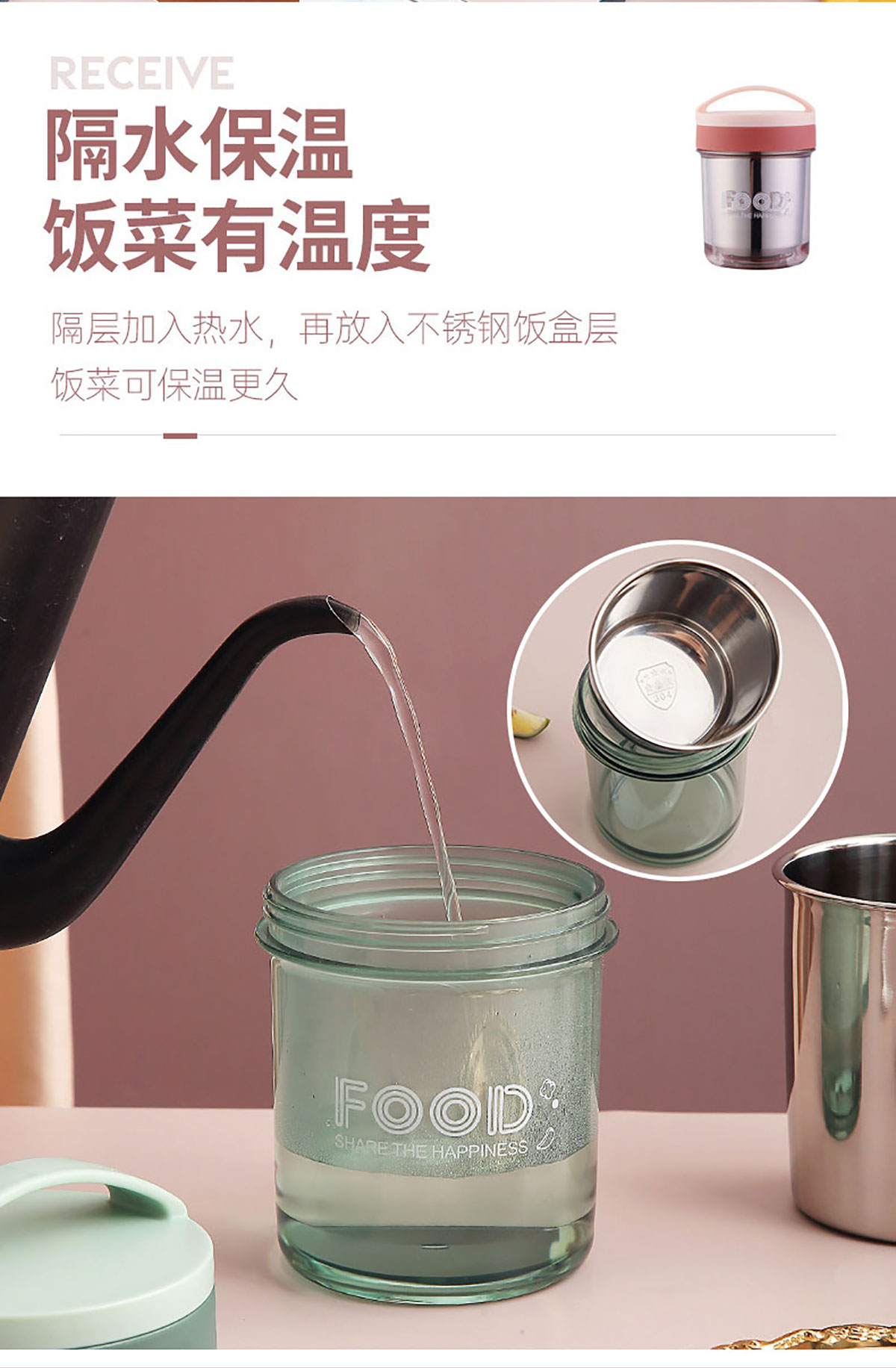 Stuff:內(nèi)膽304不銹鋼+外盒AS+勺蓋PP/彩盒