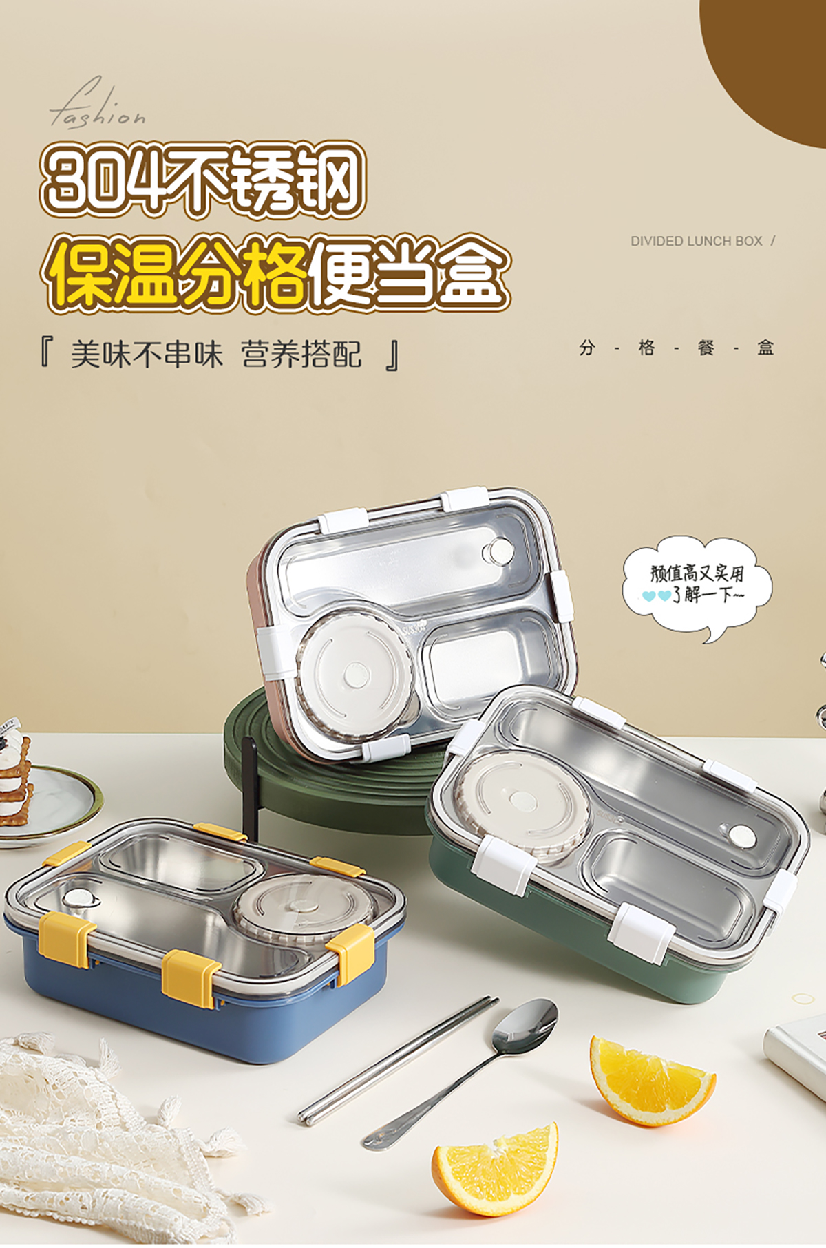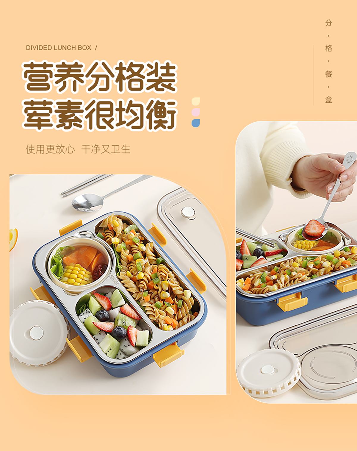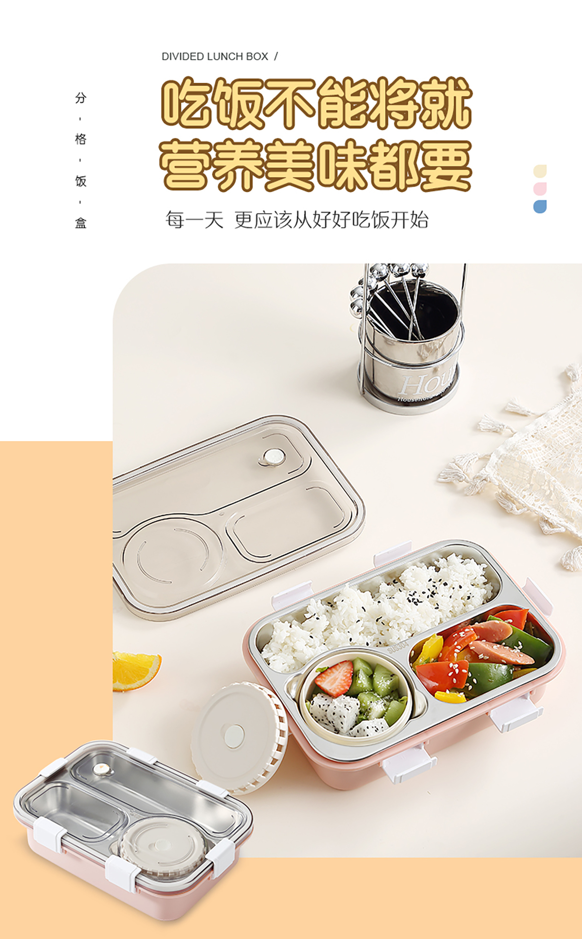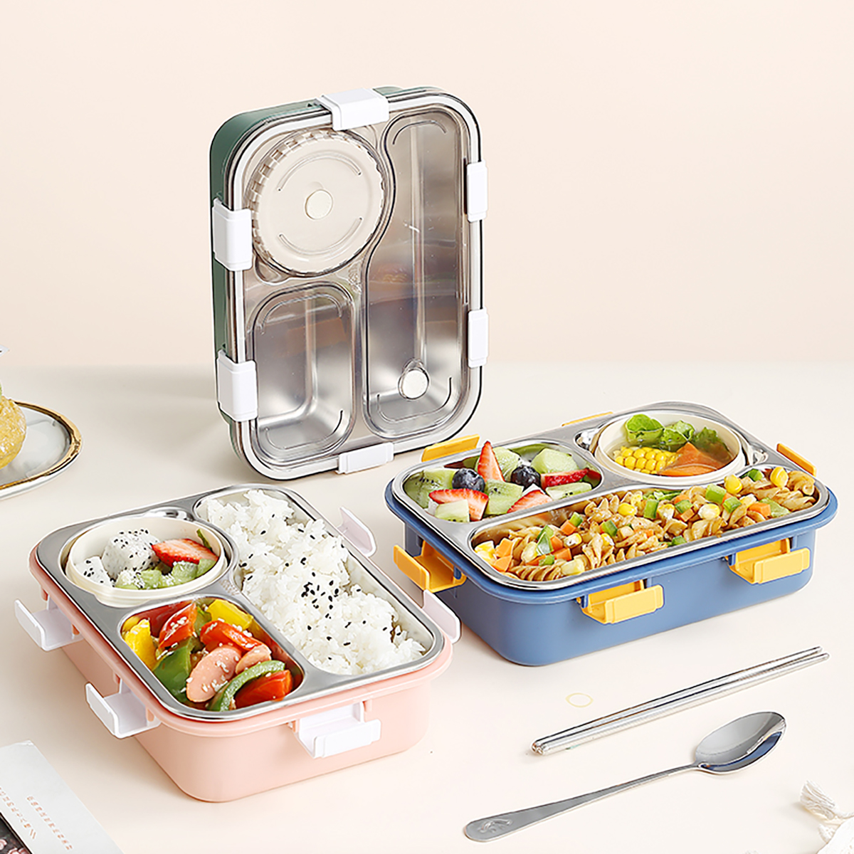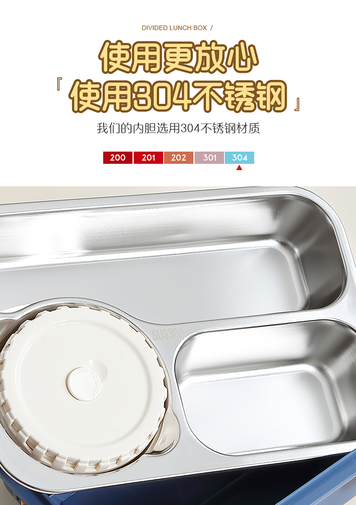 304不銹鋼飯盒700ml+150ml(三格+碗)