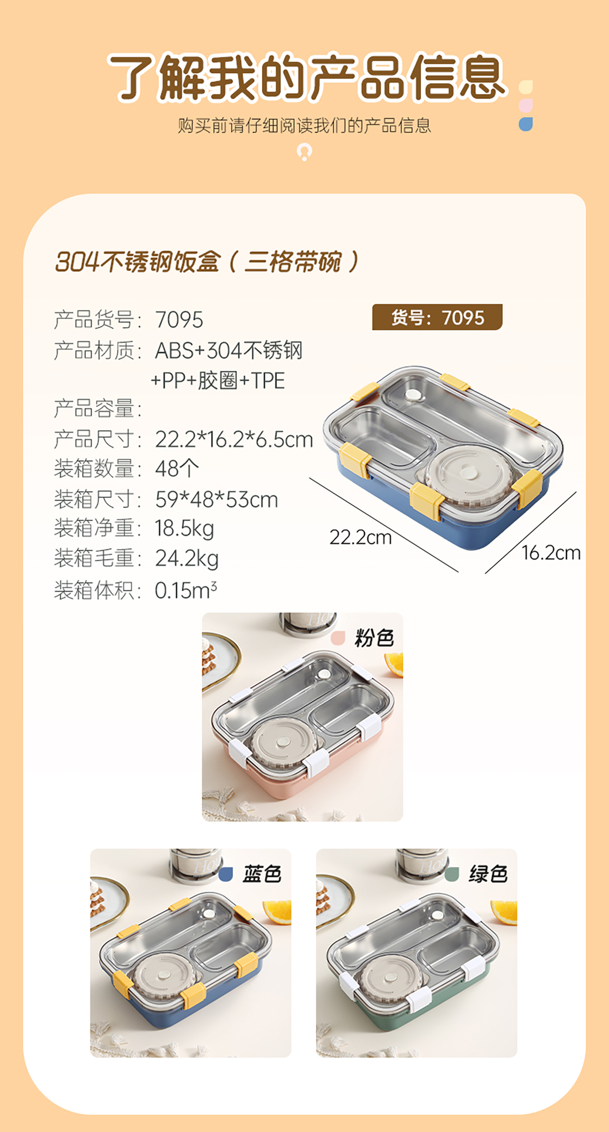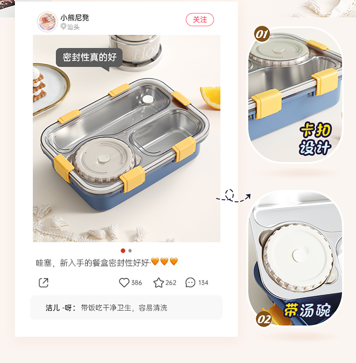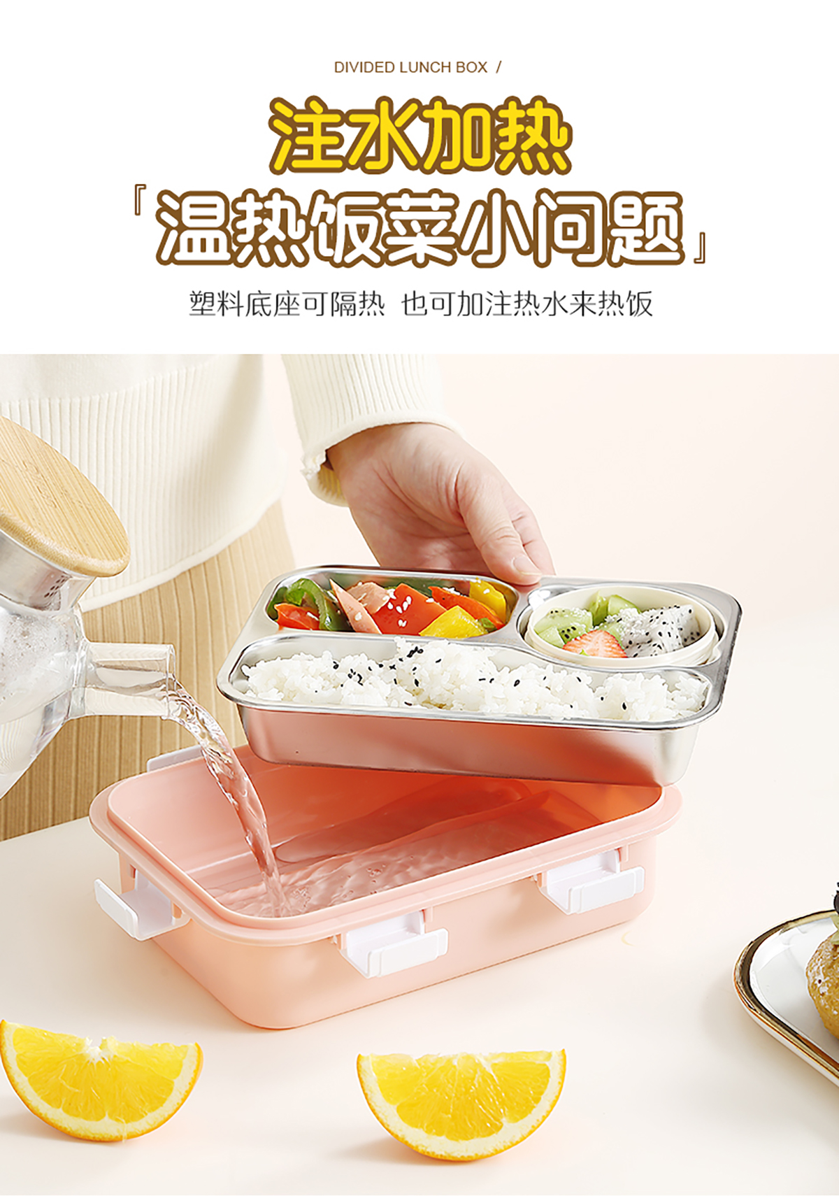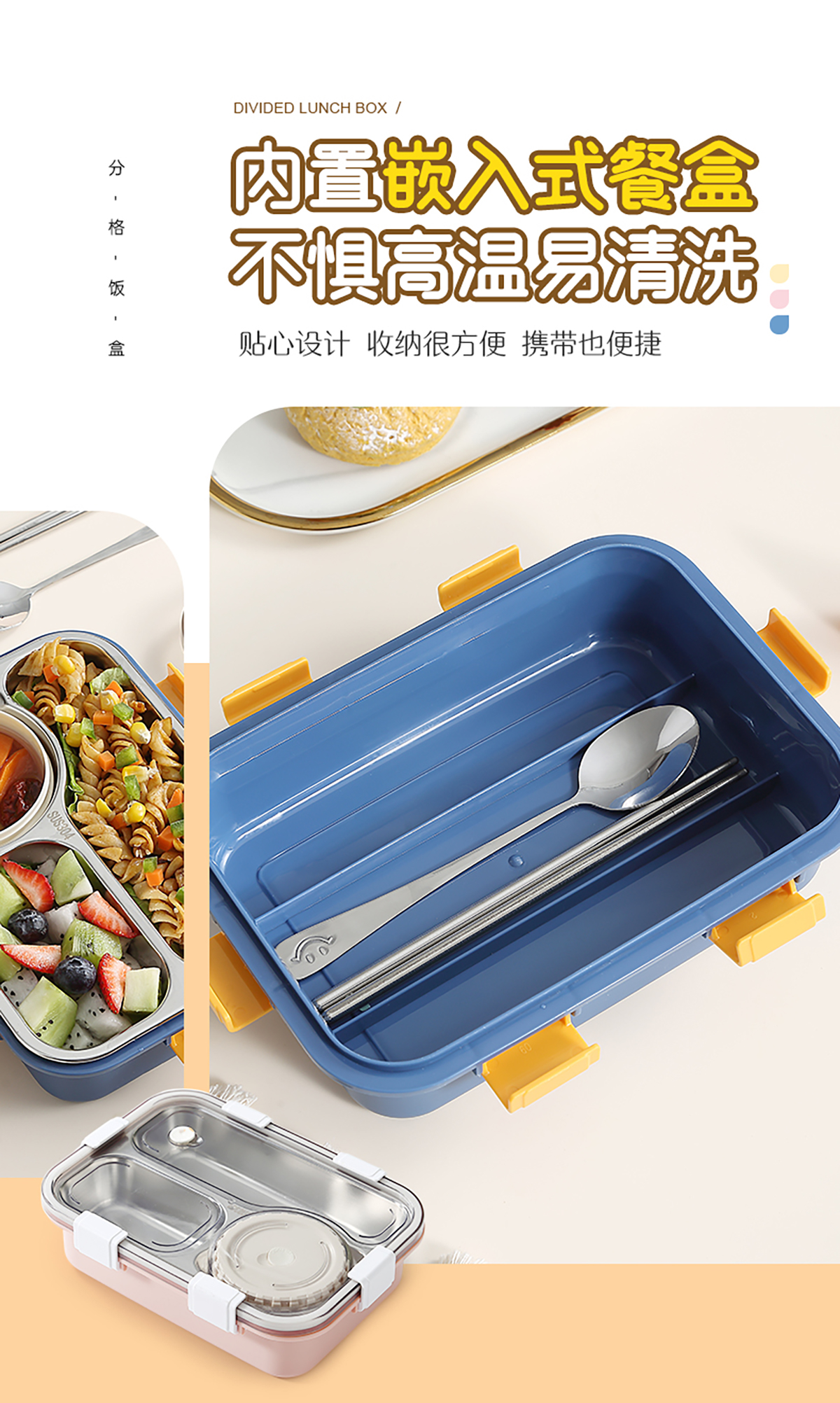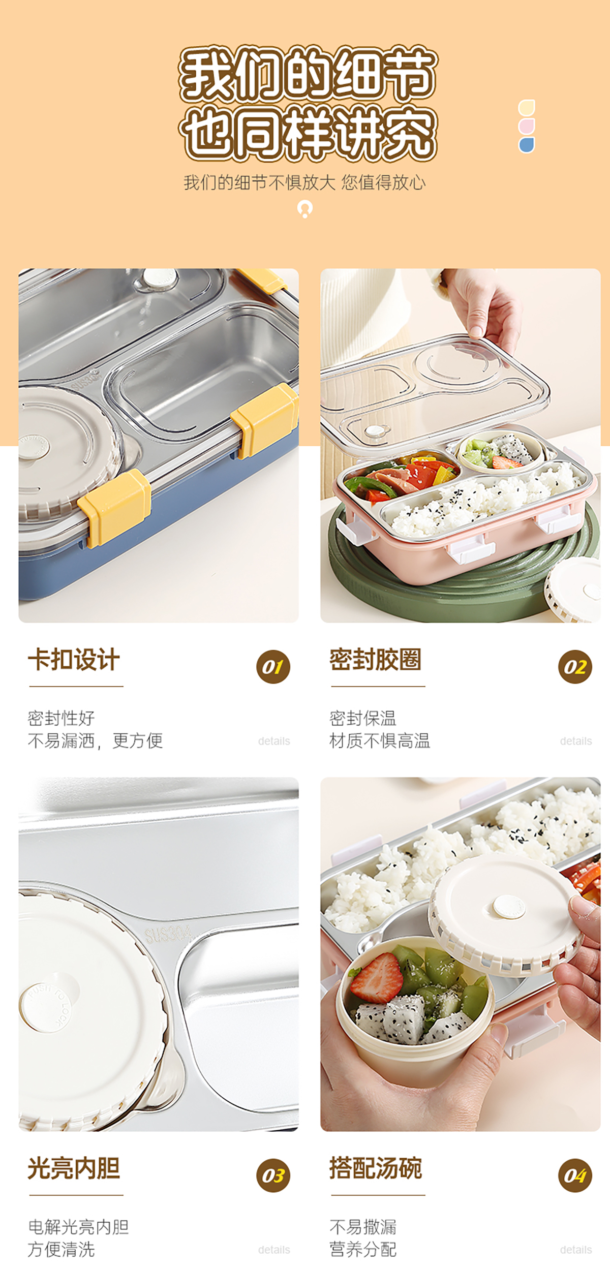 304不銹鋼飯盒700ml+150ml(三格+碗)