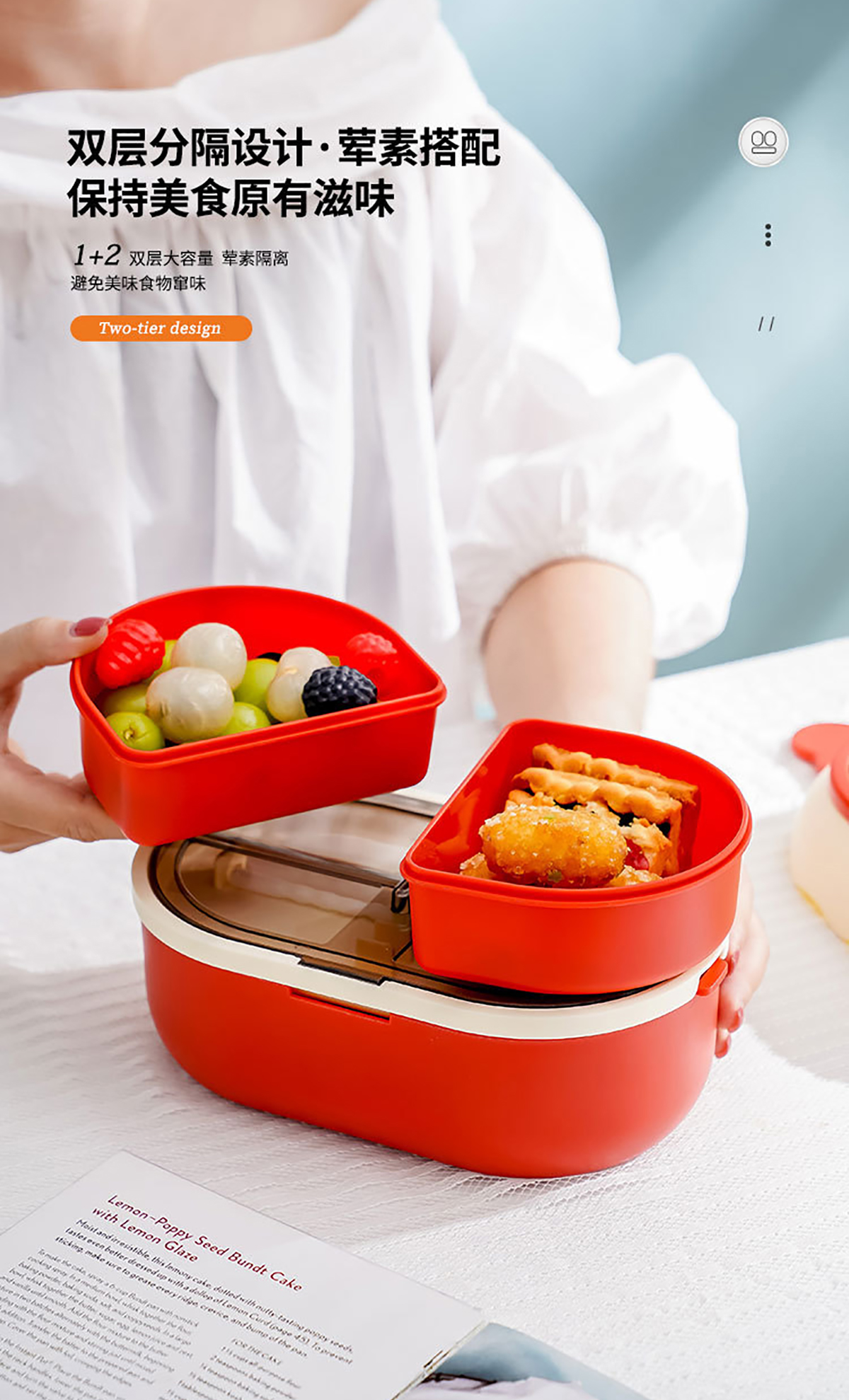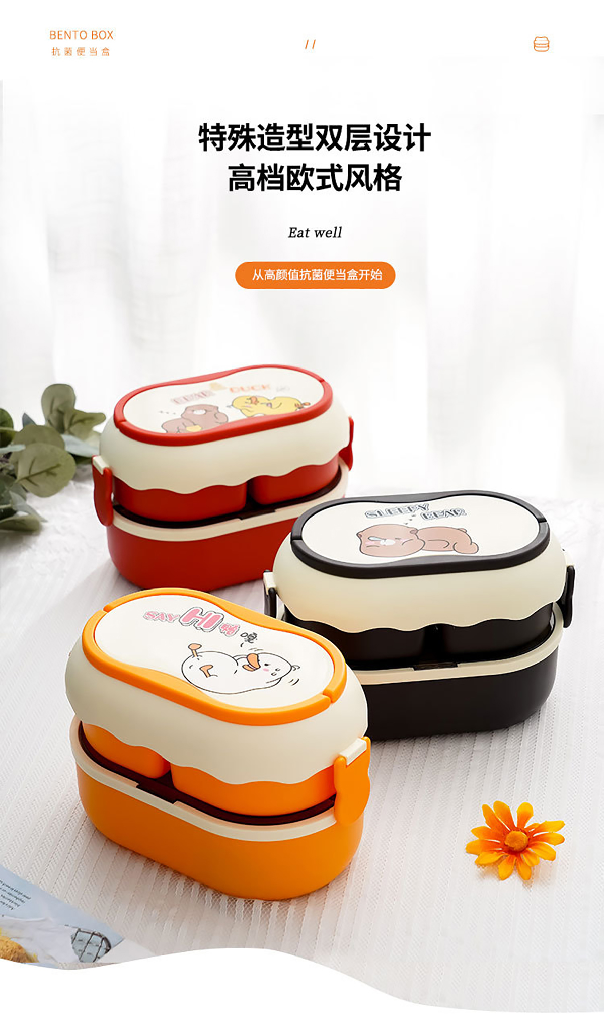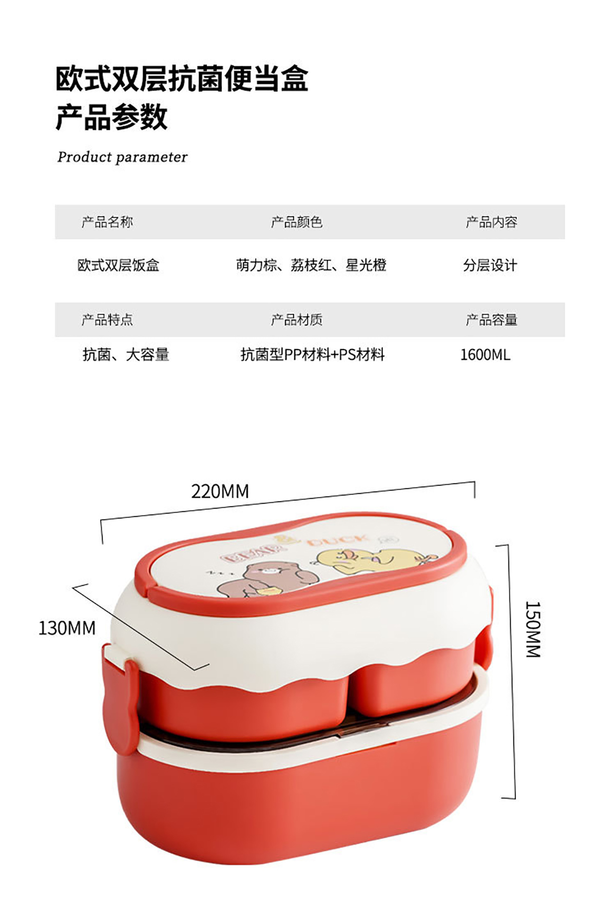 抗菌大容量分格飯盒1700ml 塑料款