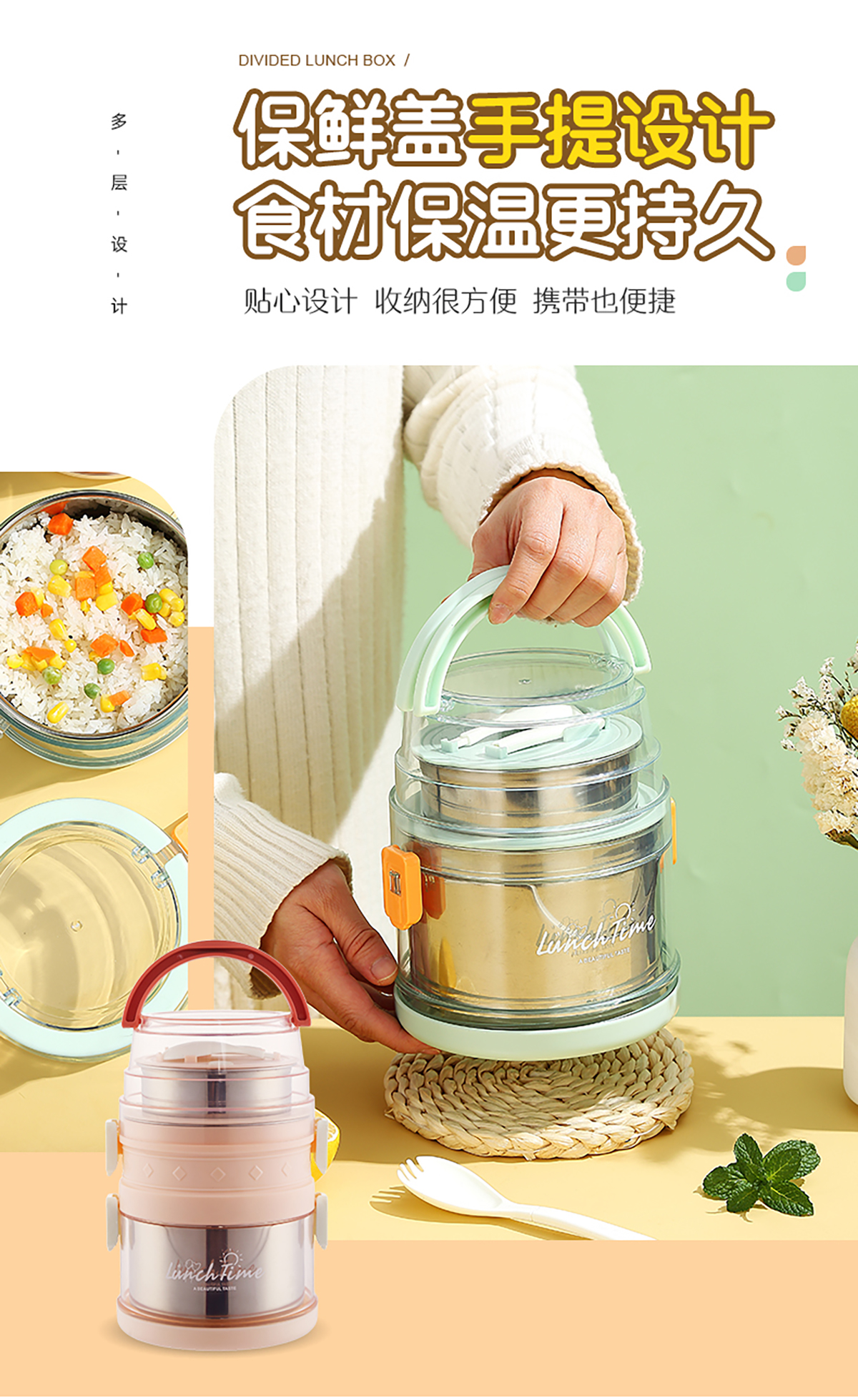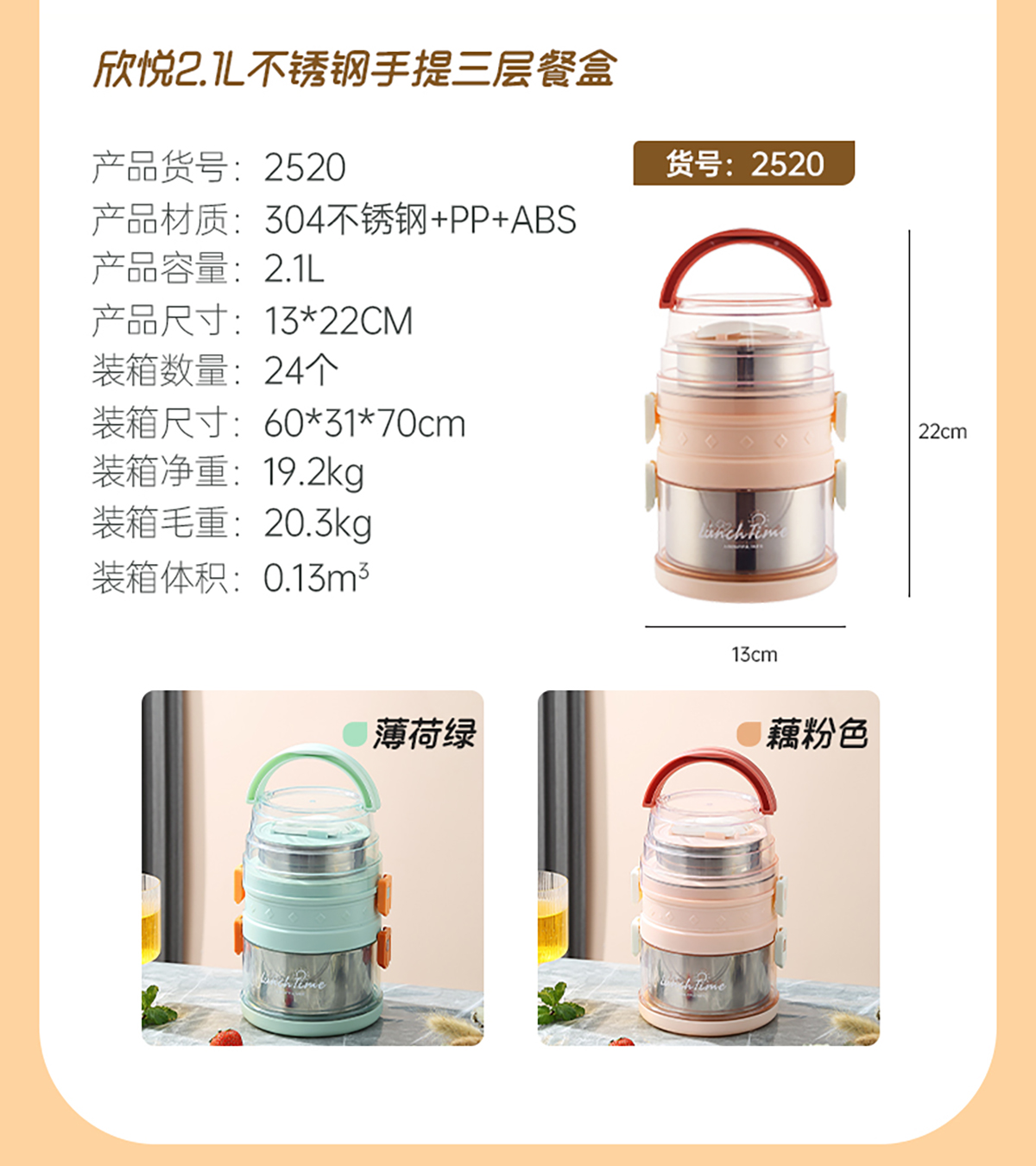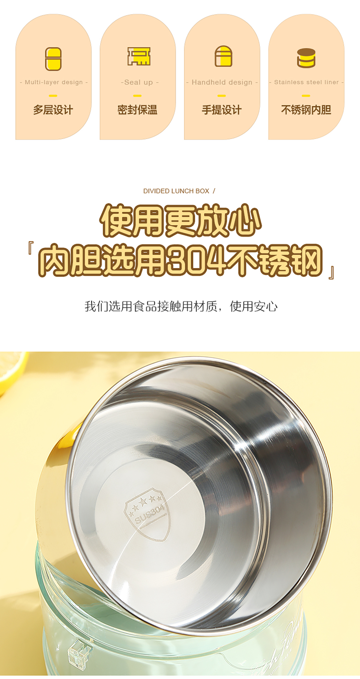 欣悅1.5L/2.1L不銹鋼手提雙層餐盒 2023年新色