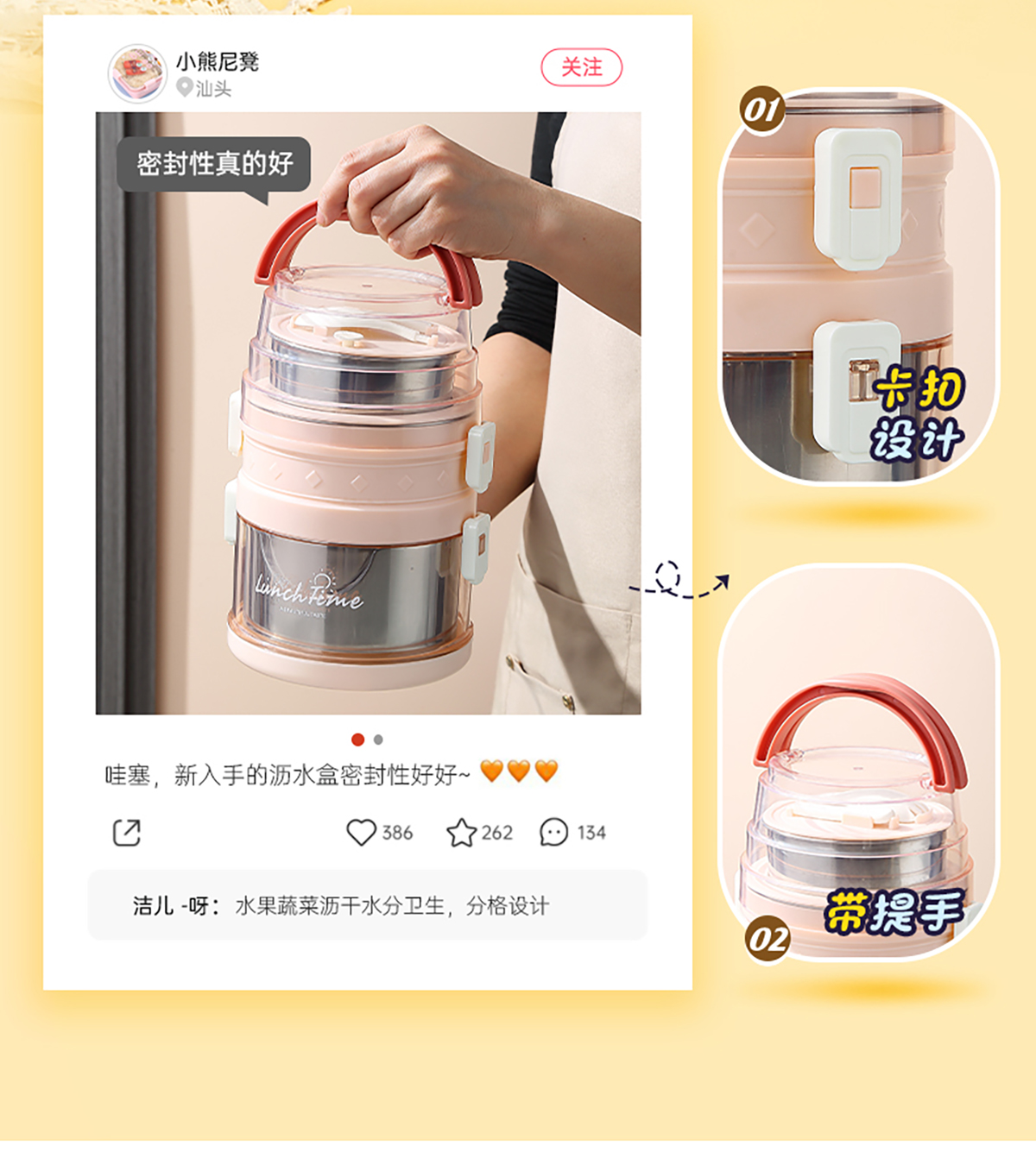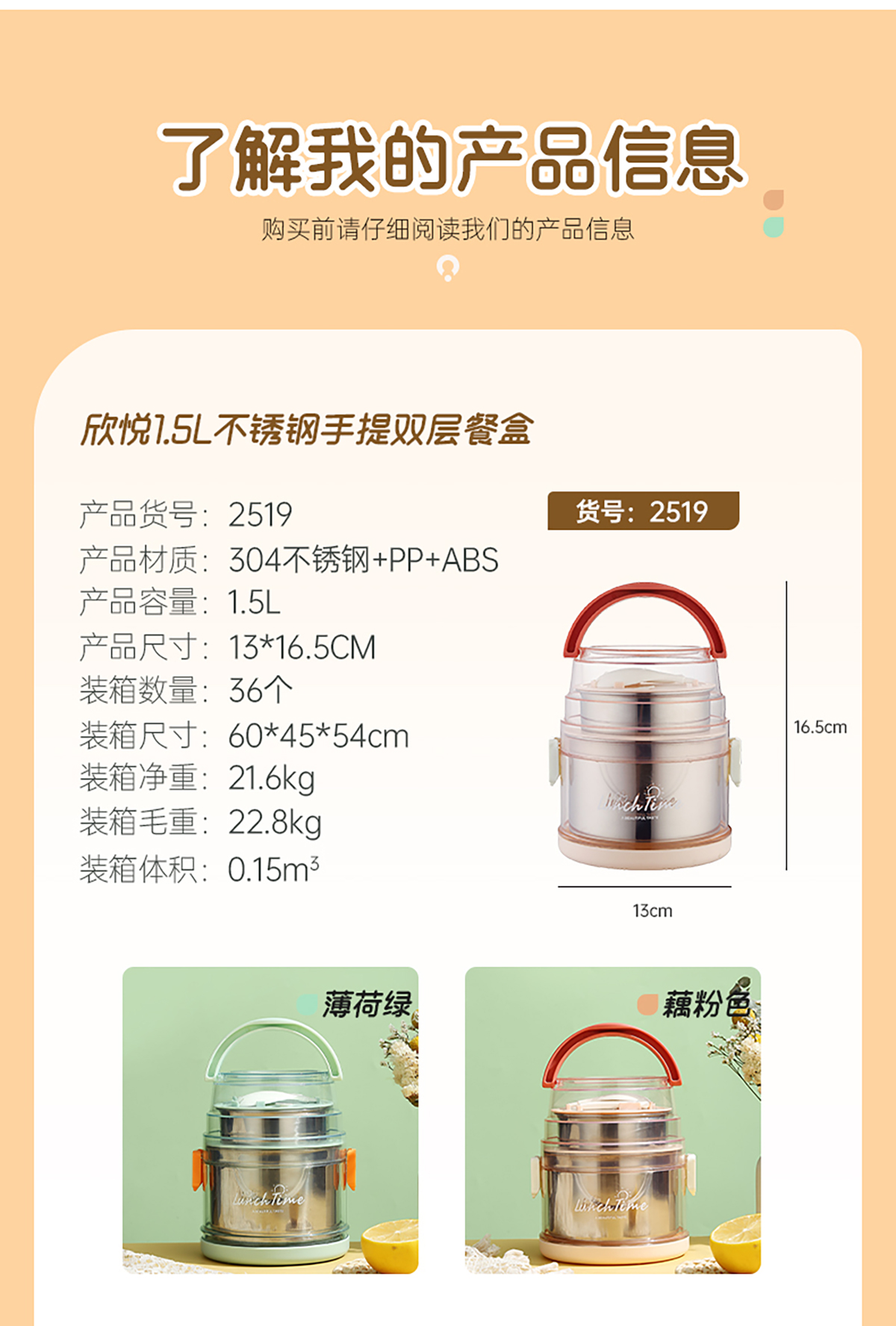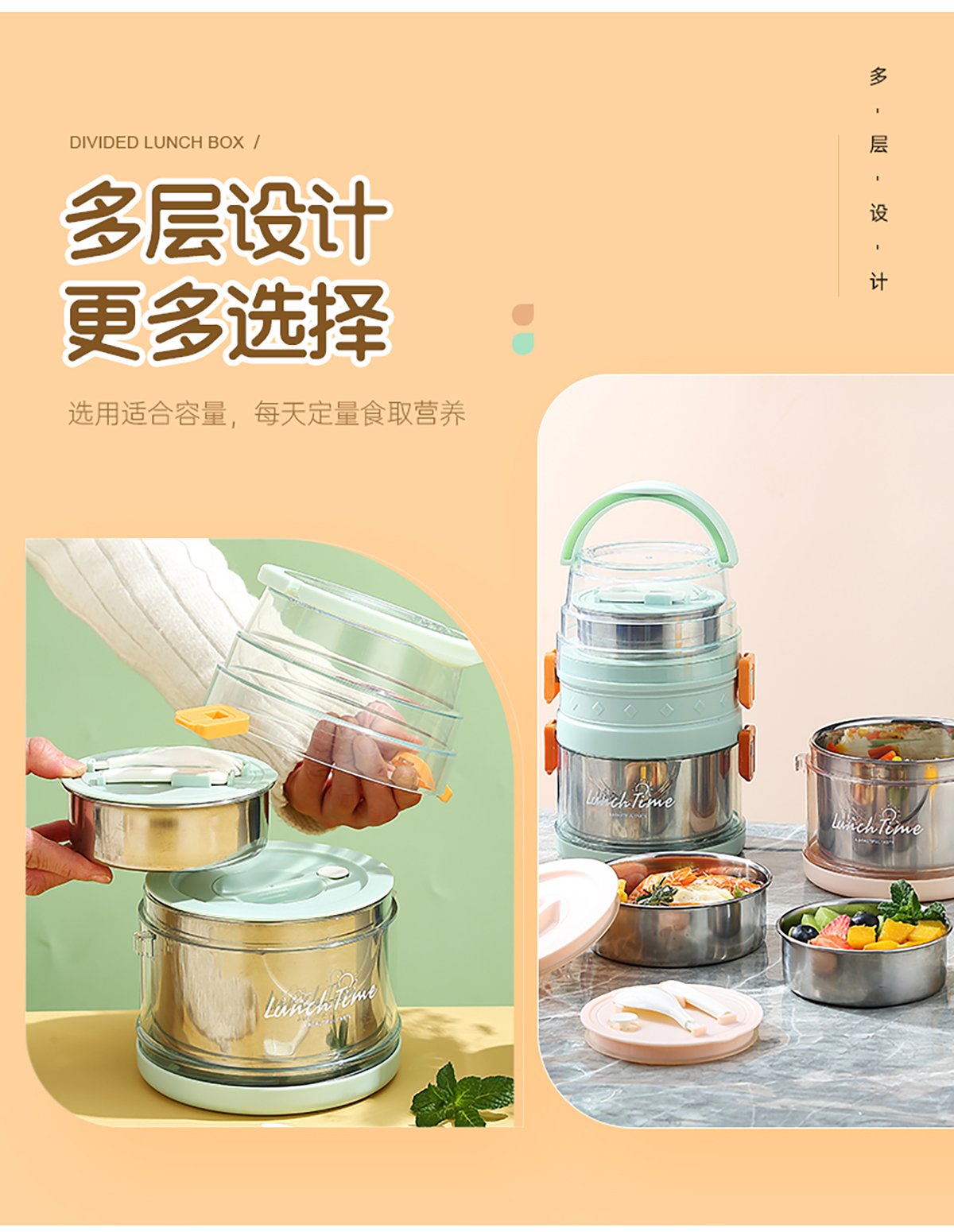 欣悅1.5L/2.1L不銹鋼手提雙層餐盒 2023年新色