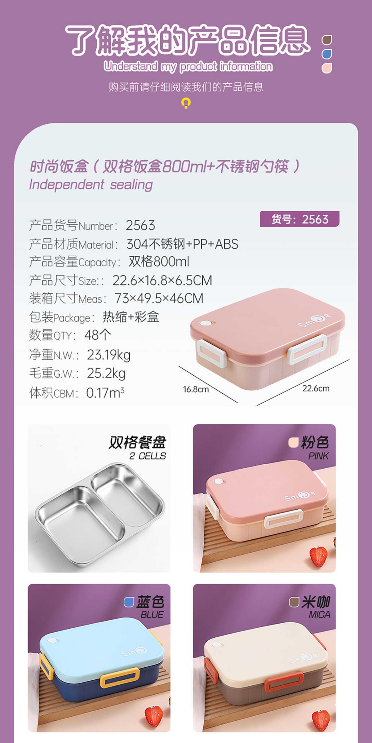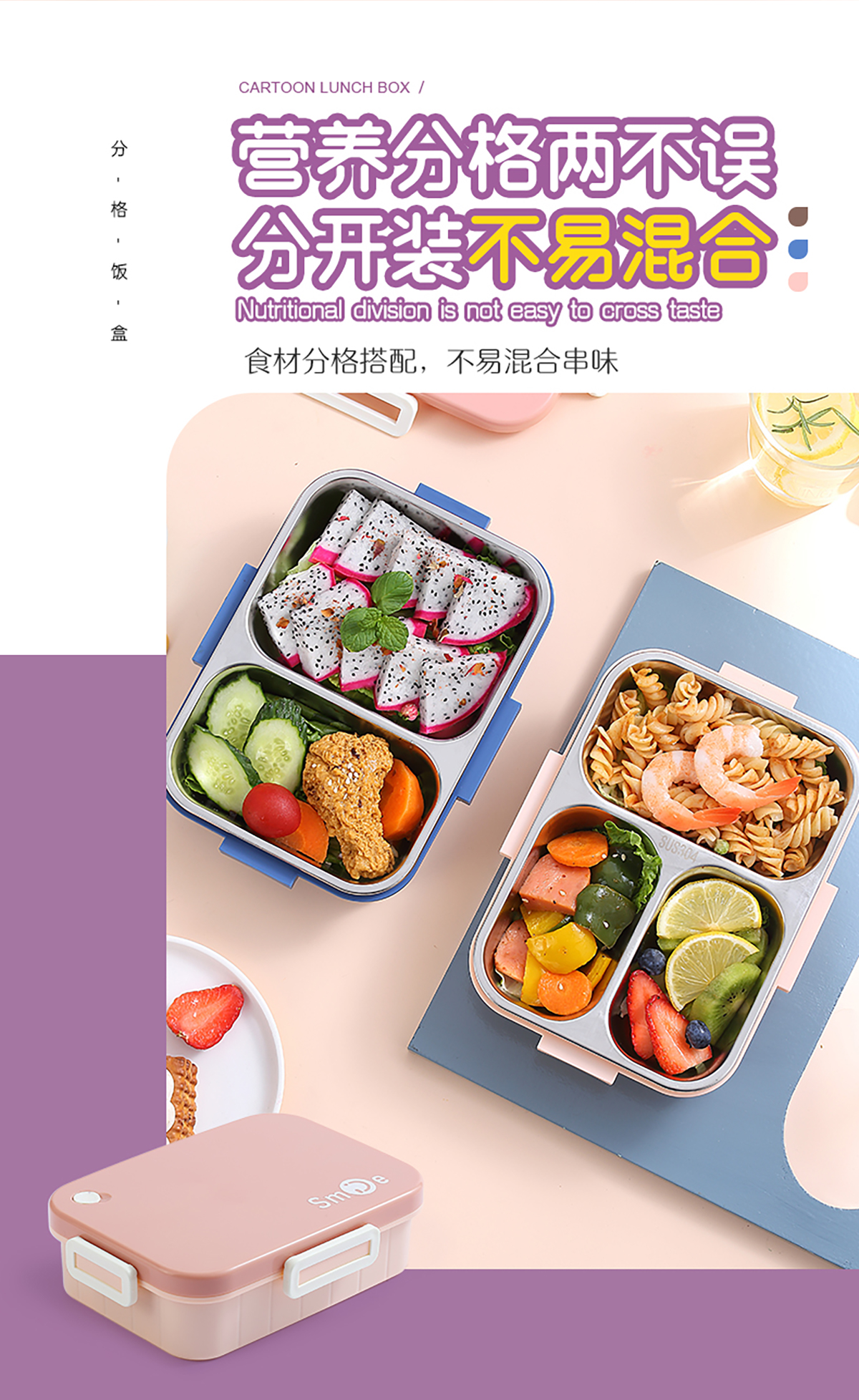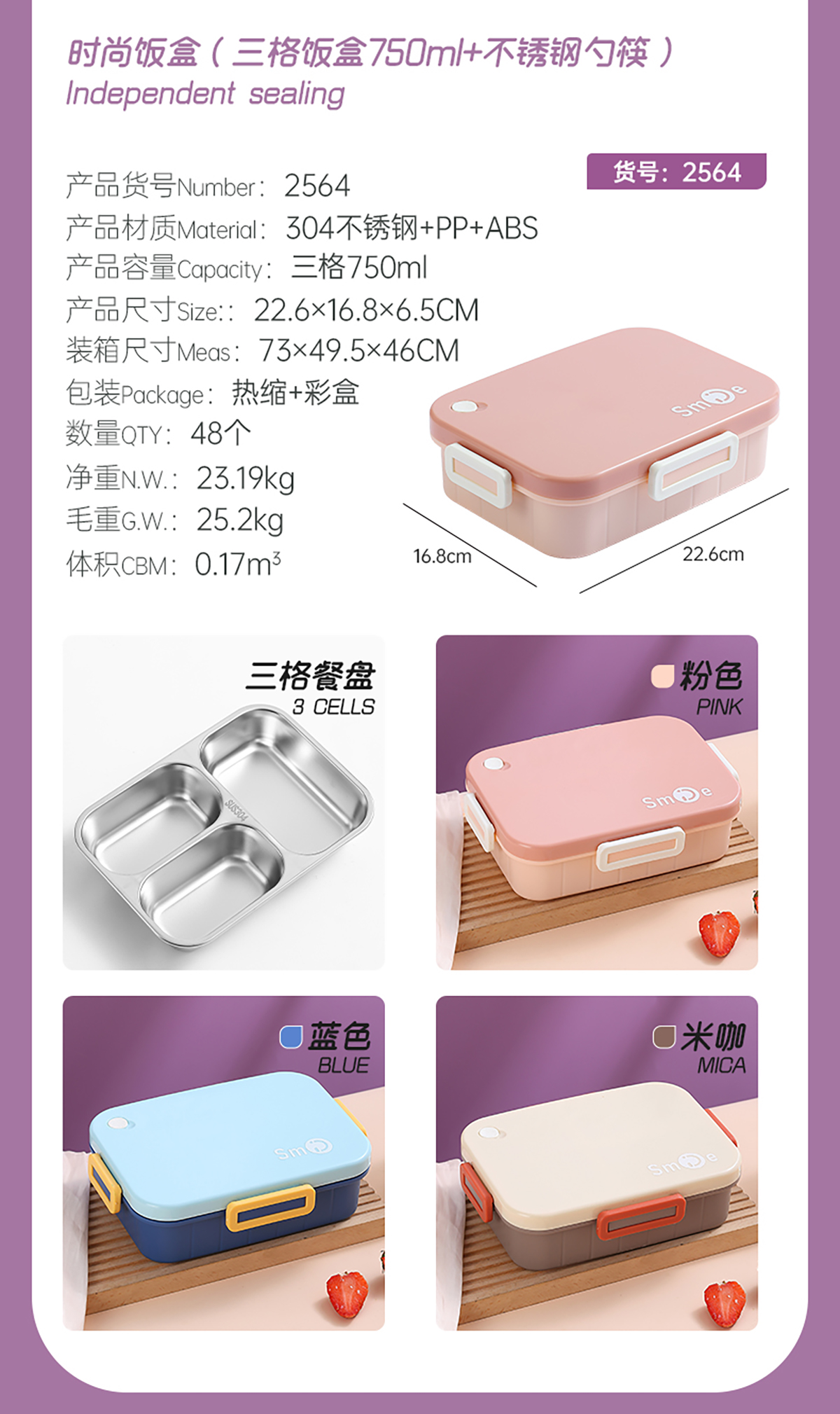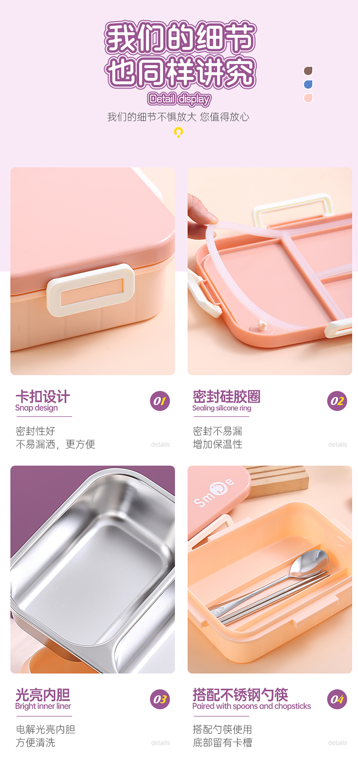 800ml/750ml獨(dú)立密封不銹鋼餐盒(時(shí)尚二格/三格+不銹鋼勺筷)