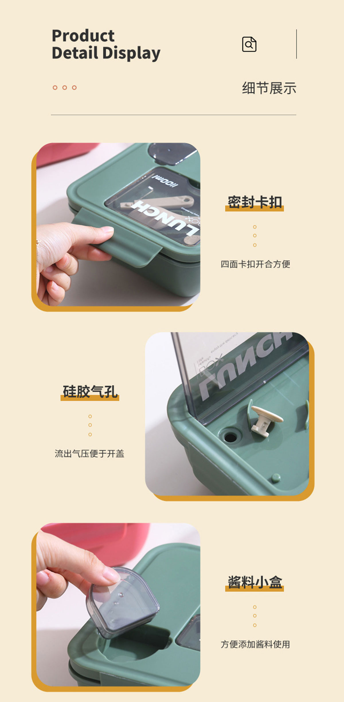 正方形醬料盒三格飯盒1100ml