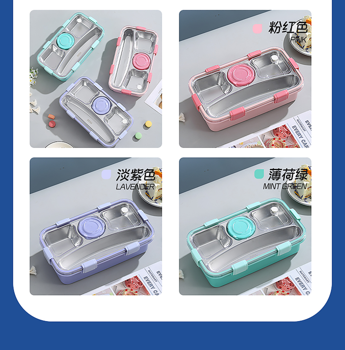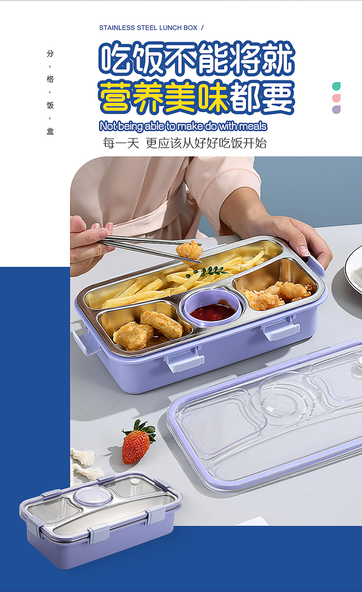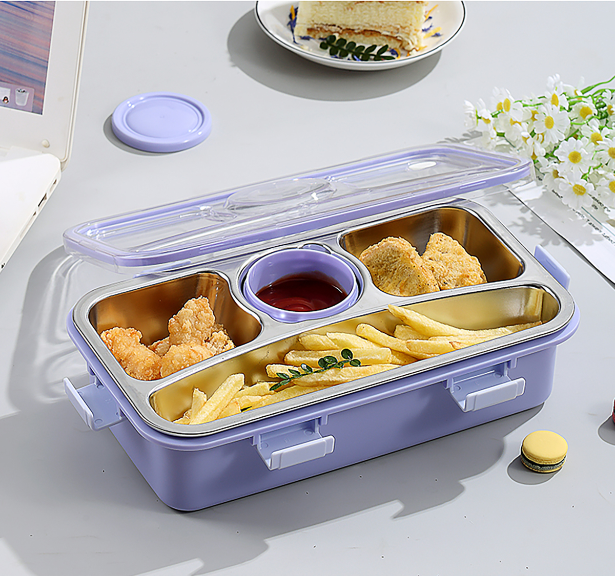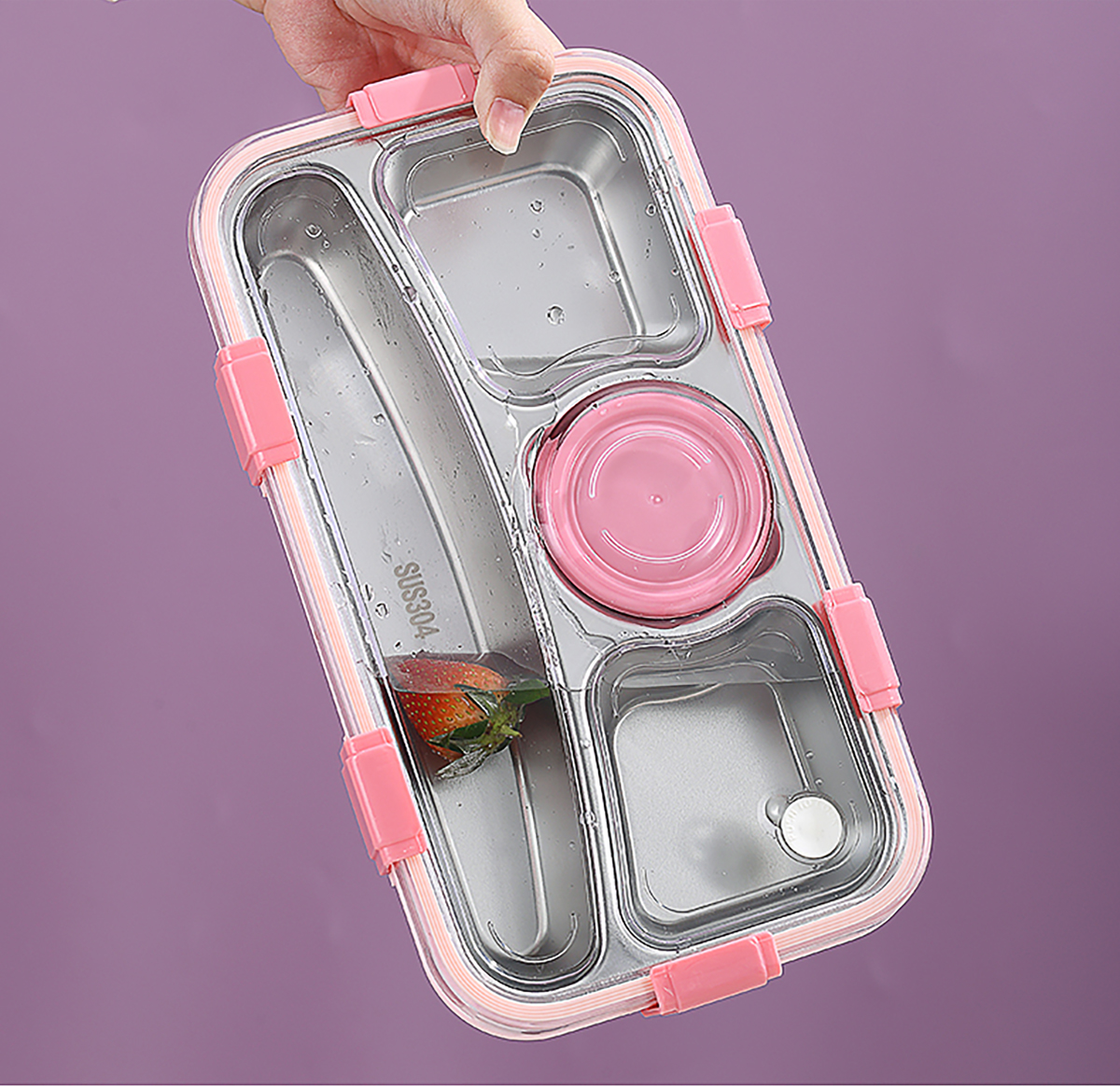 輕食不銹鋼餐盒四格帶小碗650ml+70ml