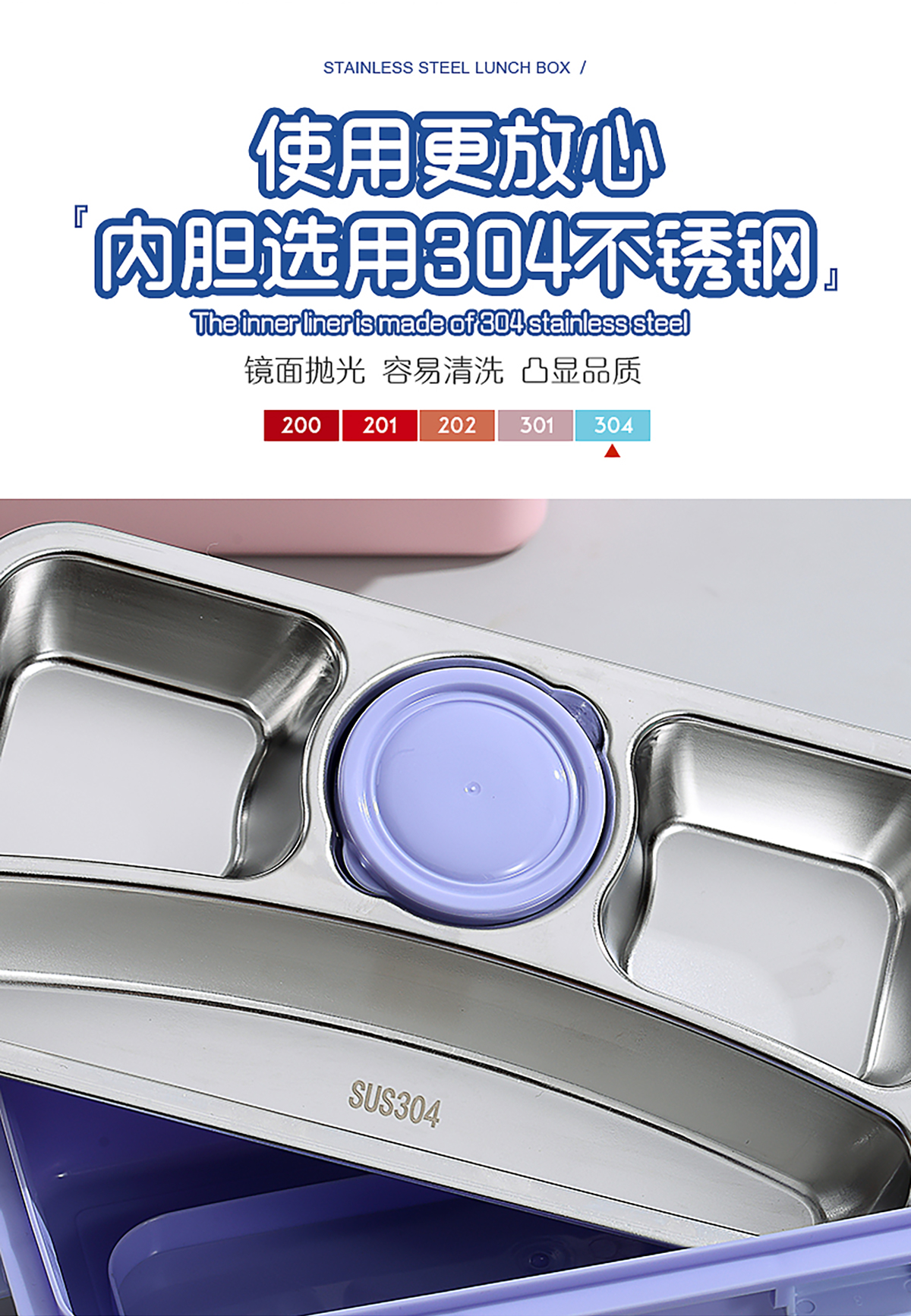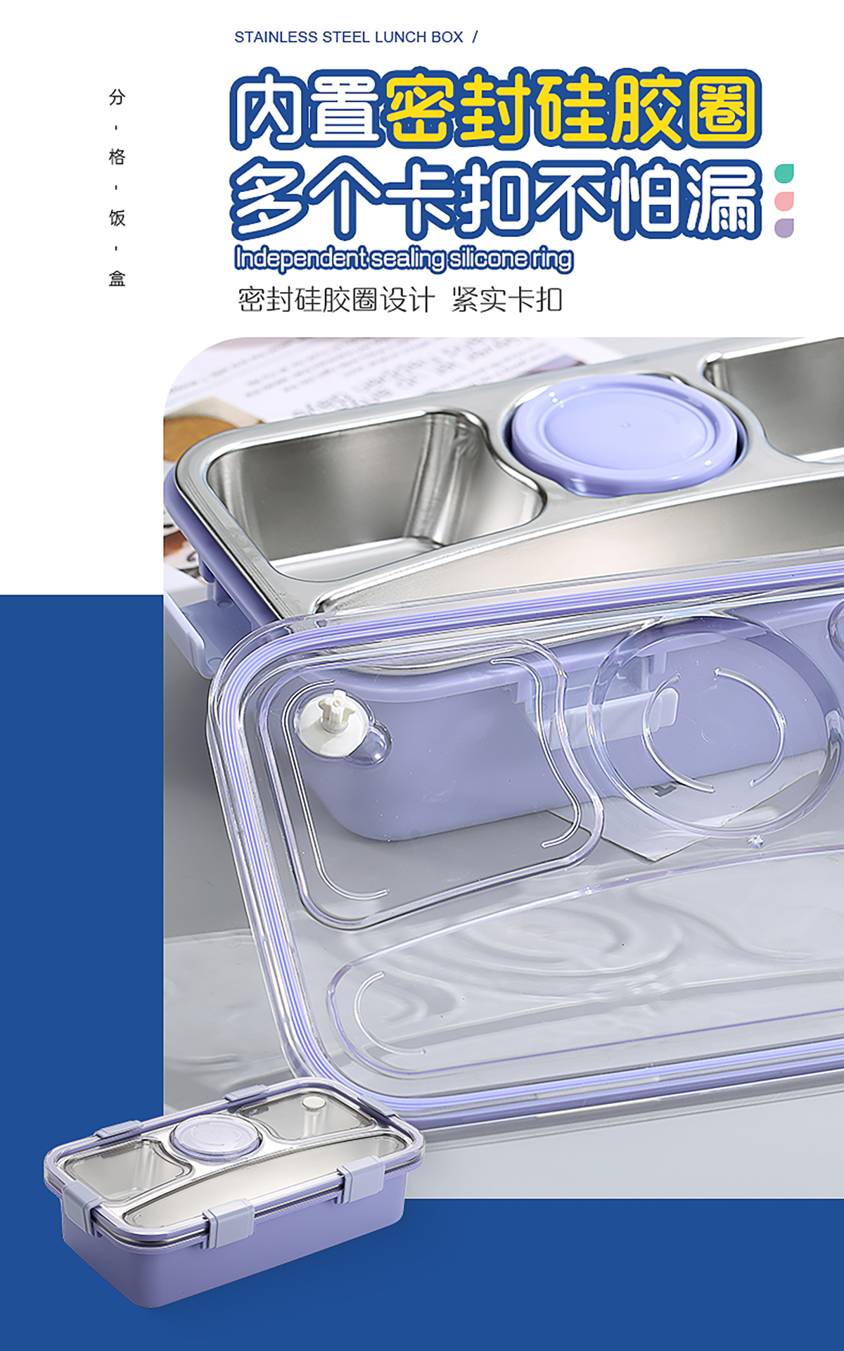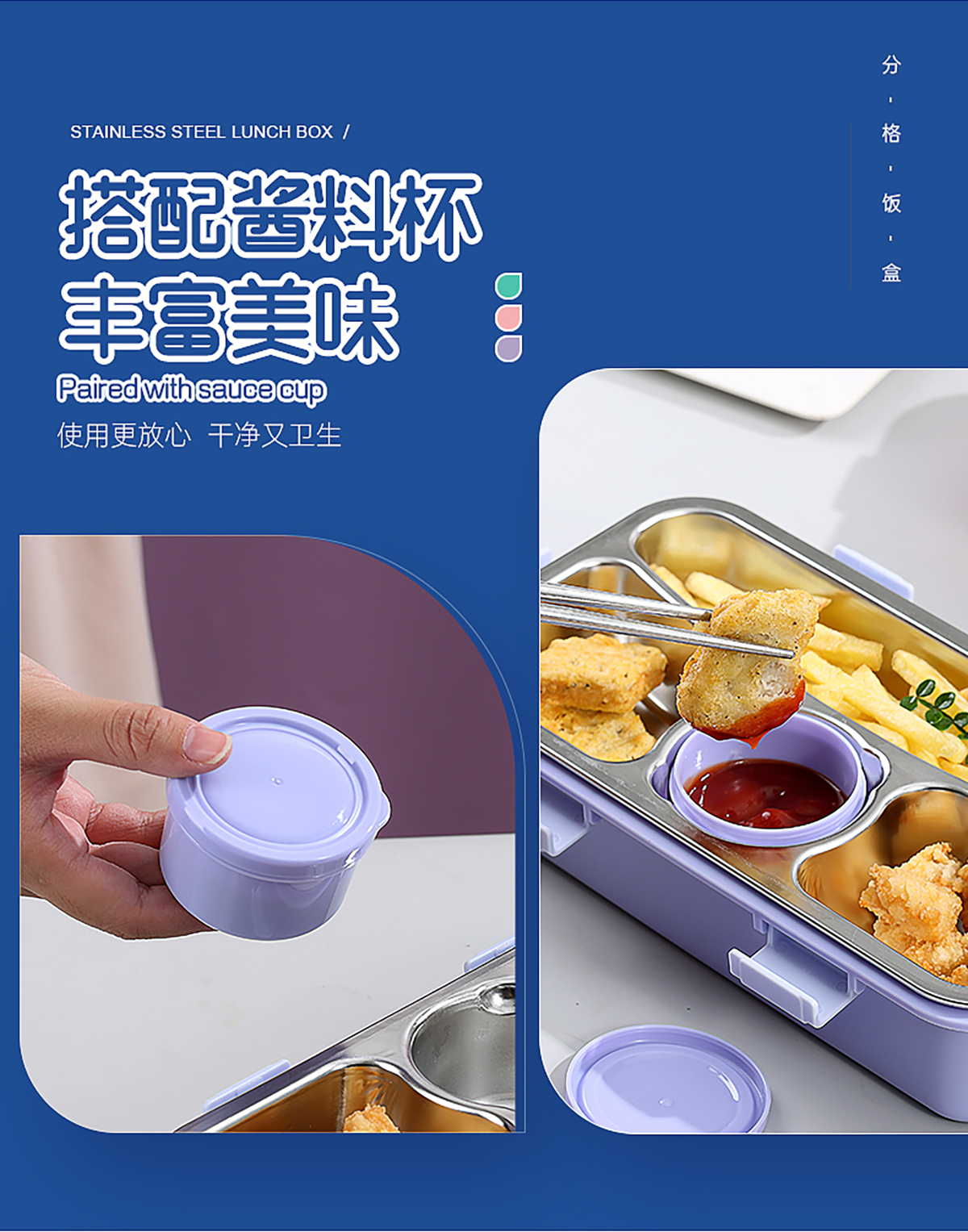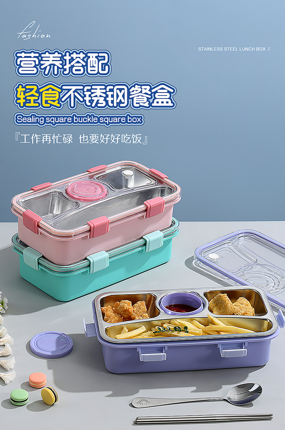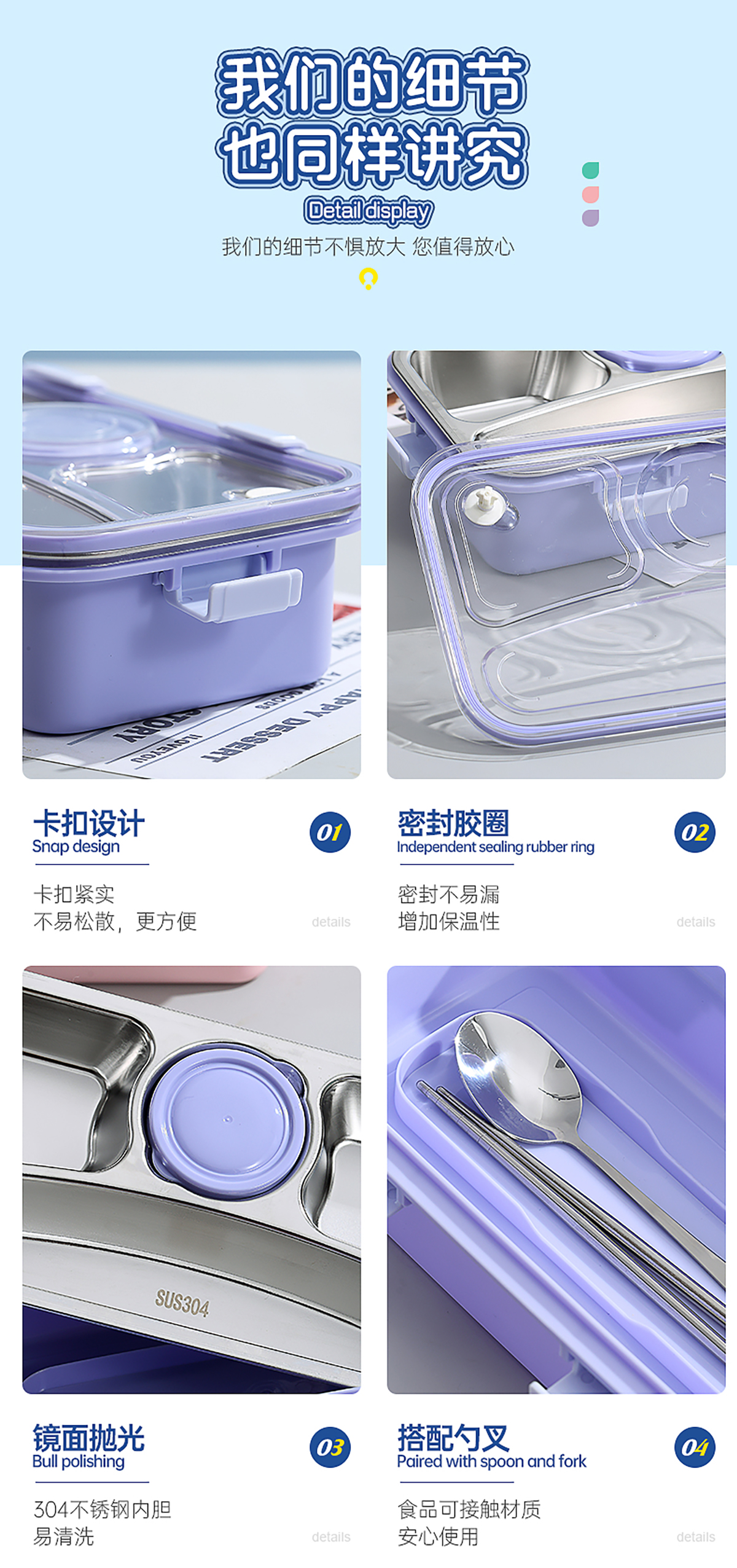 輕食不銹鋼餐盒四格帶小碗650ml+70ml
