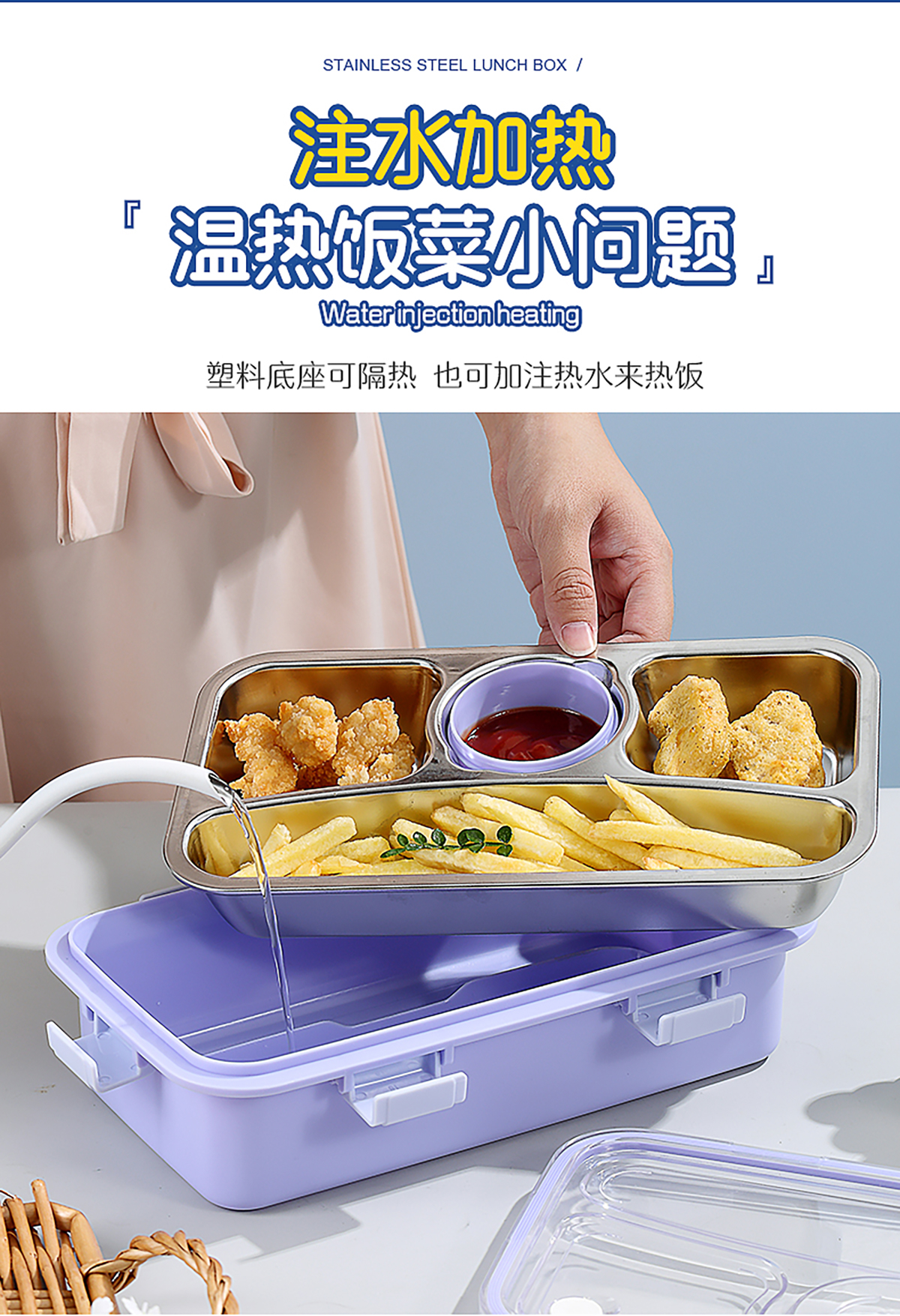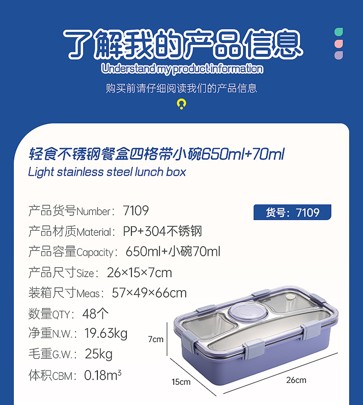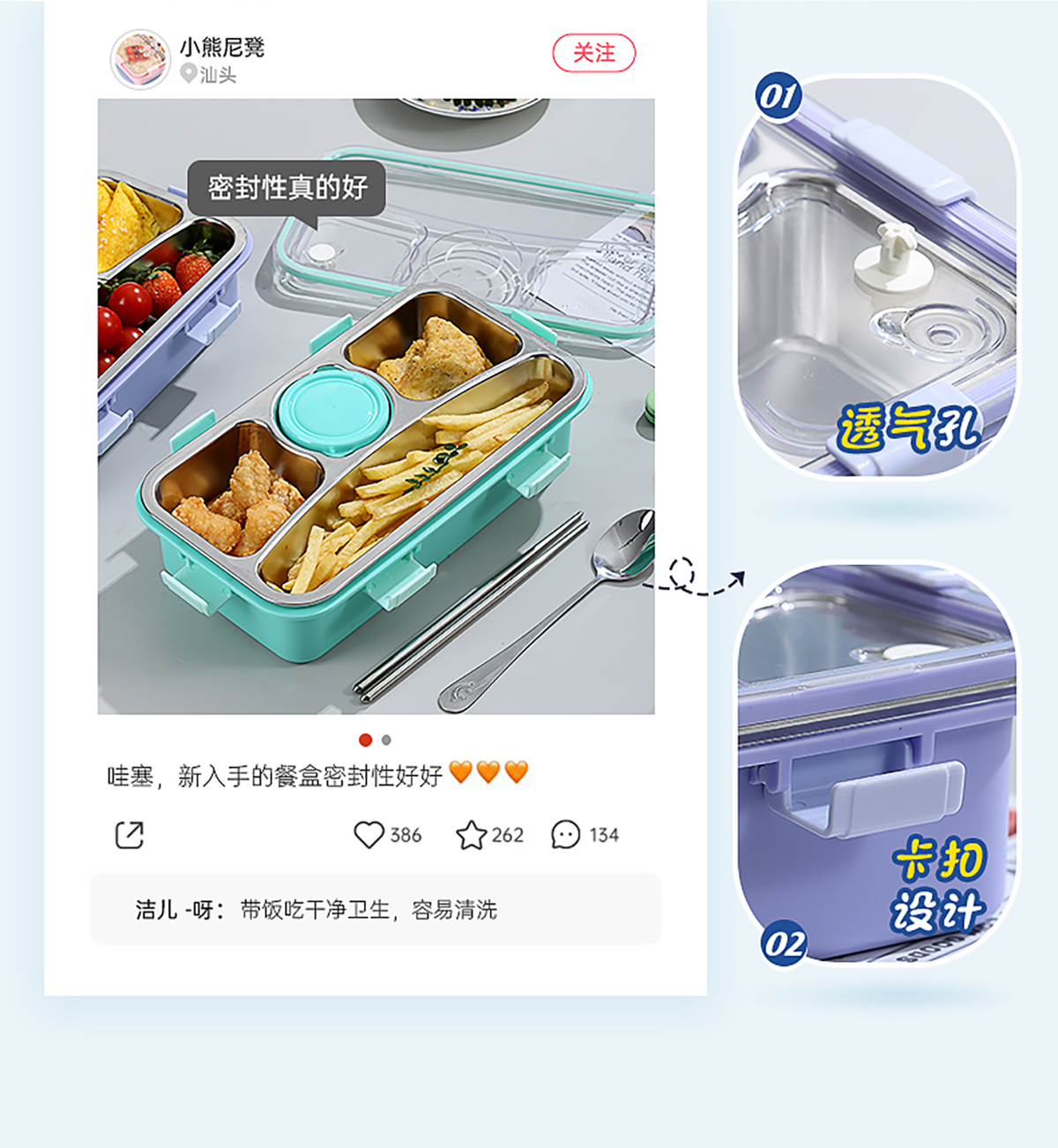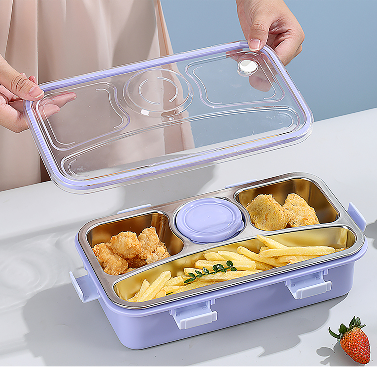 輕食不銹鋼餐盒四格帶小碗650ml+70ml