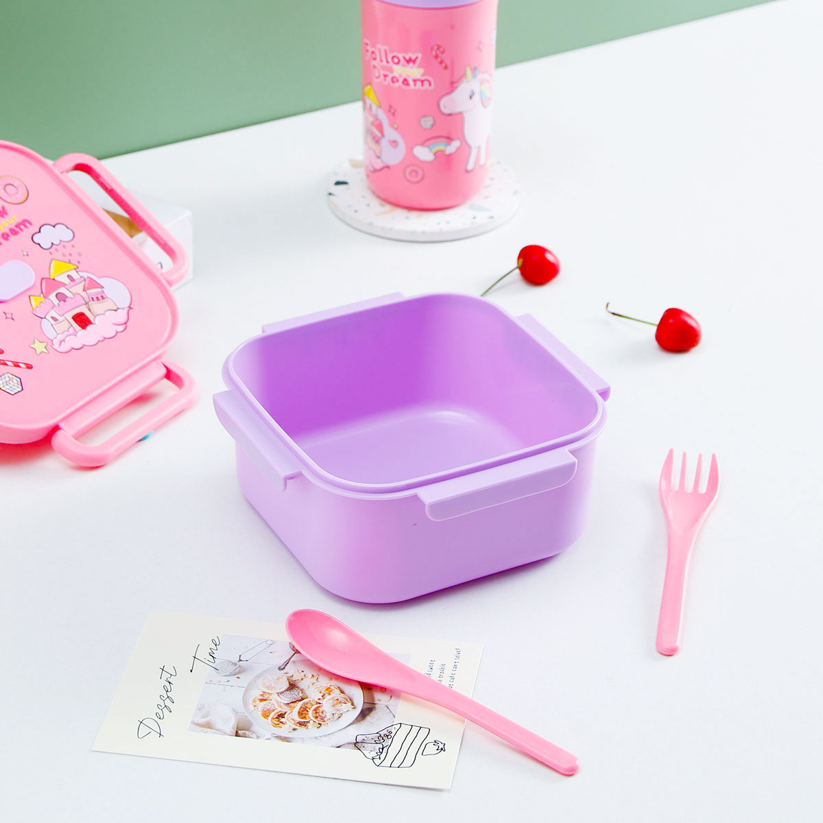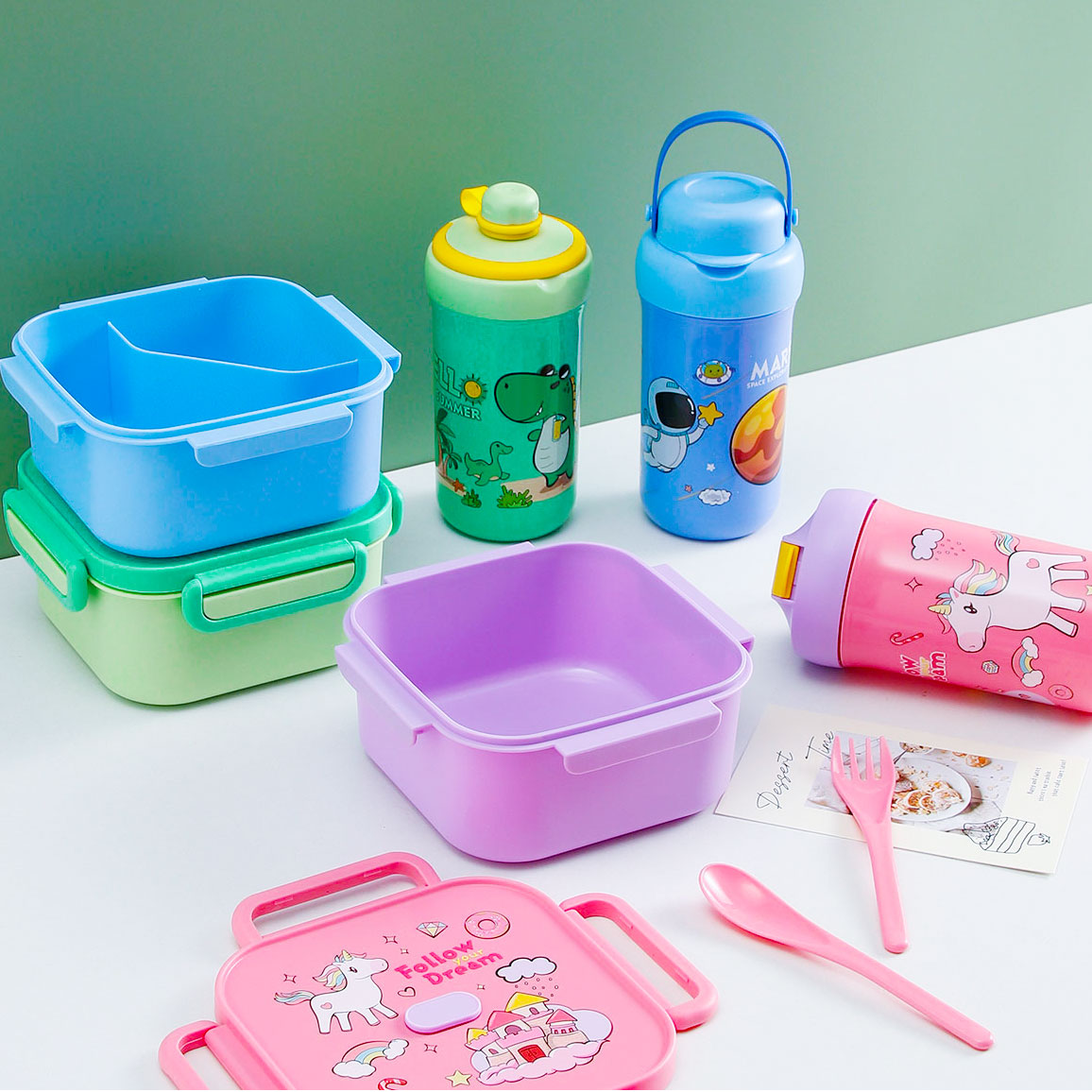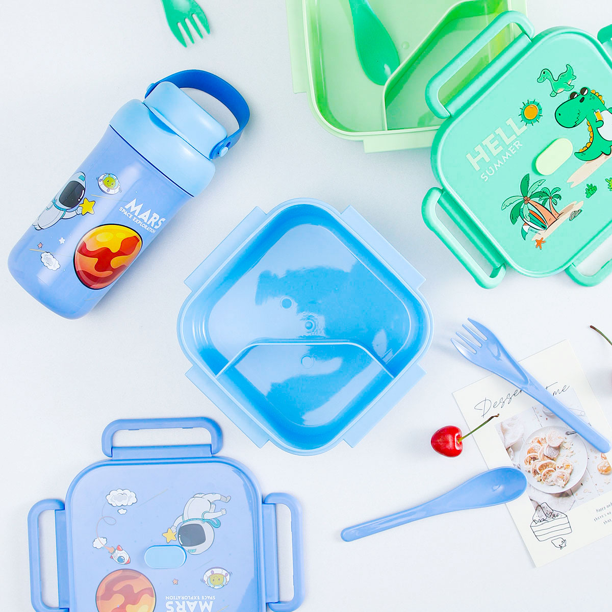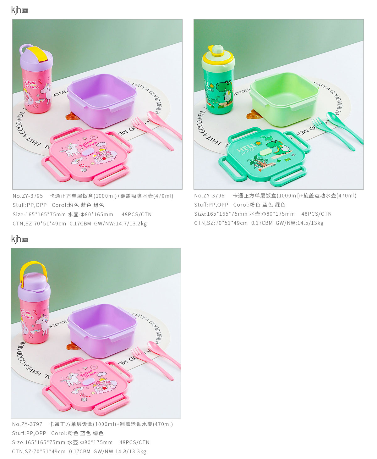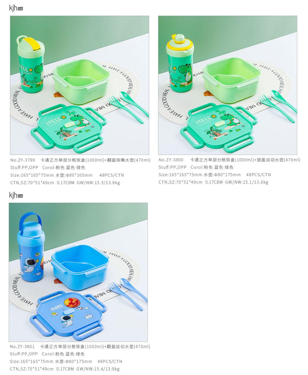 卡通正方單層/分格飯盒+翻蓋吸嘴/旋蓋運動/翻蓋運動水壺