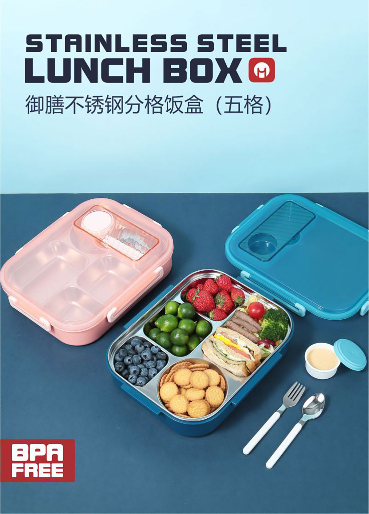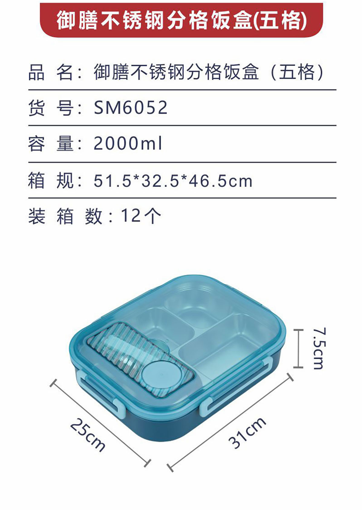 御膳不銹鋼分格飯盒2L