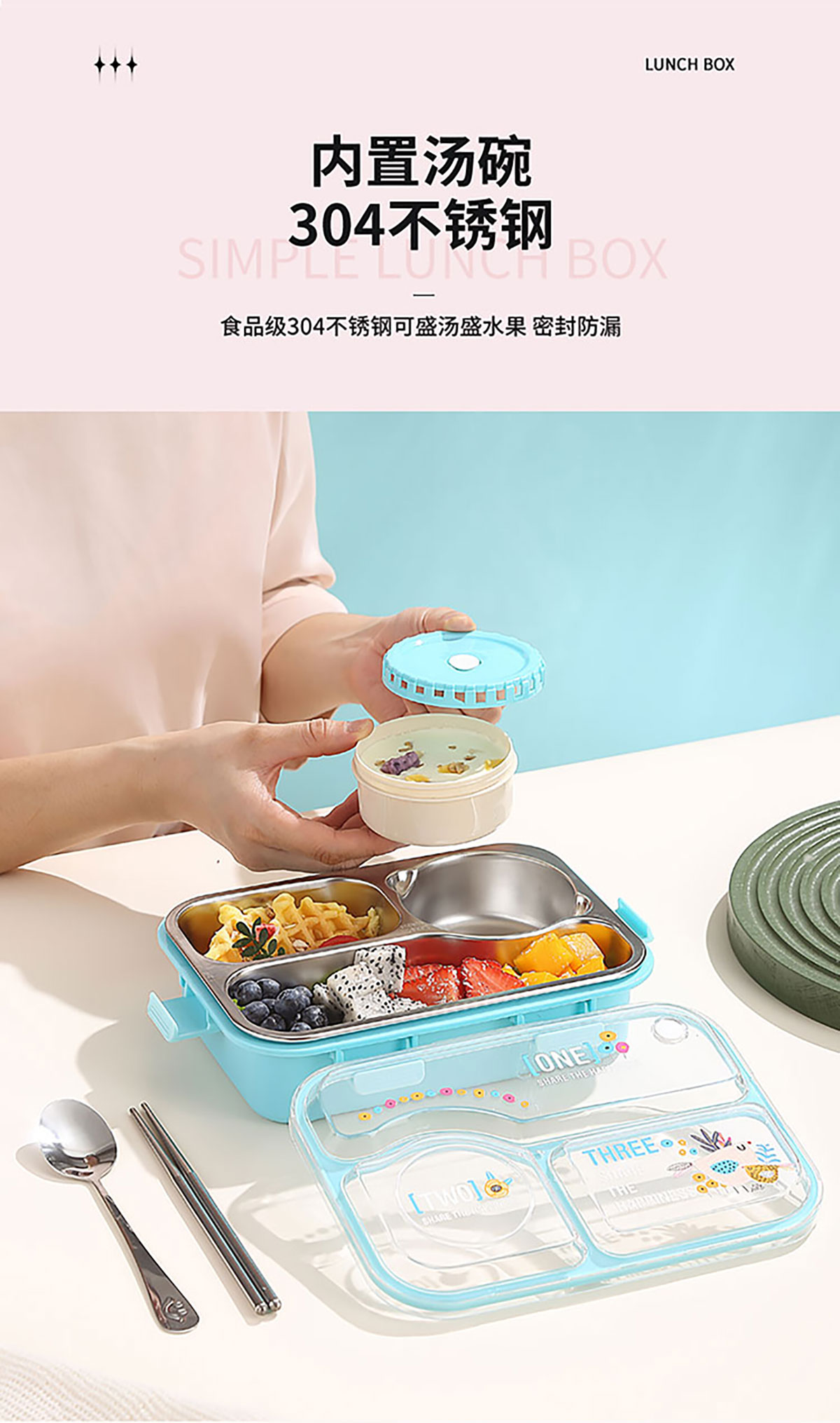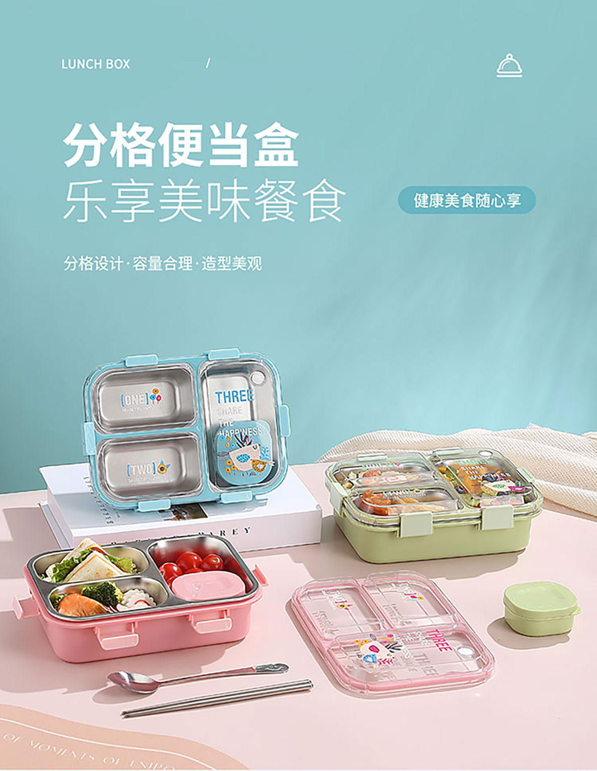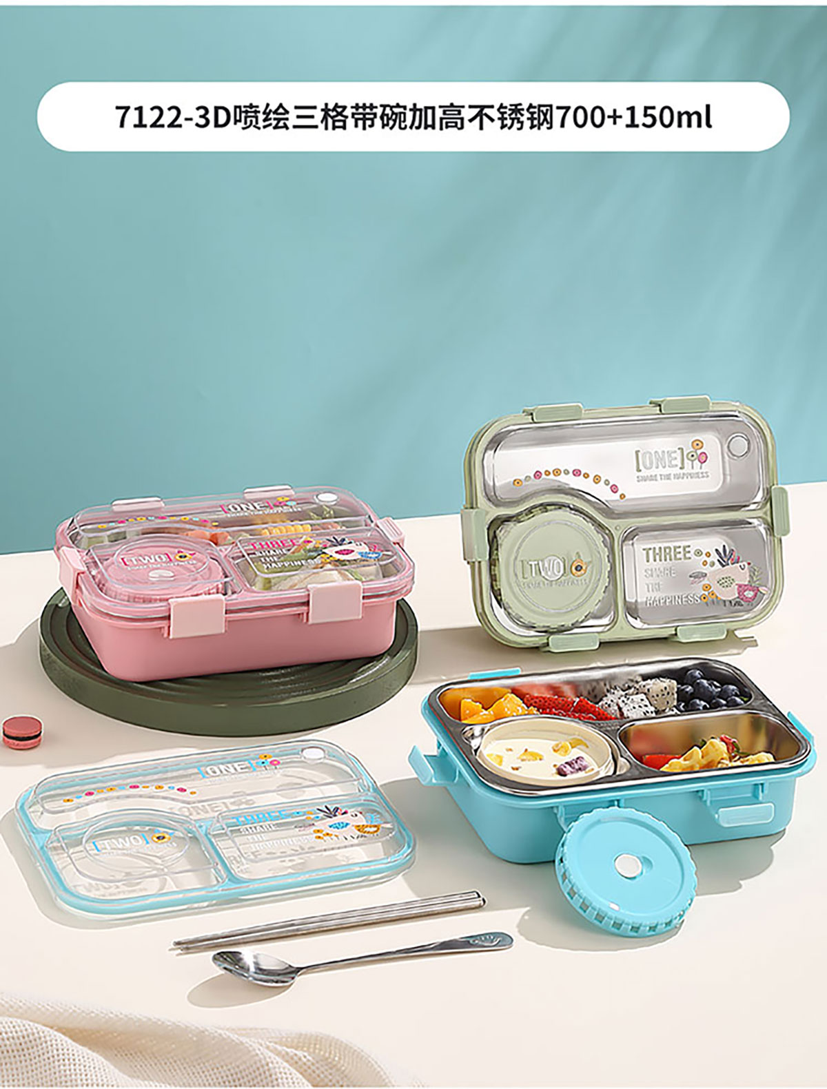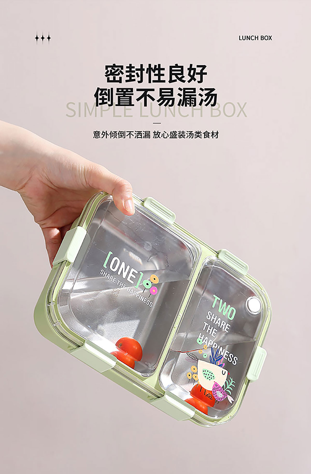 3D噴繪二格/三格帶醬盒/三格帶碗不串味加高餐盒 長(zhǎng)方形/正方形