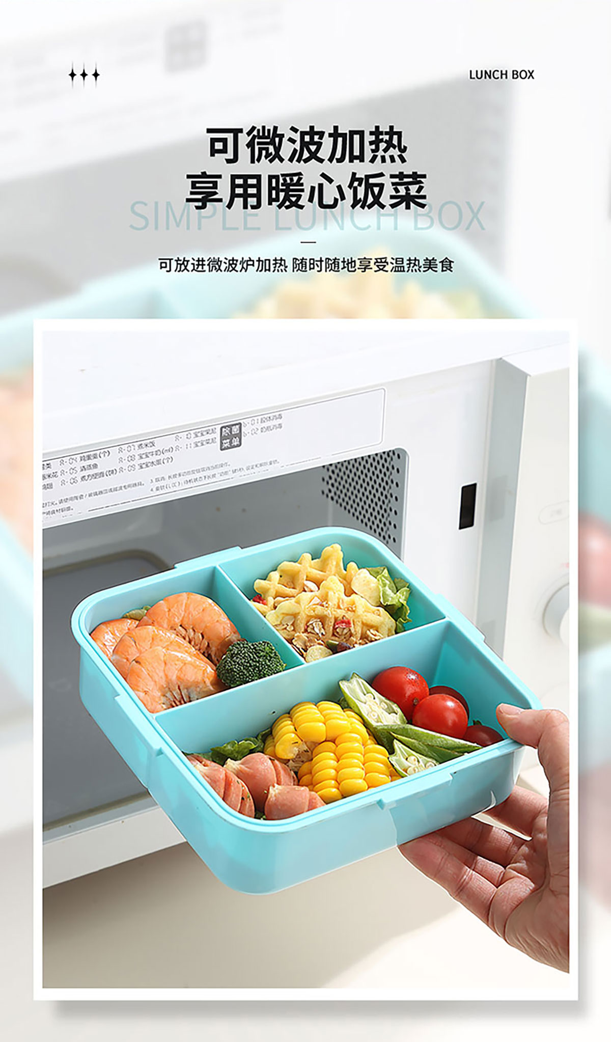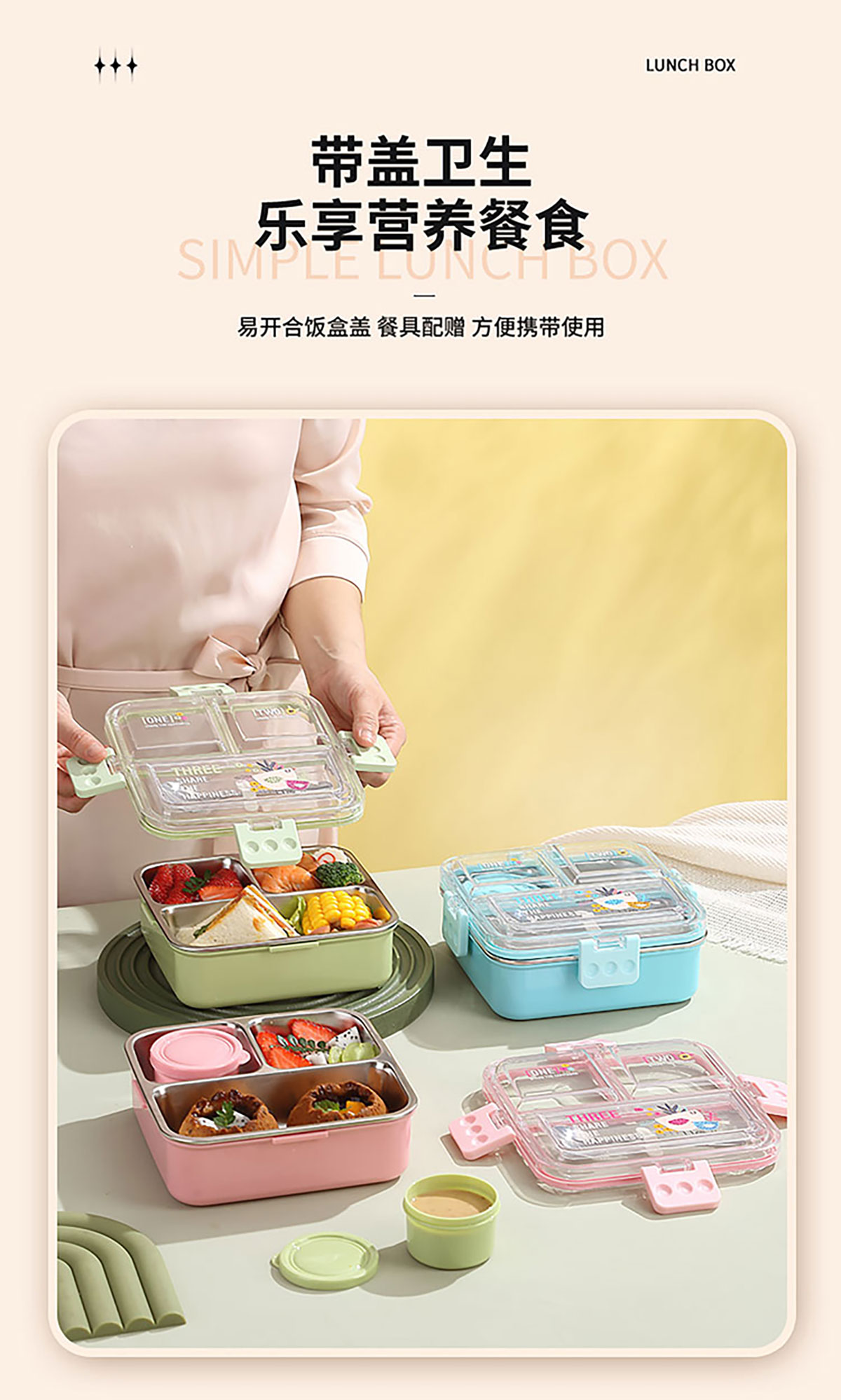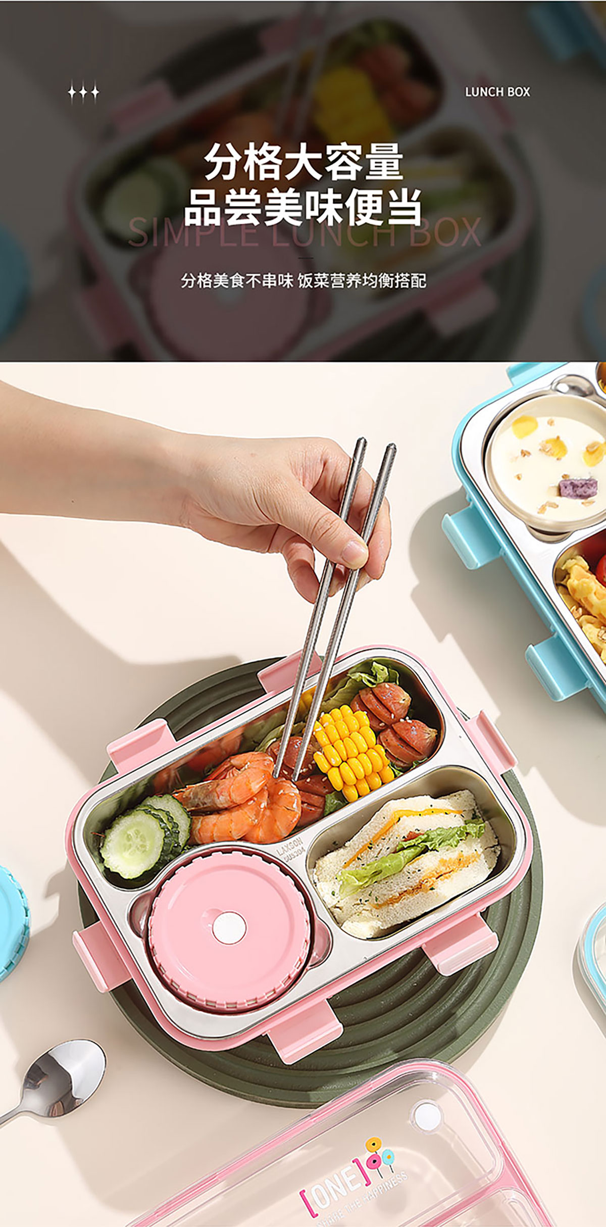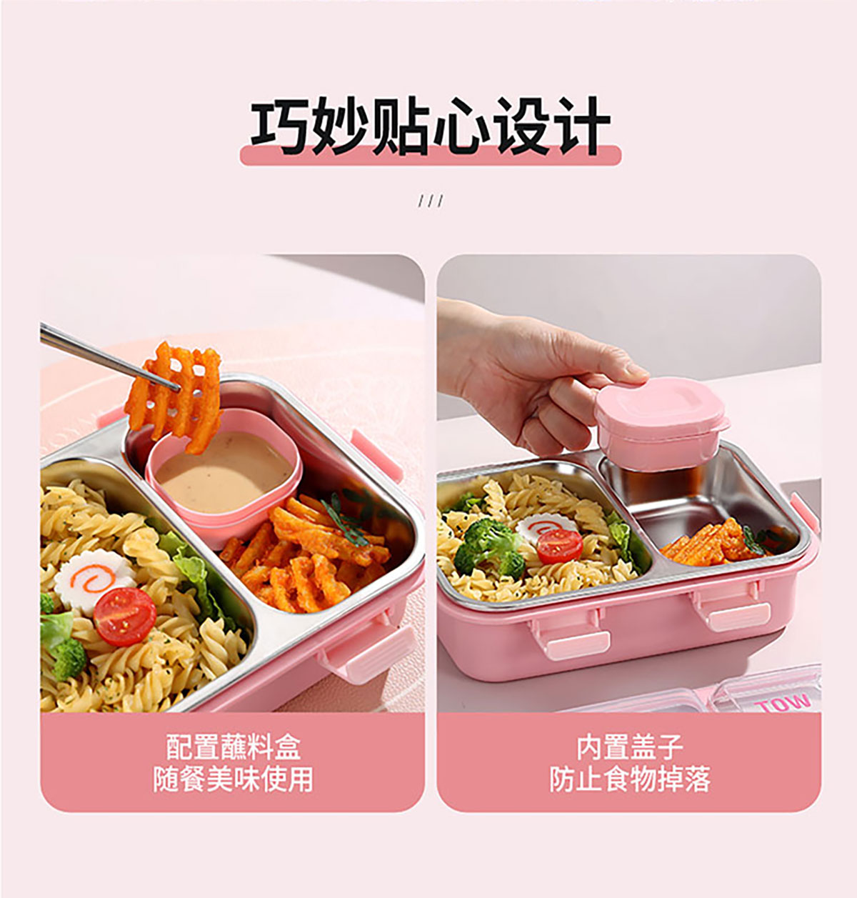 3D噴繪二格/三格帶醬盒/三格帶碗不串味加高餐盒 長(zhǎng)方形/正方形