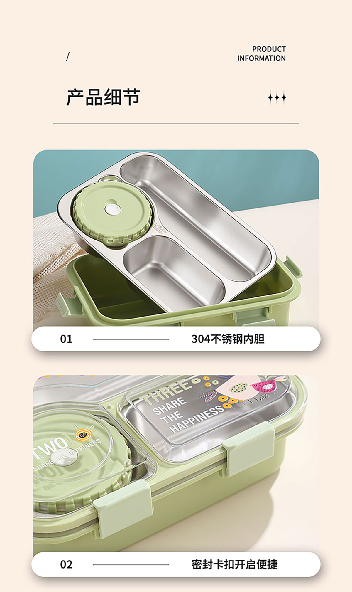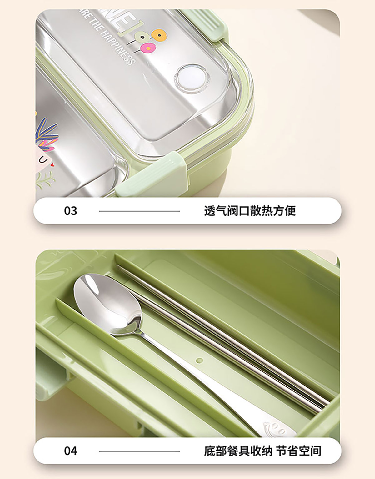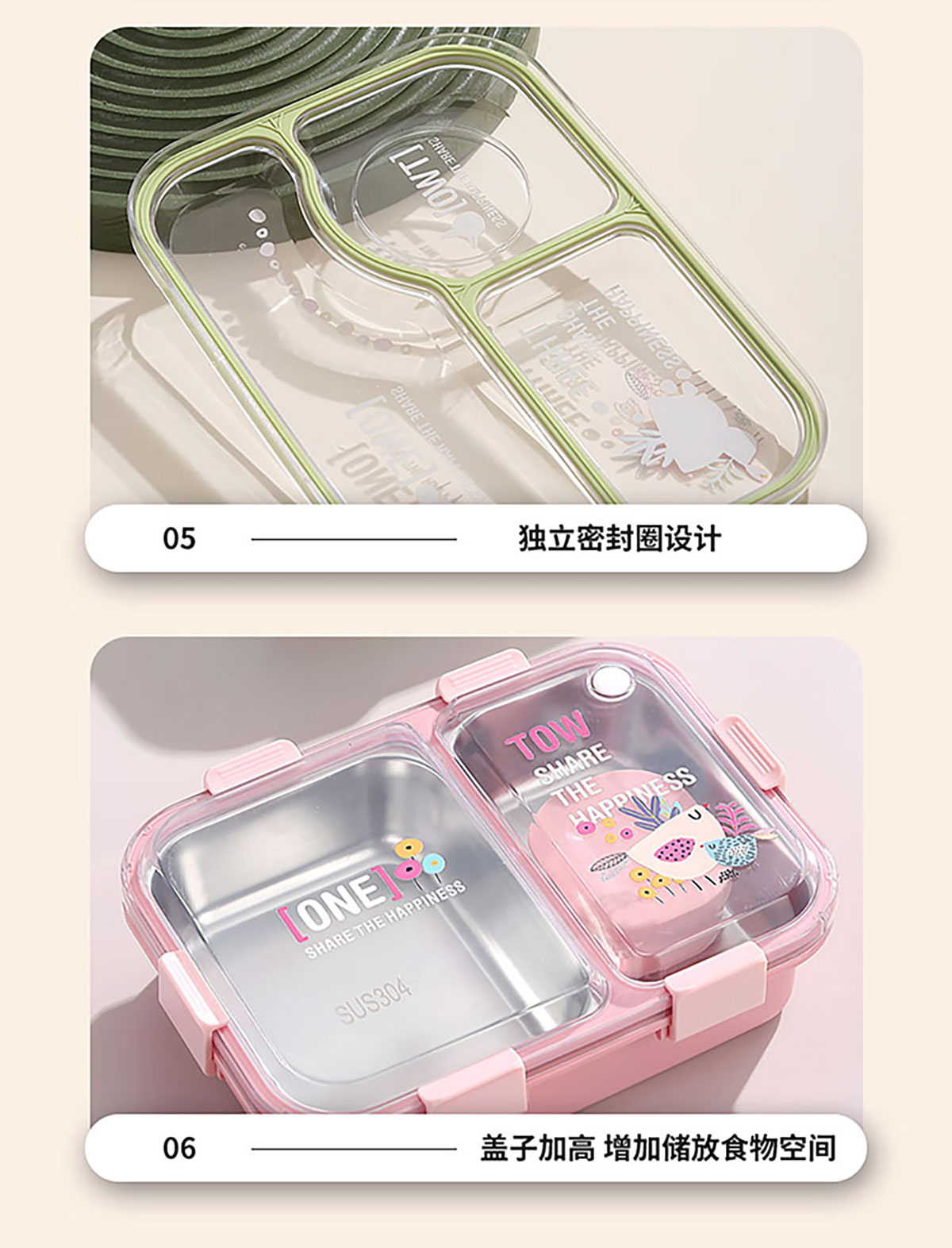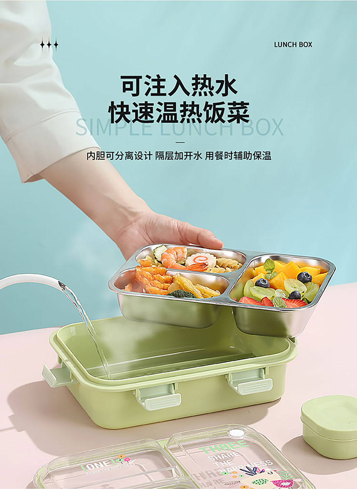 3D噴繪二格/三格帶醬盒/三格帶碗不串味加高餐盒 長(zhǎng)方形/正方形