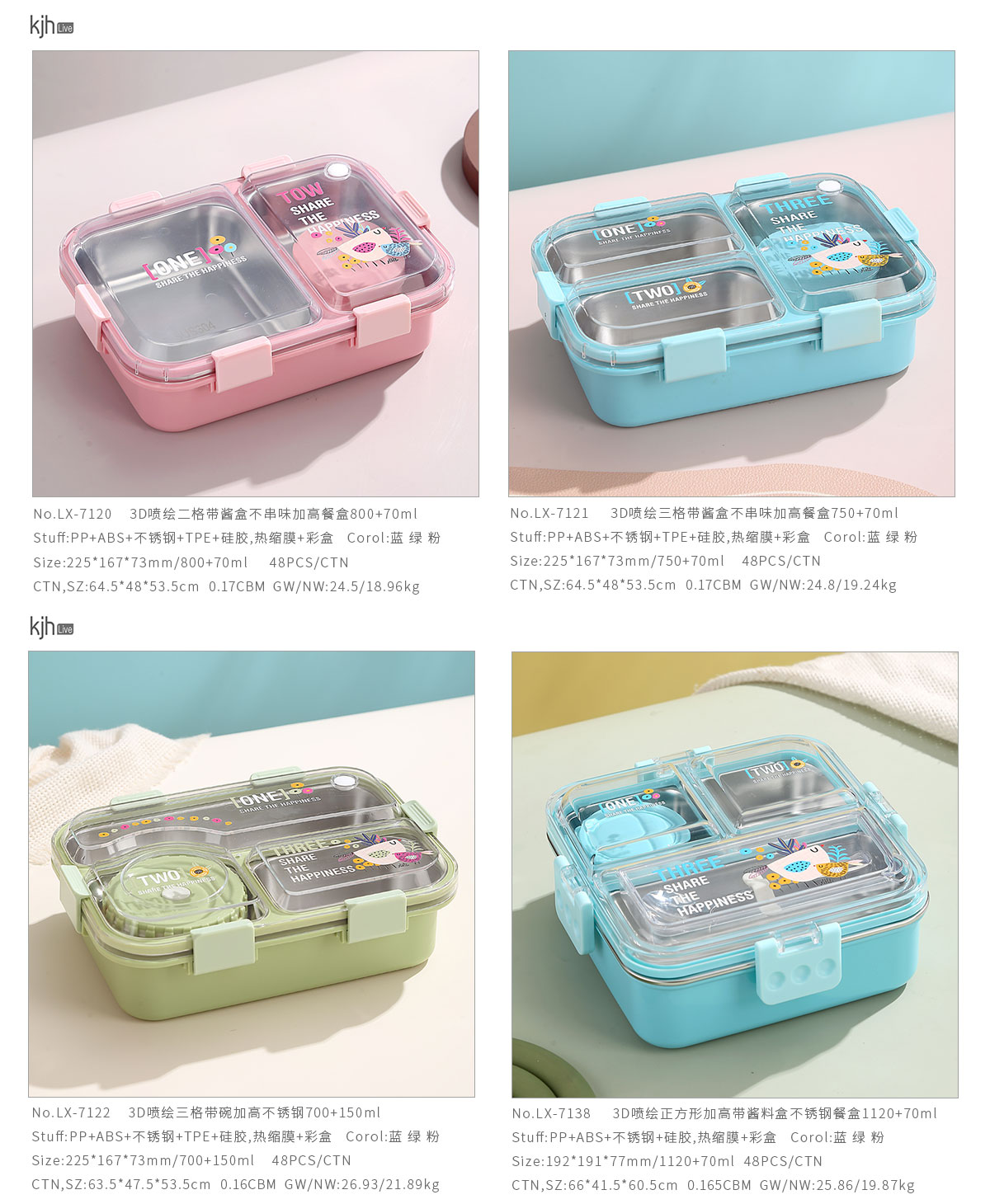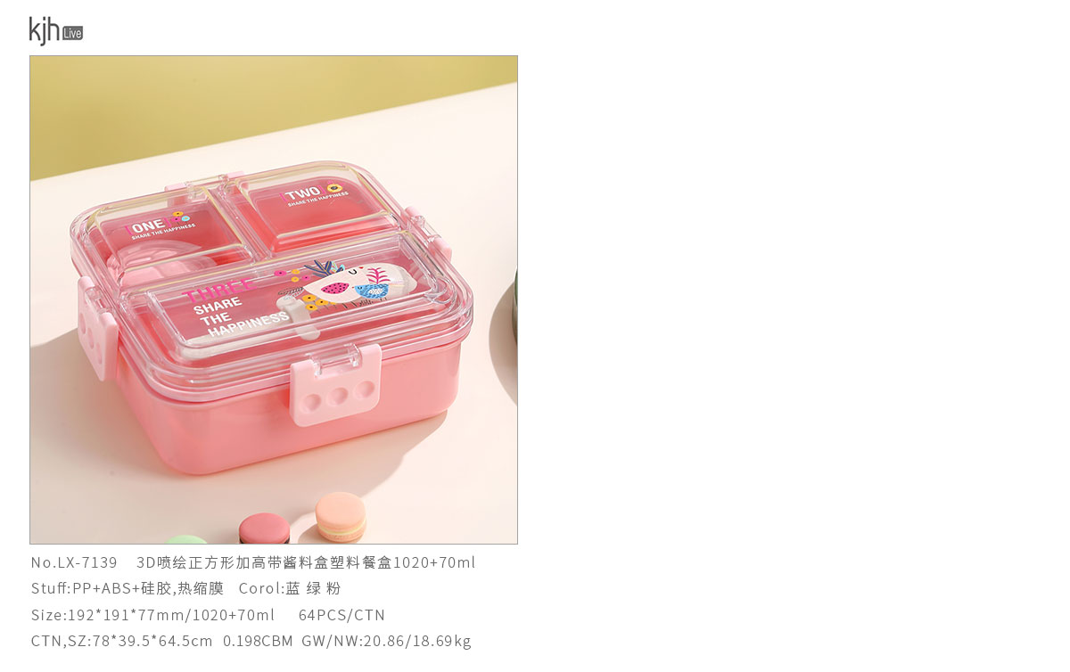 Size: LX-7120(長(zhǎng)方形二格帶醬盒):225*167*73mm/800+70ml