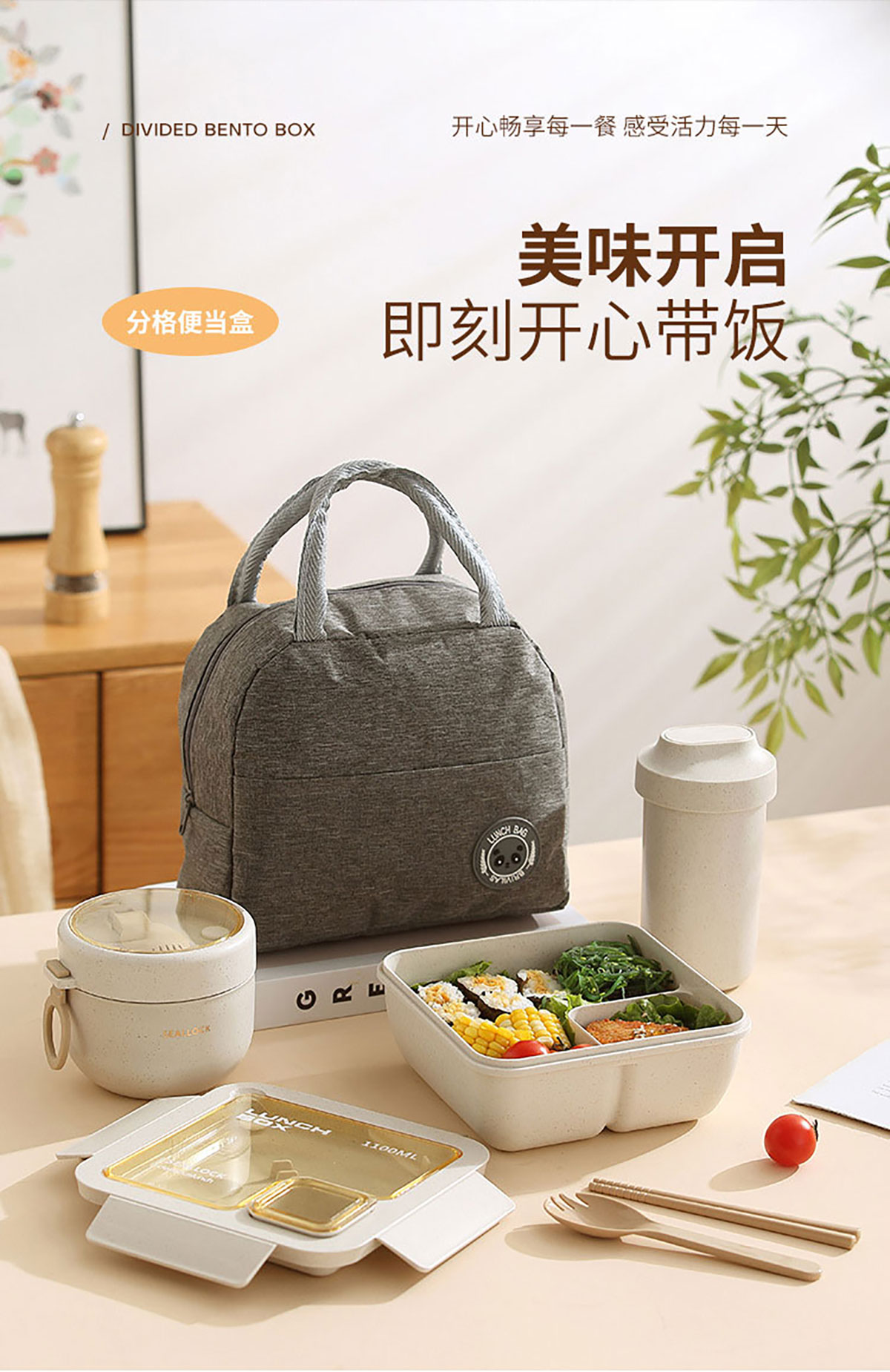 簡麥便當(dāng)盒飯盒/套裝(飯盒+水杯/飯盒+水杯+灰色餐袋/飯盒+燕麥杯+灰色餐袋)