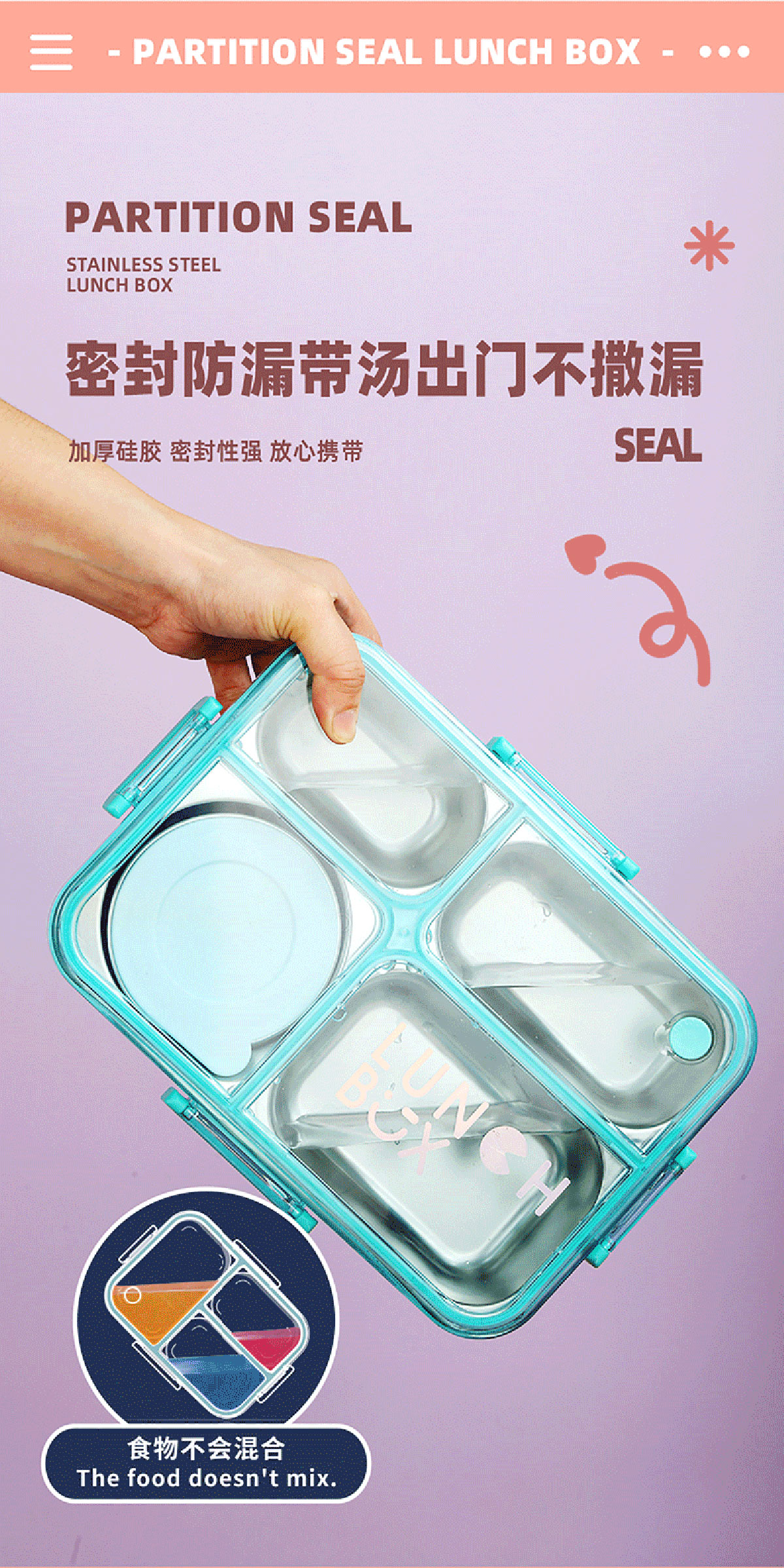 AQX-2622:262*193*65mm/不銹鋼4格900ml+醬料杯80ml