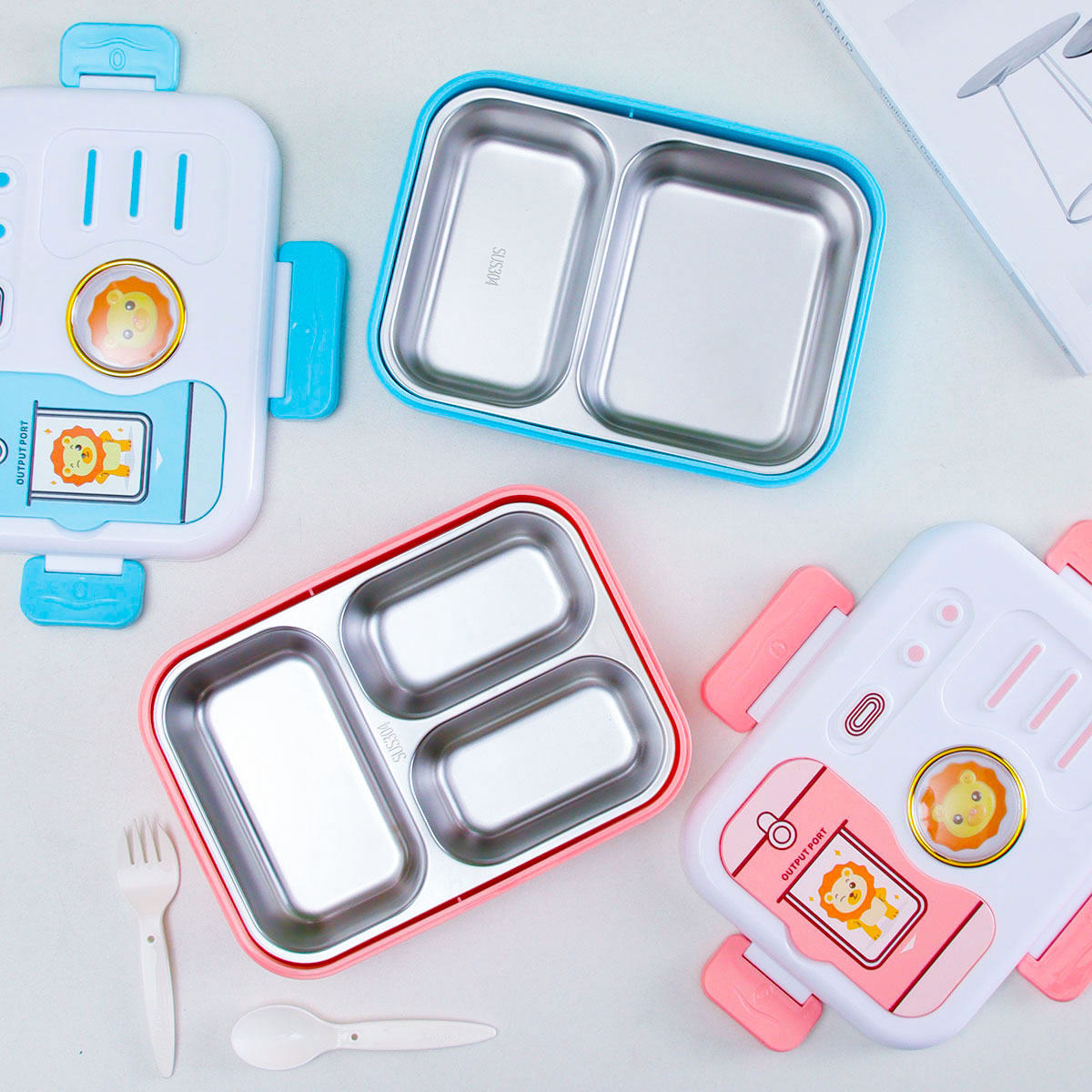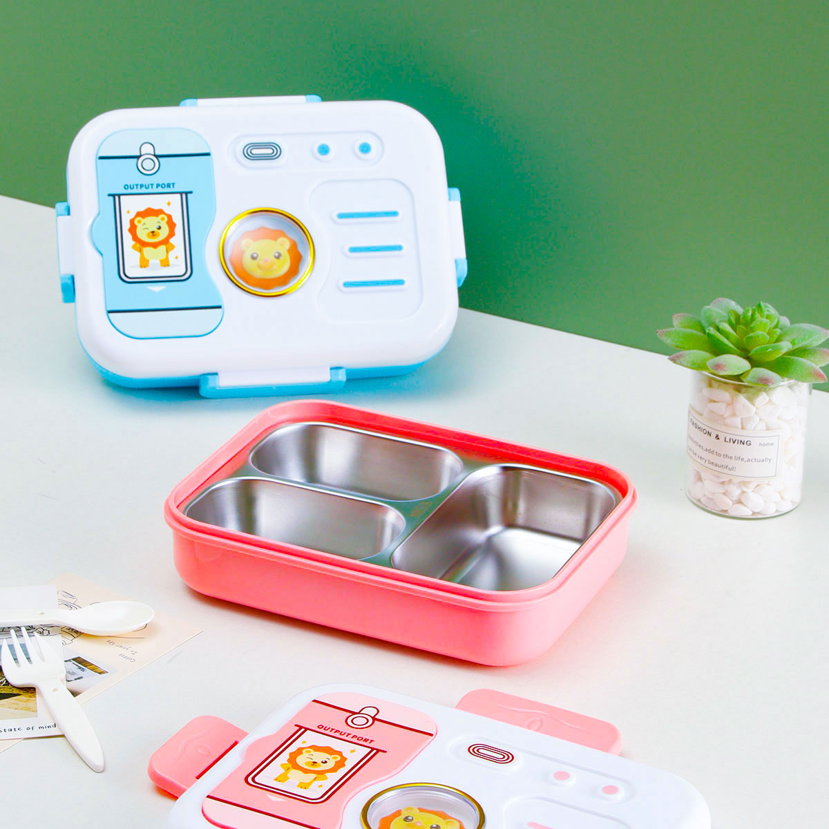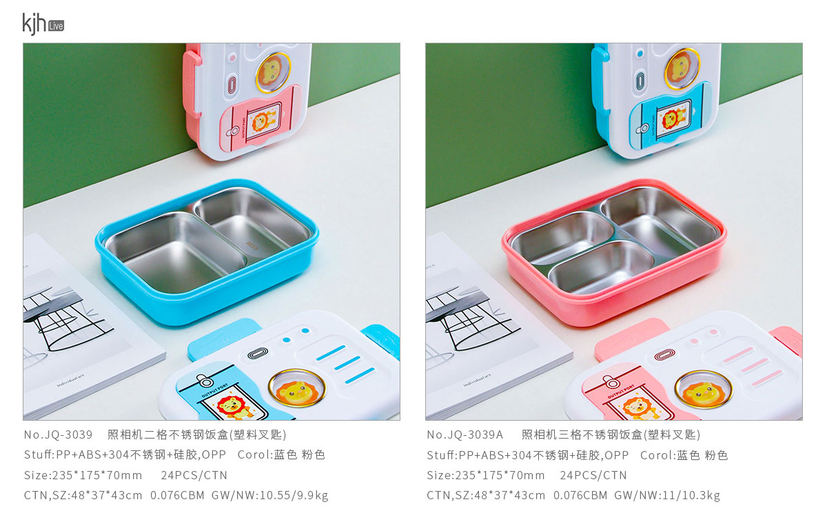 照相機(jī)二格/三格不銹鋼飯盒(塑料叉匙)