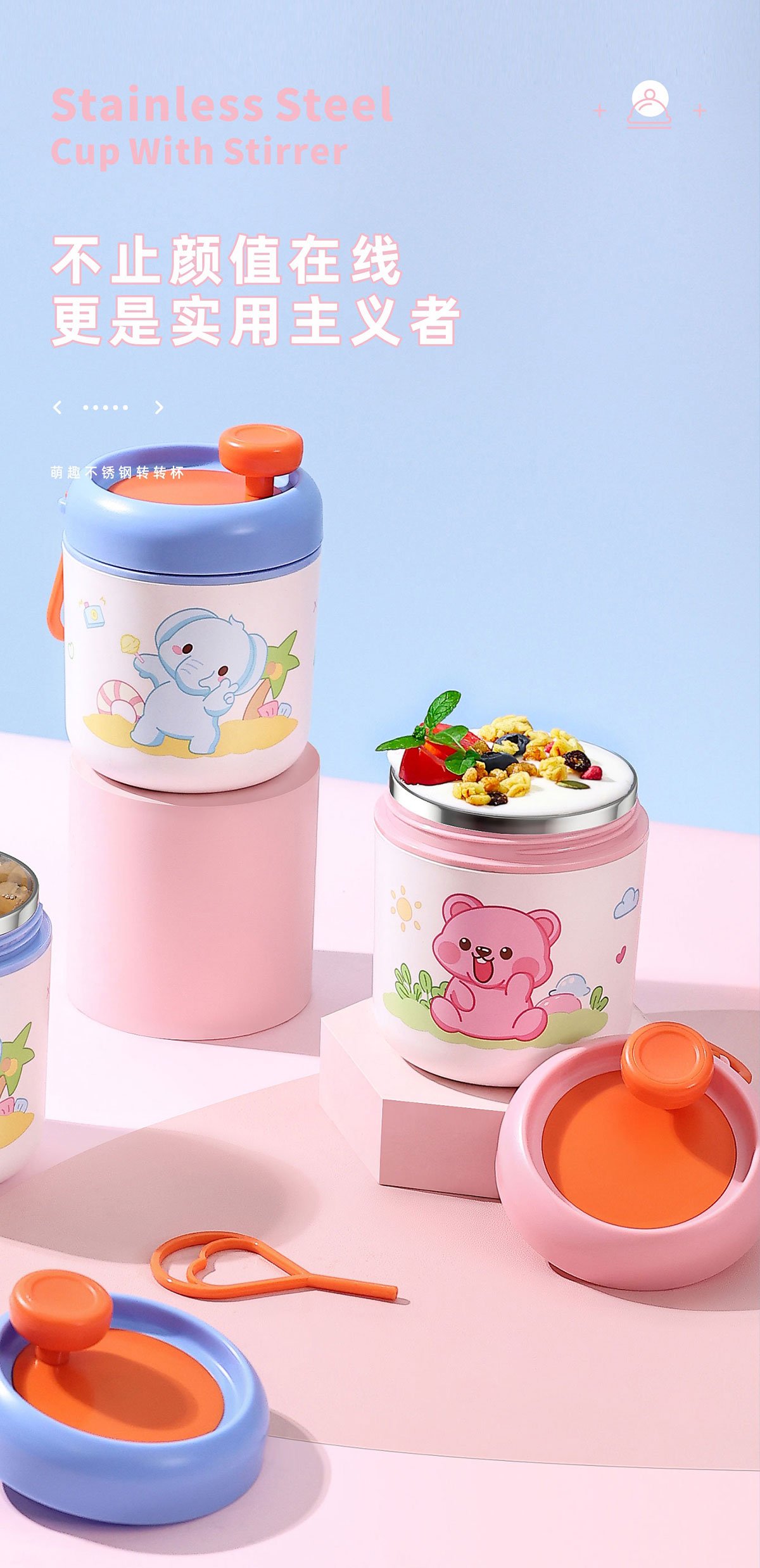 萌趣不銹鋼轉(zhuǎn)轉(zhuǎn)杯530ml