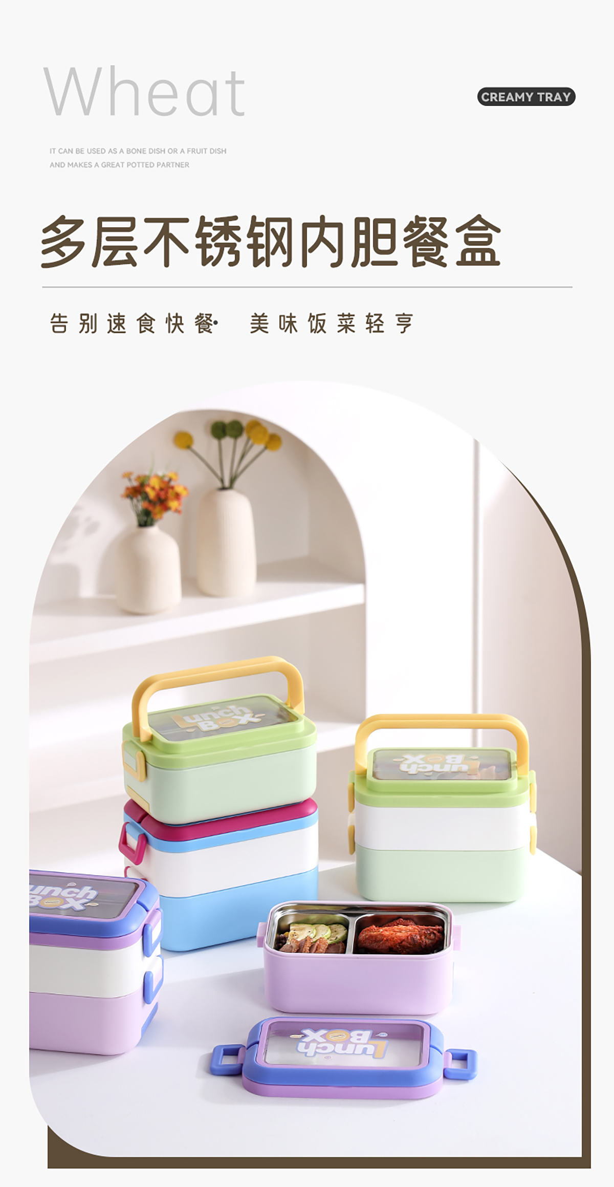 多層不銹鋼便當(dāng)盒一層/二層
