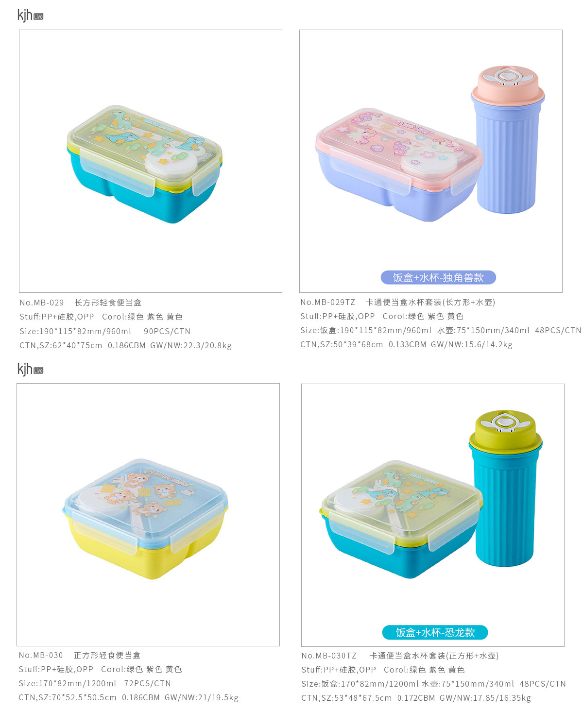MB-029TZ(長(zhǎng)方形套裝):飯盒:190*115*82mm/960ml 水壺:75*150mm/340ml