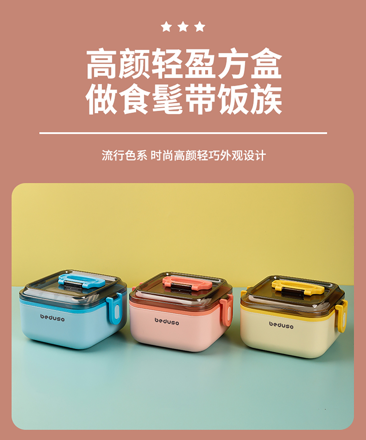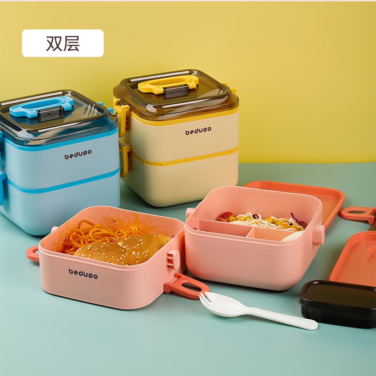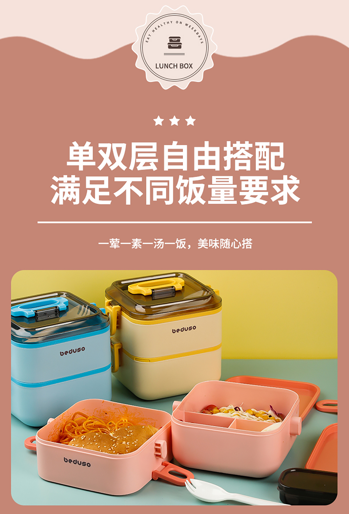 正方單層三格/雙層三格便當(dāng)盒