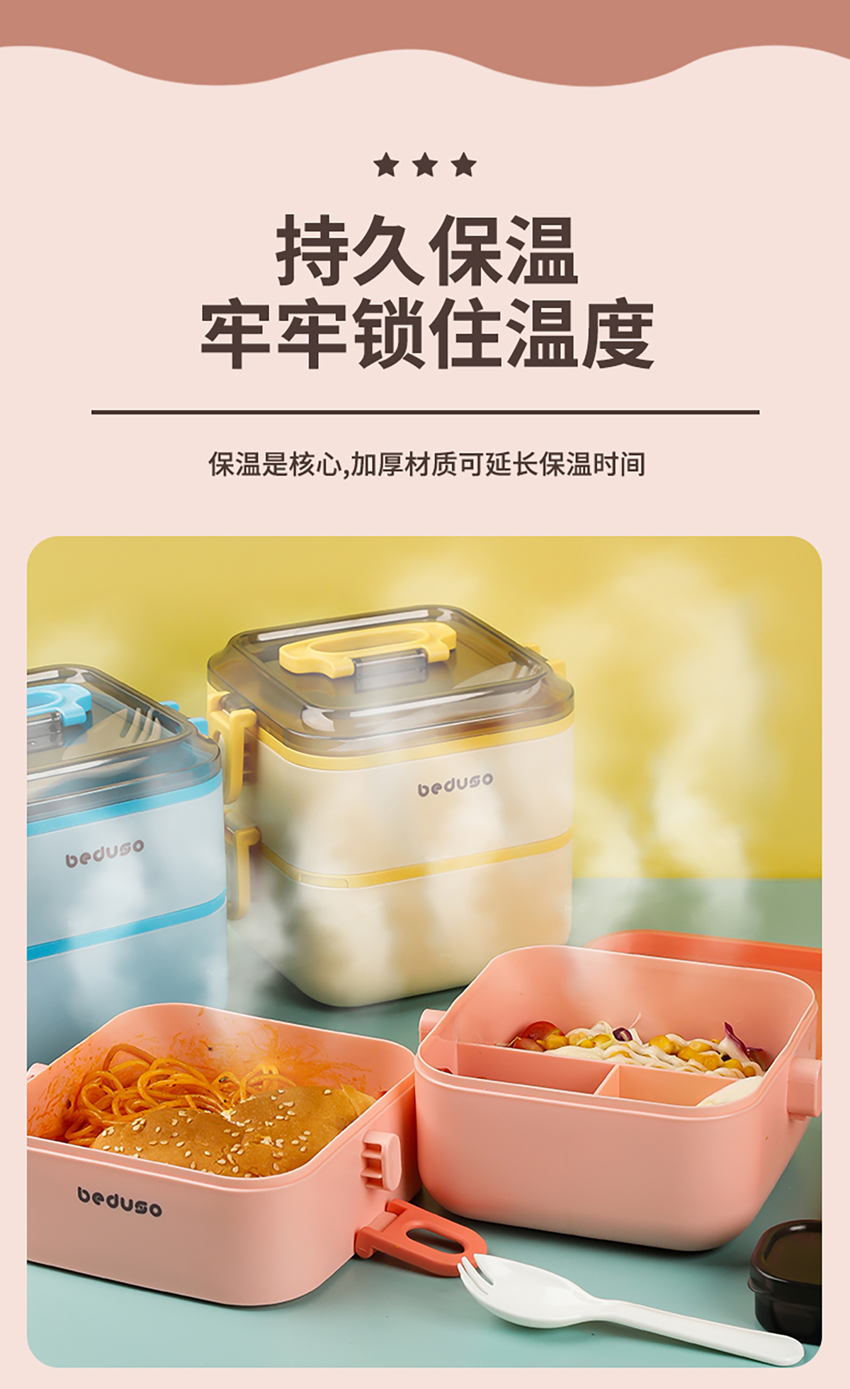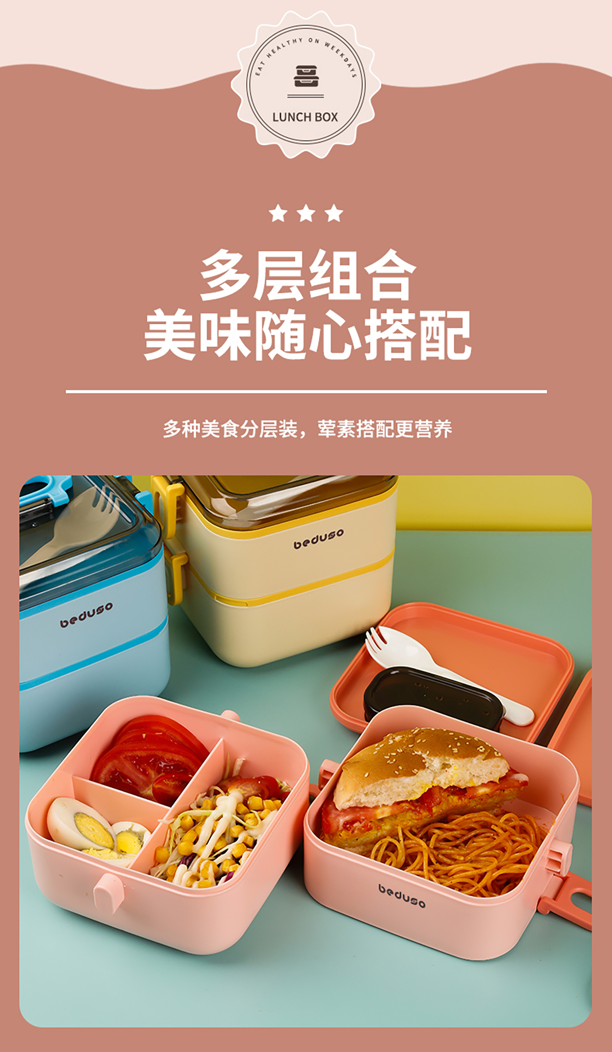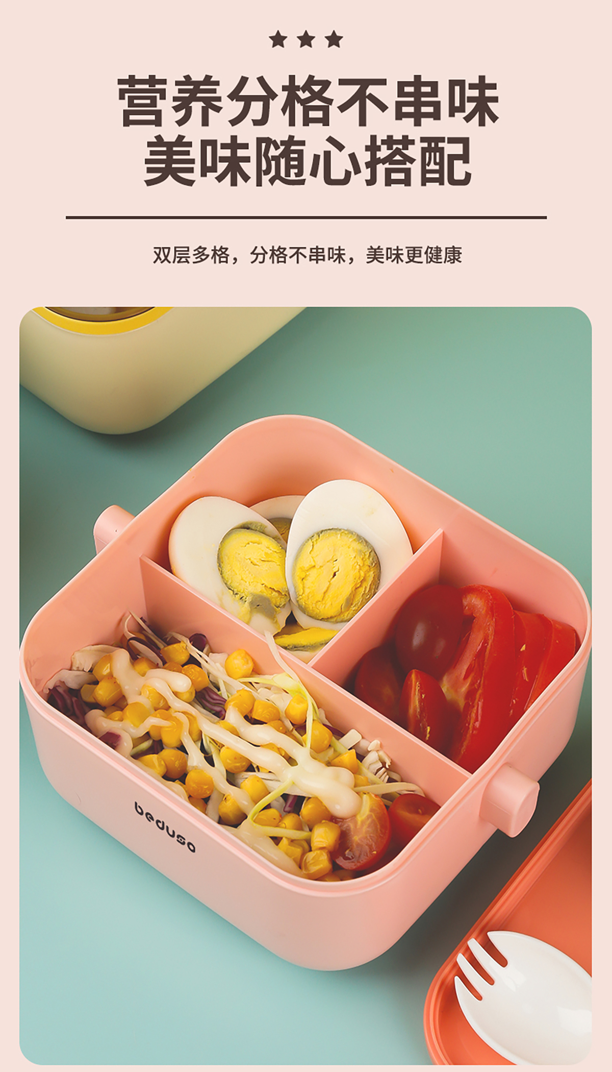 正方單層三格/雙層三格便當(dāng)盒