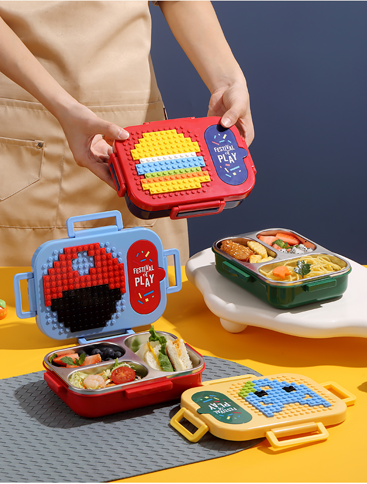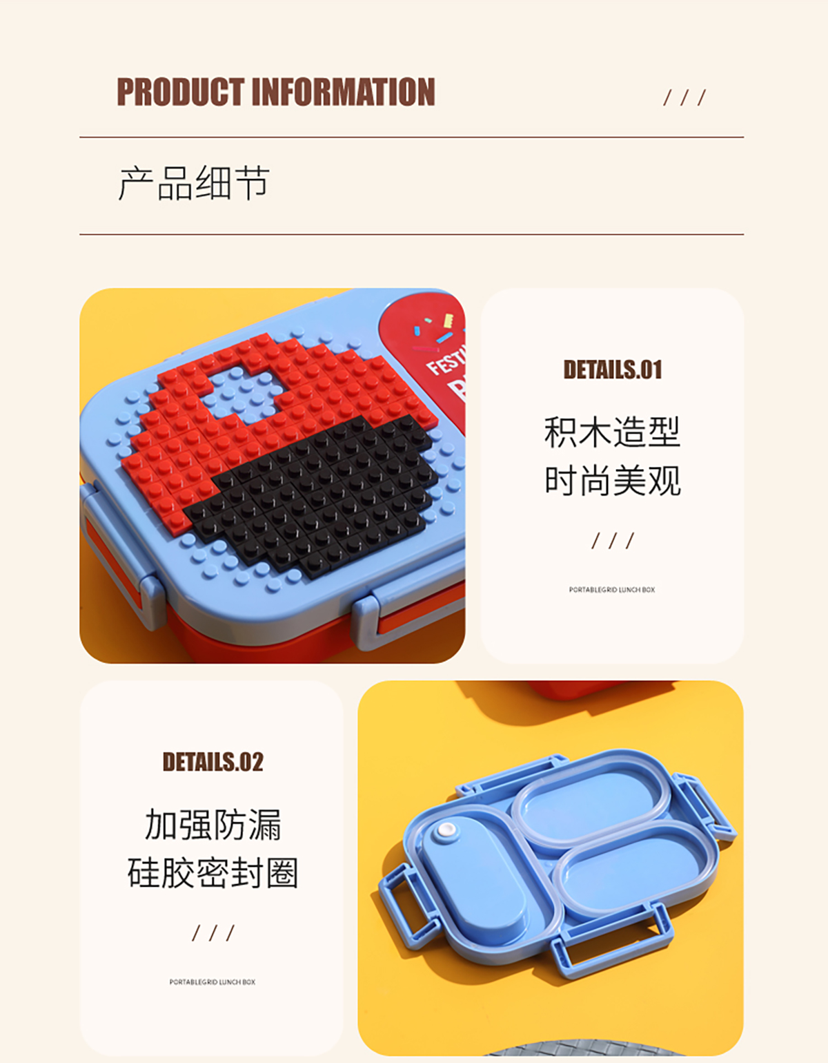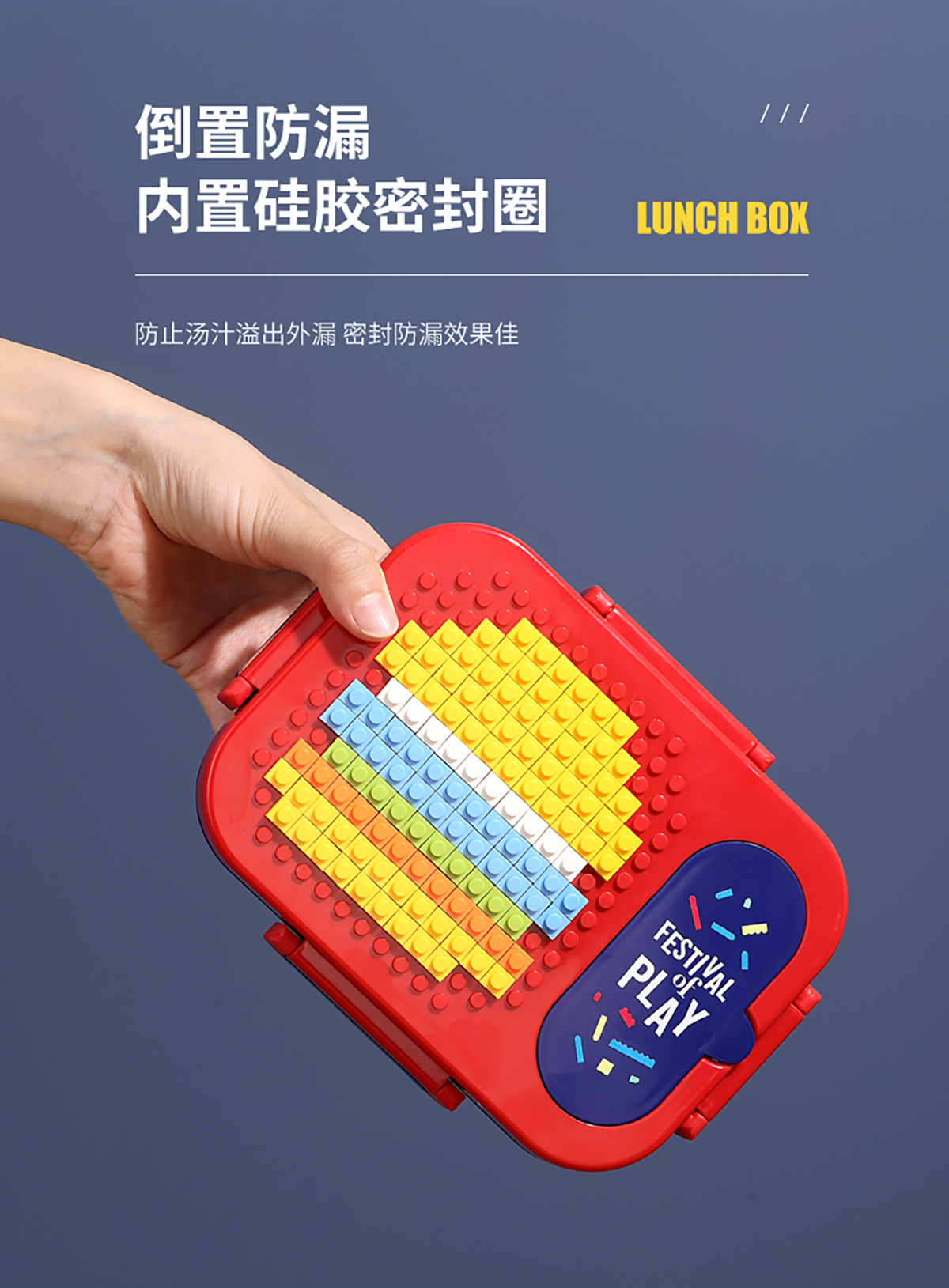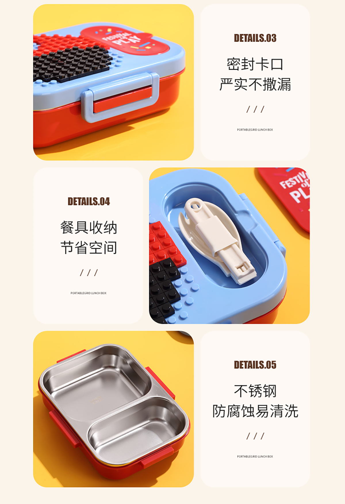 600ml 獨(dú)立密封積木不銹鋼餐盒2格/3格 (配PP折疊湯勺)