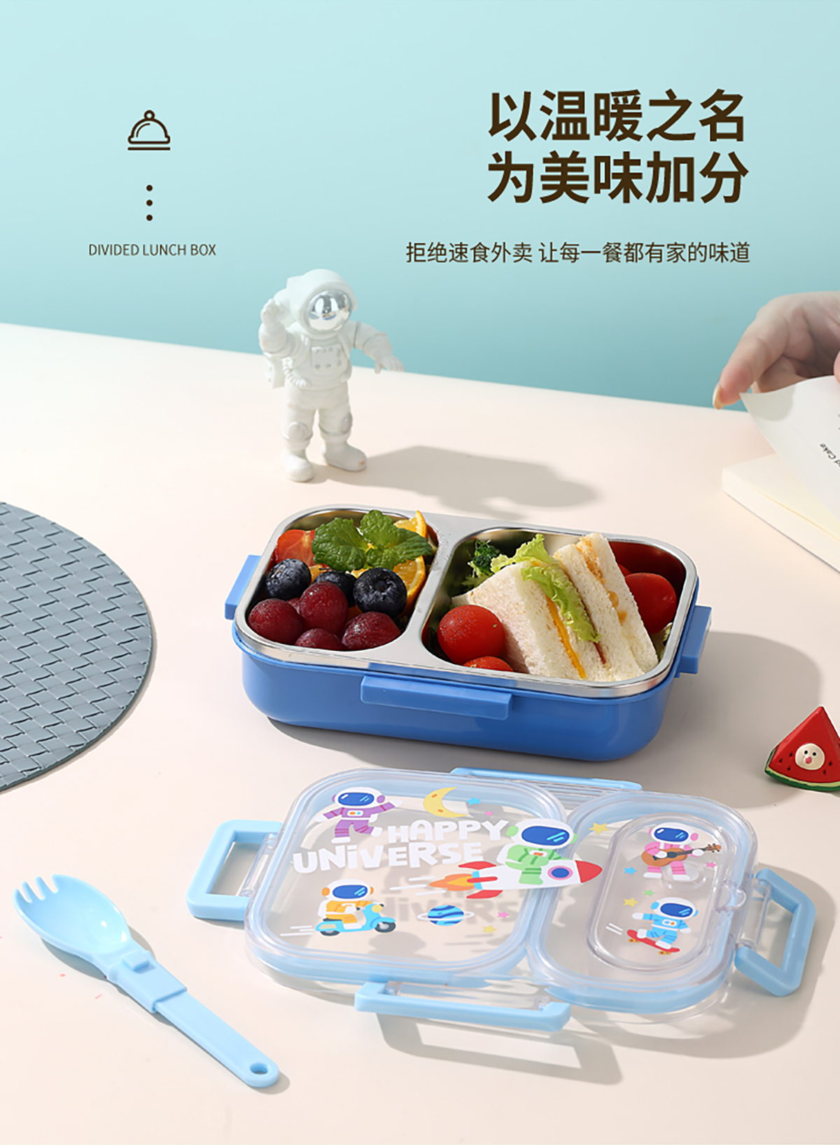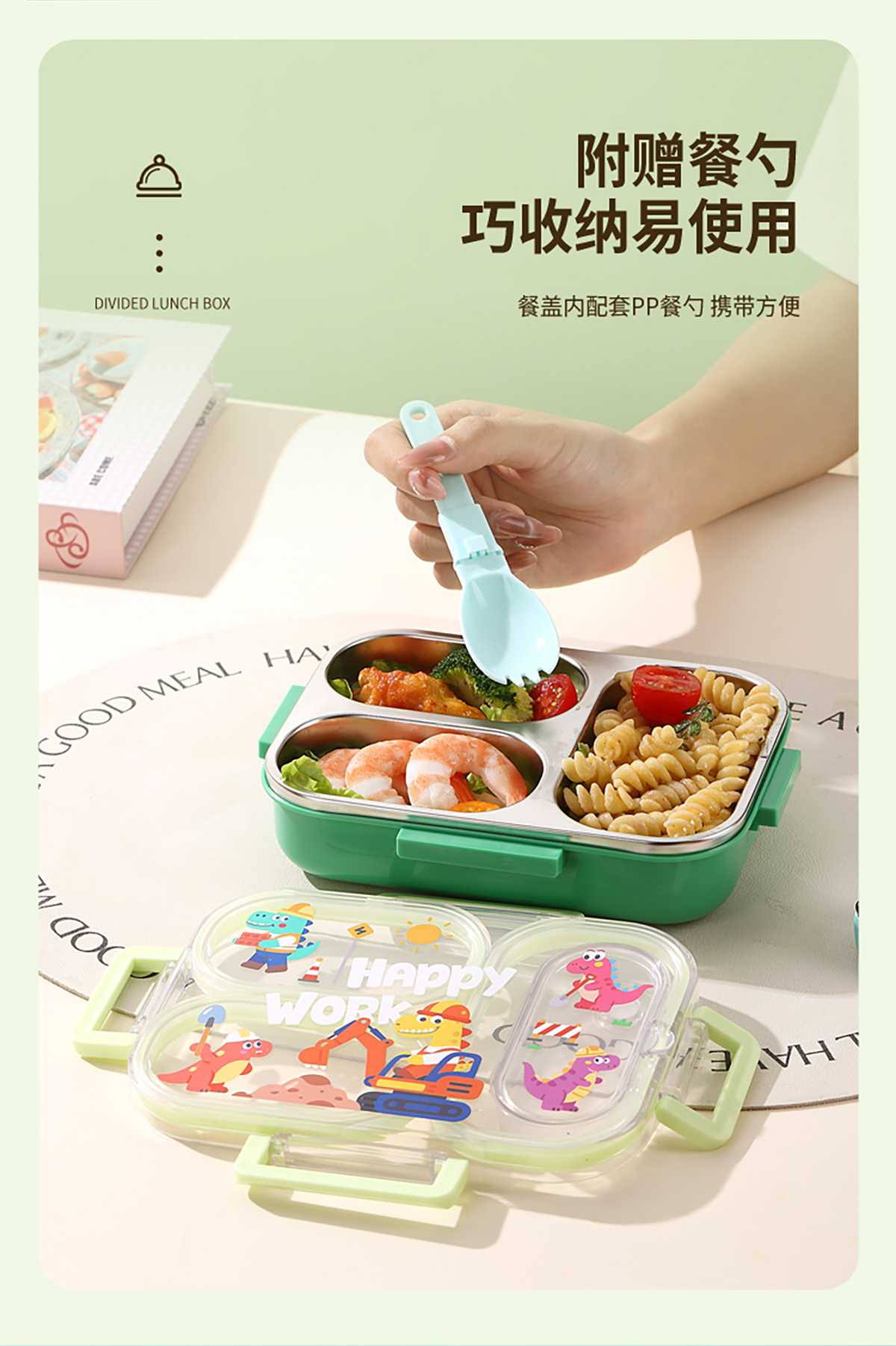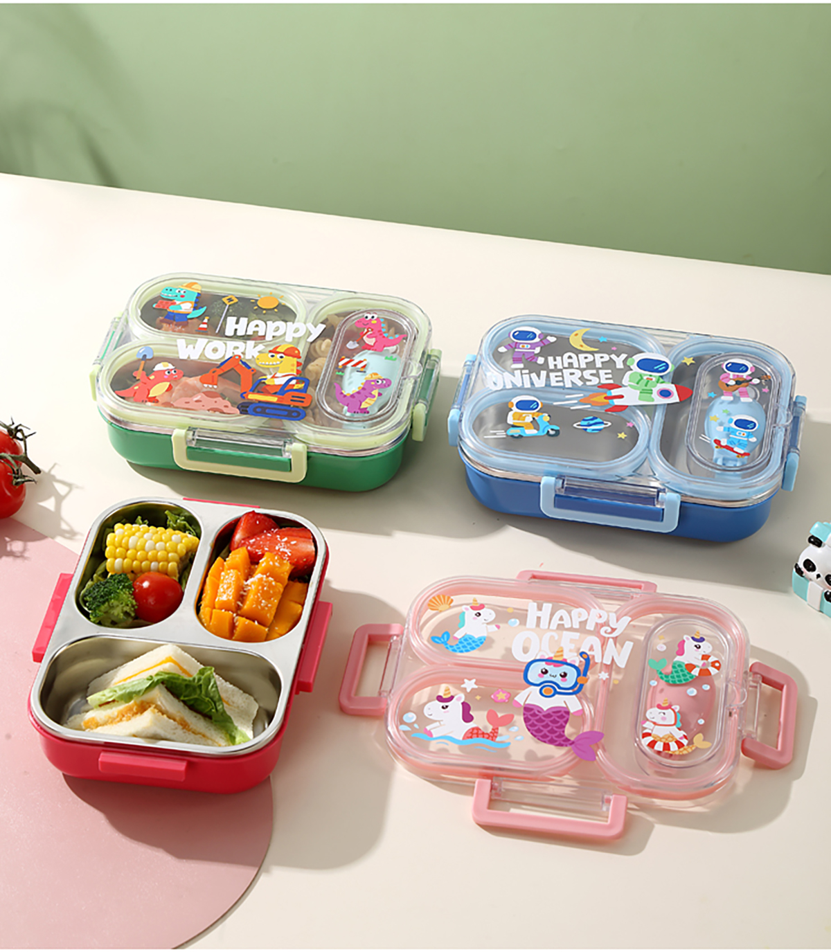 600ml UV獨立密封卡通不銹鋼餐盒2格/3格 (配PP折疊湯勺)