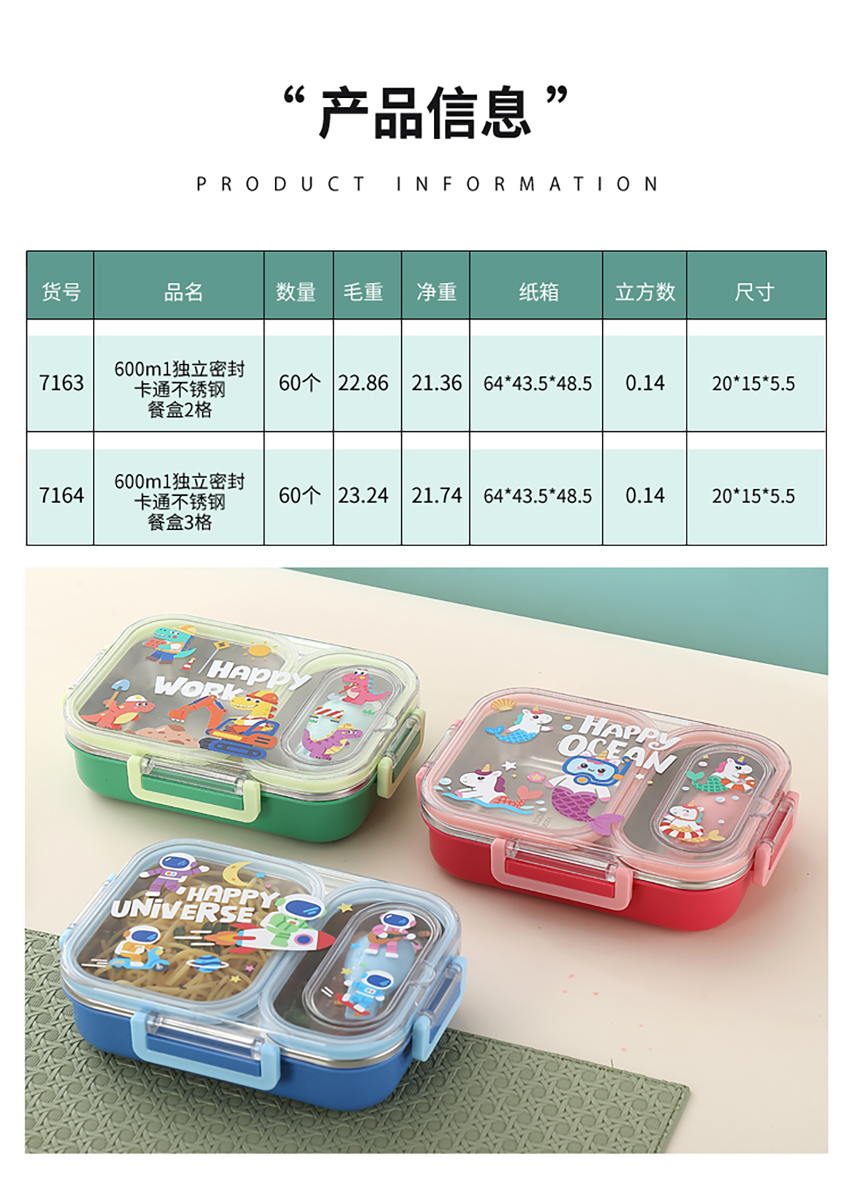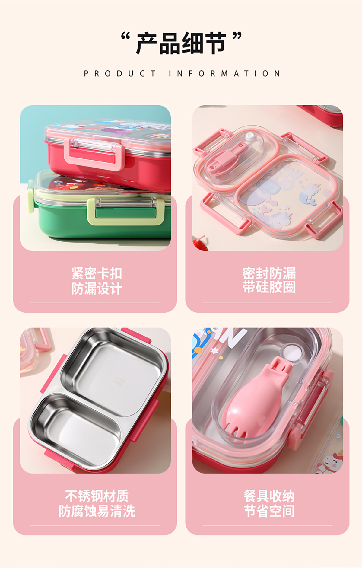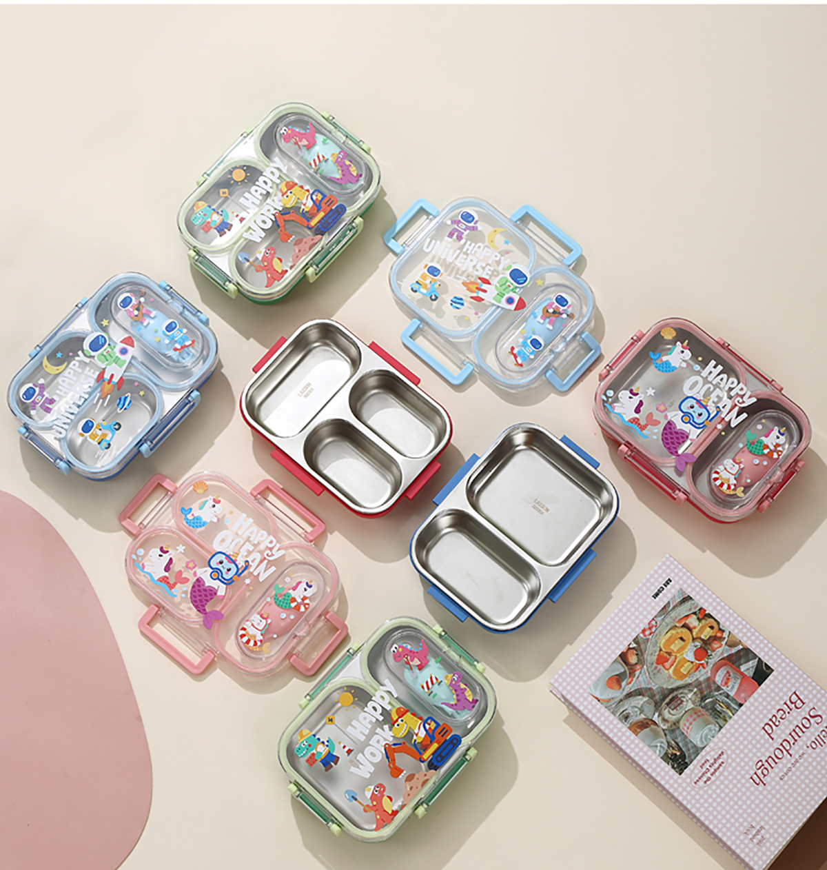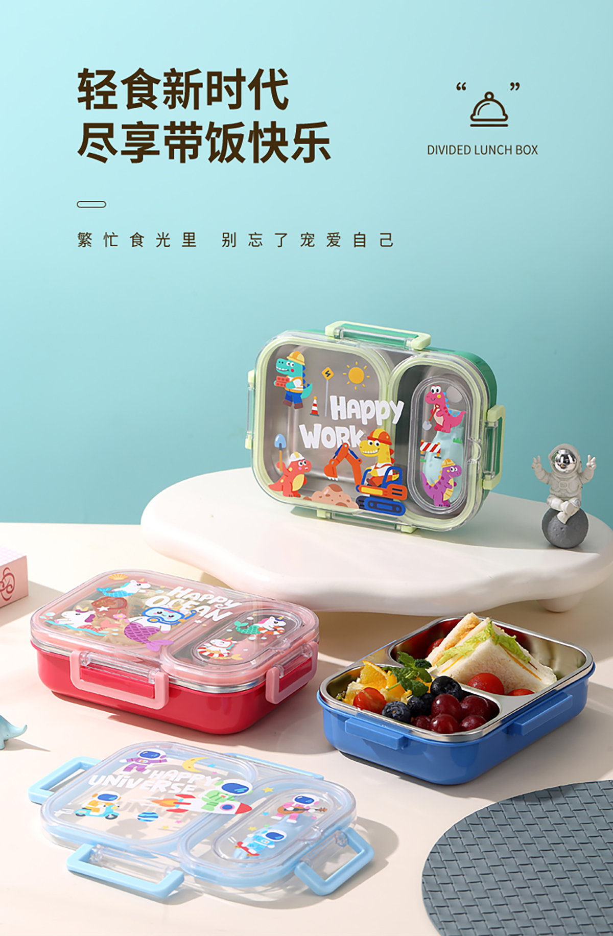 600ml UV獨立密封卡通不銹鋼餐盒2格/3格 (配PP折疊湯勺)