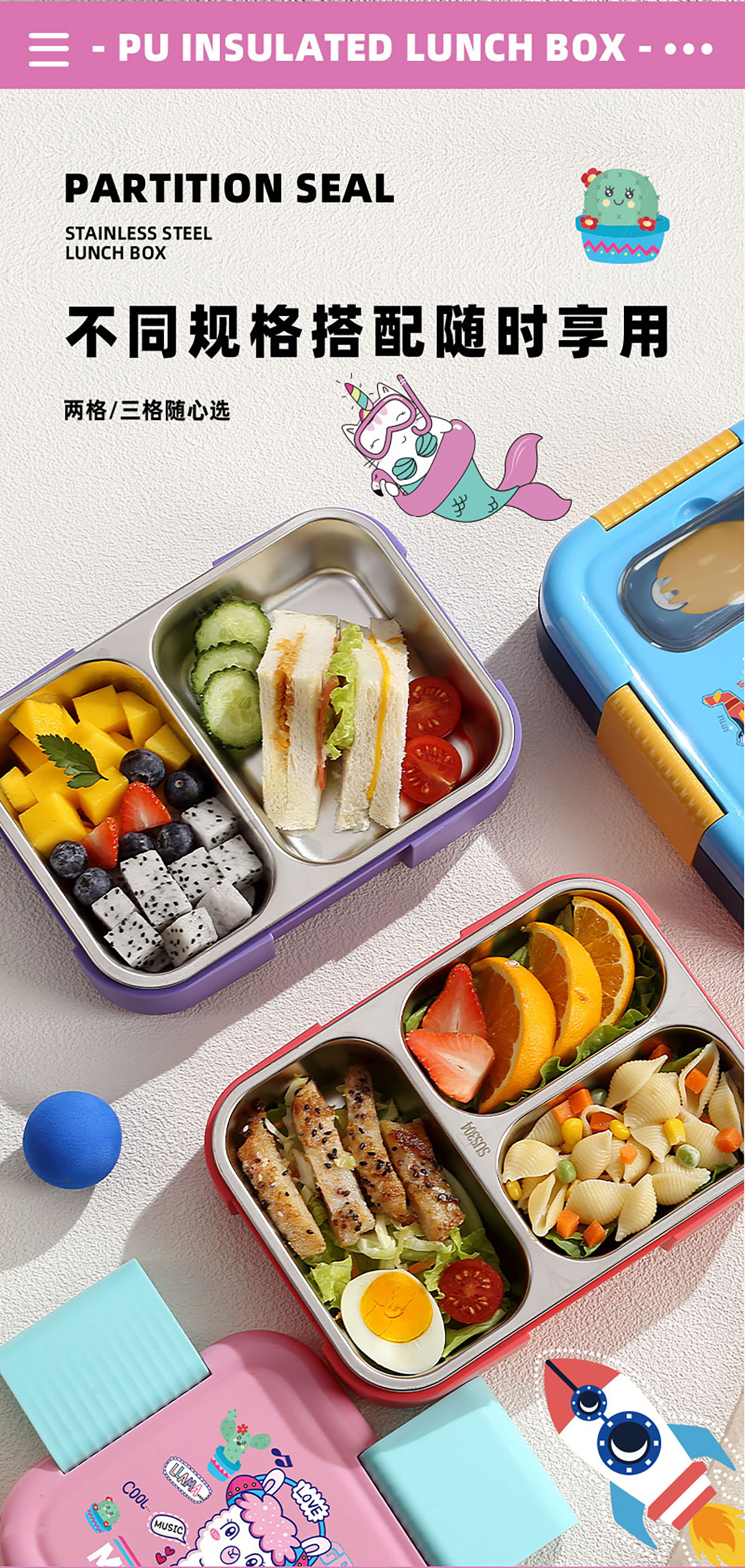 Size: AQX-2666A(3格):216*155*60mm/750ml AQX-2667A(2格):216*155*60mm/800ml