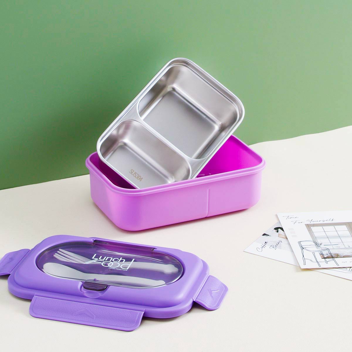 餐小俠套裝不銹鋼便當(dāng)盒(二格)