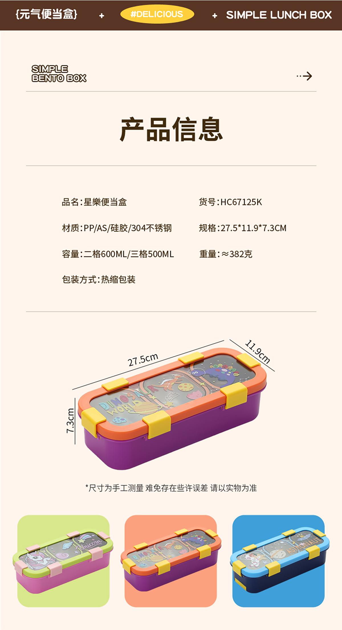 Size: 275*119*73mm(二格600ml/三格500ml)