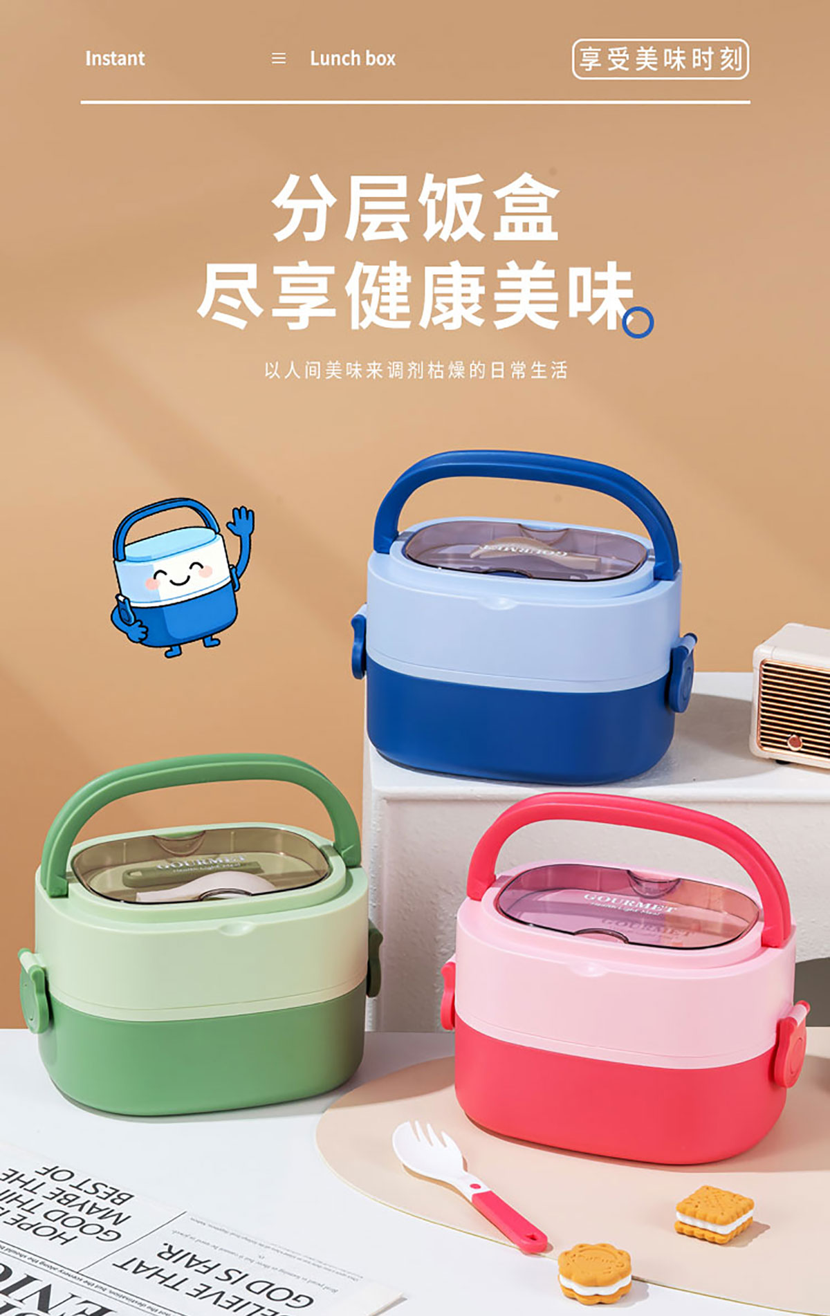 橢圓分格飯盒1500ml