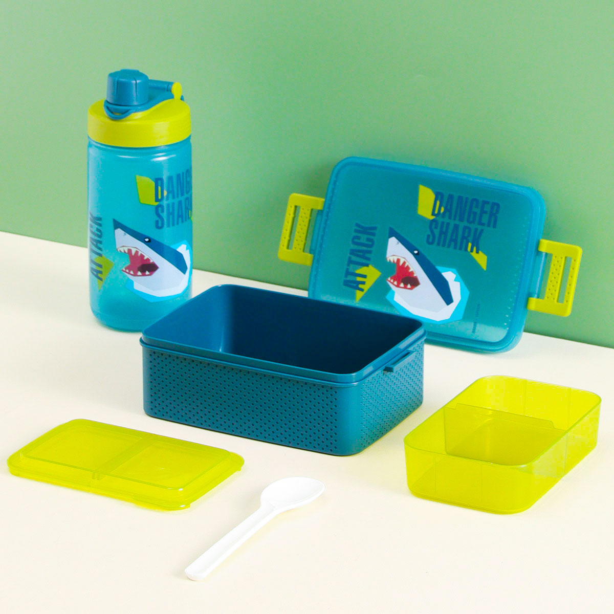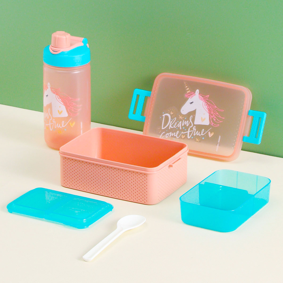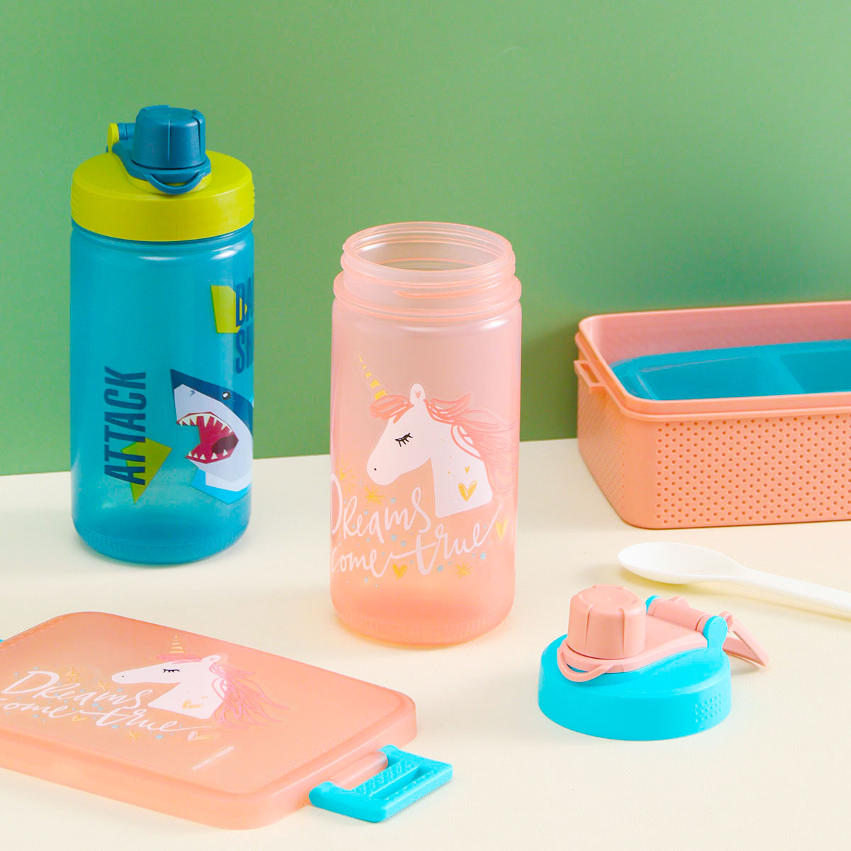 童彩3格飯盒+運(yùn)動水壺套裝(含內(nèi)盒800ml+500ml)